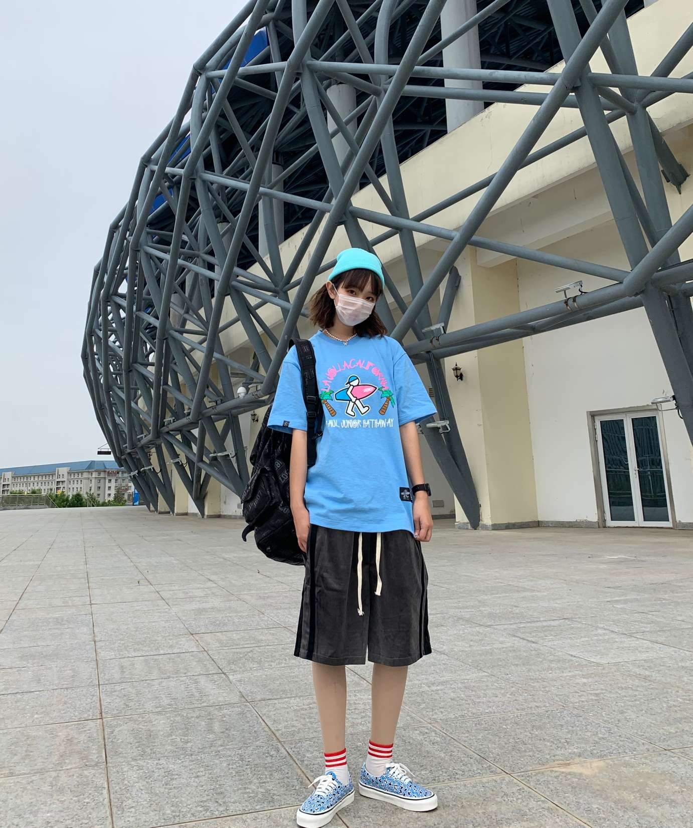 👔:samesame 👖:tisvee 👟:tb随便入的 本来想搭黑色的短裤 但感觉有一点单调 于是换成了水洗蓝色!马丁靴也可以在夏天穿呀 而且不一定要穿裙子 穿短裤短袖完全没问题