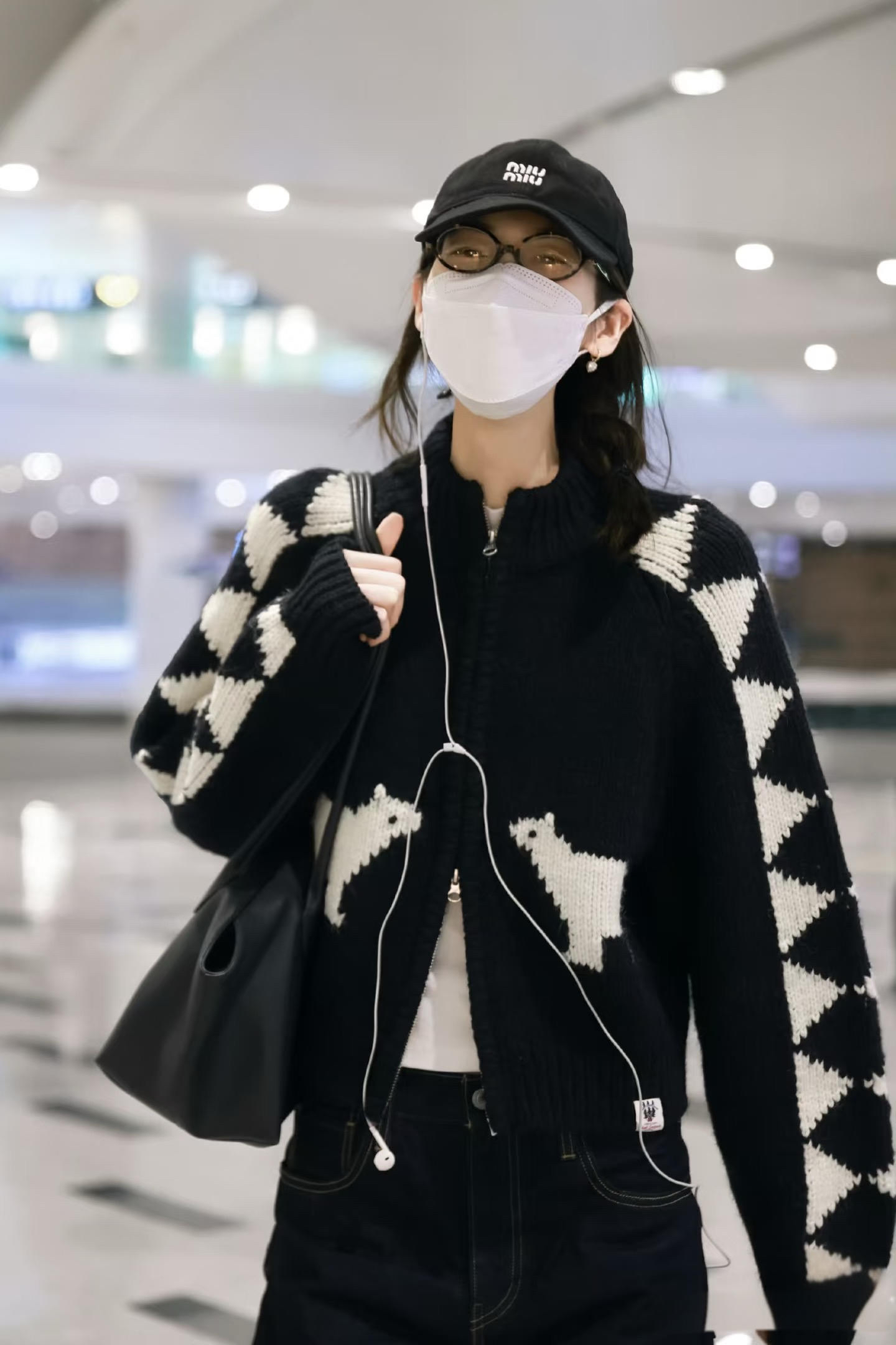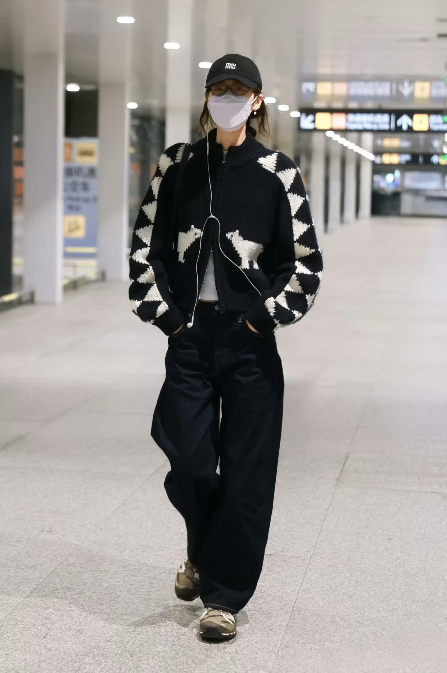 谁懂啊!大表姐这套也太会穿了!黑白北极熊开衫复古又可爱,萨洛蒙登山鞋+缪缪棒球帽,美式复古休闲感直接拉满!
