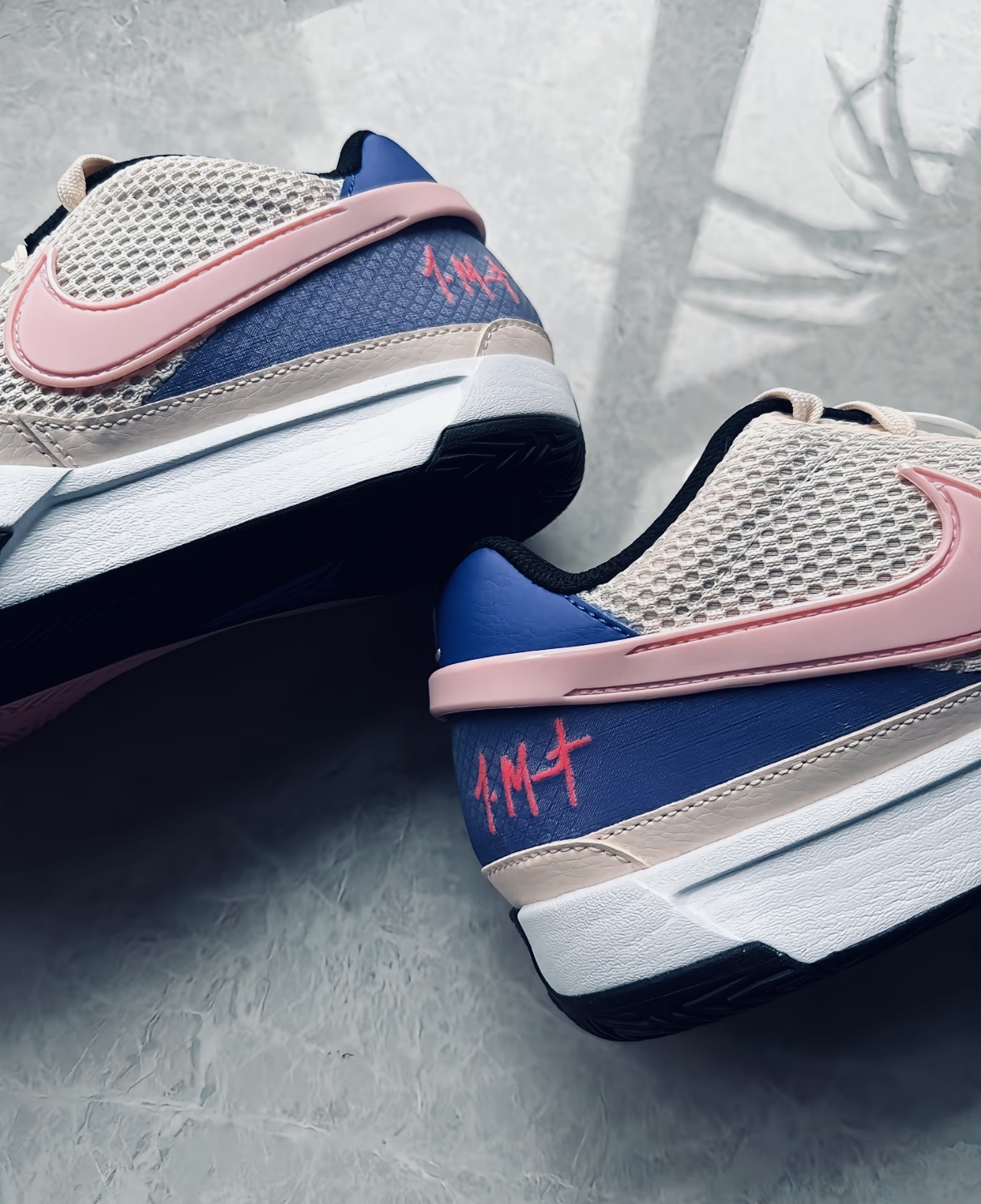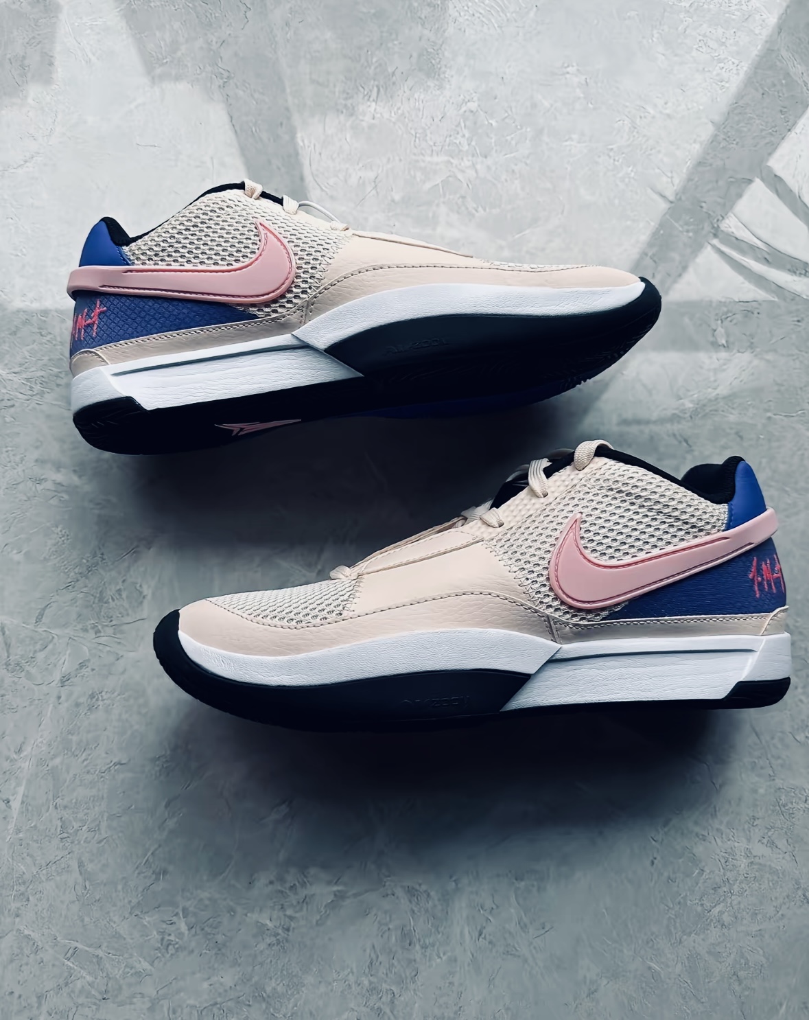 莫兰特1代这粉蓝配色直接美到失语✨ 米白网面+粉勾+蓝尾,甜酷感直接拉满 全掌Zoom气垫,脚感澎湃到起飞 网面透气不闷脚,变向突破稳如老狗 甜妹/男生都能冲,实战出街双在线 球场直接上分,穿搭回头率爆表💥