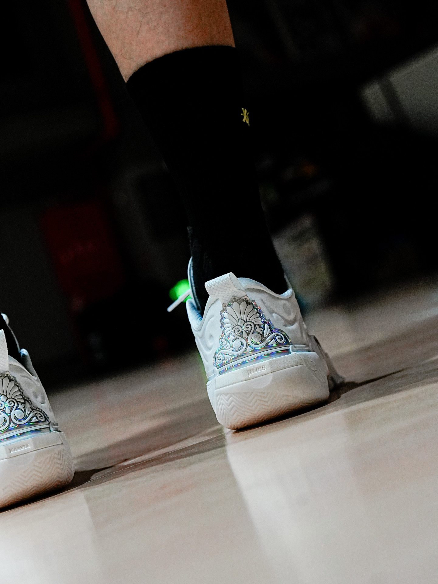 韦德之道12又推出新配色了,这次是经典的305配色,说实话上脚真的挺好看的,尤其是银色后跟细节,特别帅,其实我也很喜欢白色球鞋,就是耐不住鞋子特别容易发黄,还是比较适合北方干燥一点的天气。 WOW 12也是我特别喜欢的一双实战鞋,中底的脚感很澎湃,从后卫到锋线都可以穿,算是一双综合能力很强的实战鞋。