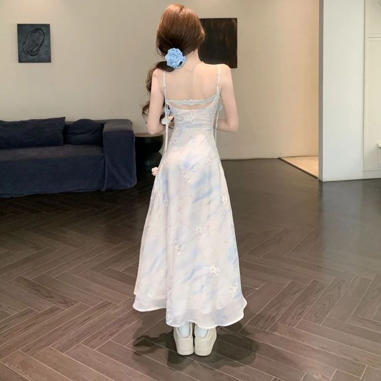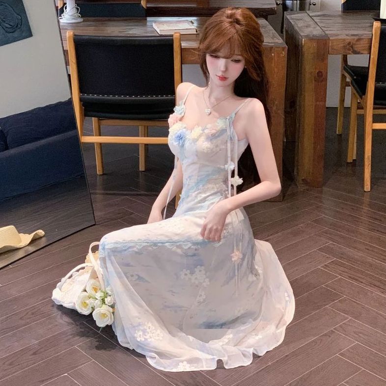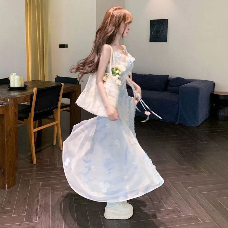 真的太可爱啦🥰 这条蓝白晕染的吊带裙完全是甜妹本命! 蓝白渐变晕染+立体花朵装饰,像把春日花海穿在了身上,温柔又灵动,纯欲感直接拉满。吊带+收腰剪裁完美优化身材比例,大裙摆飘逸又遮肉, 法式温柔、甜妹纯欲、度假风都能完美适配,2026夏季新款的设计,小众不撞款,轻松成为人群焦点。 💡 搭配小Tips