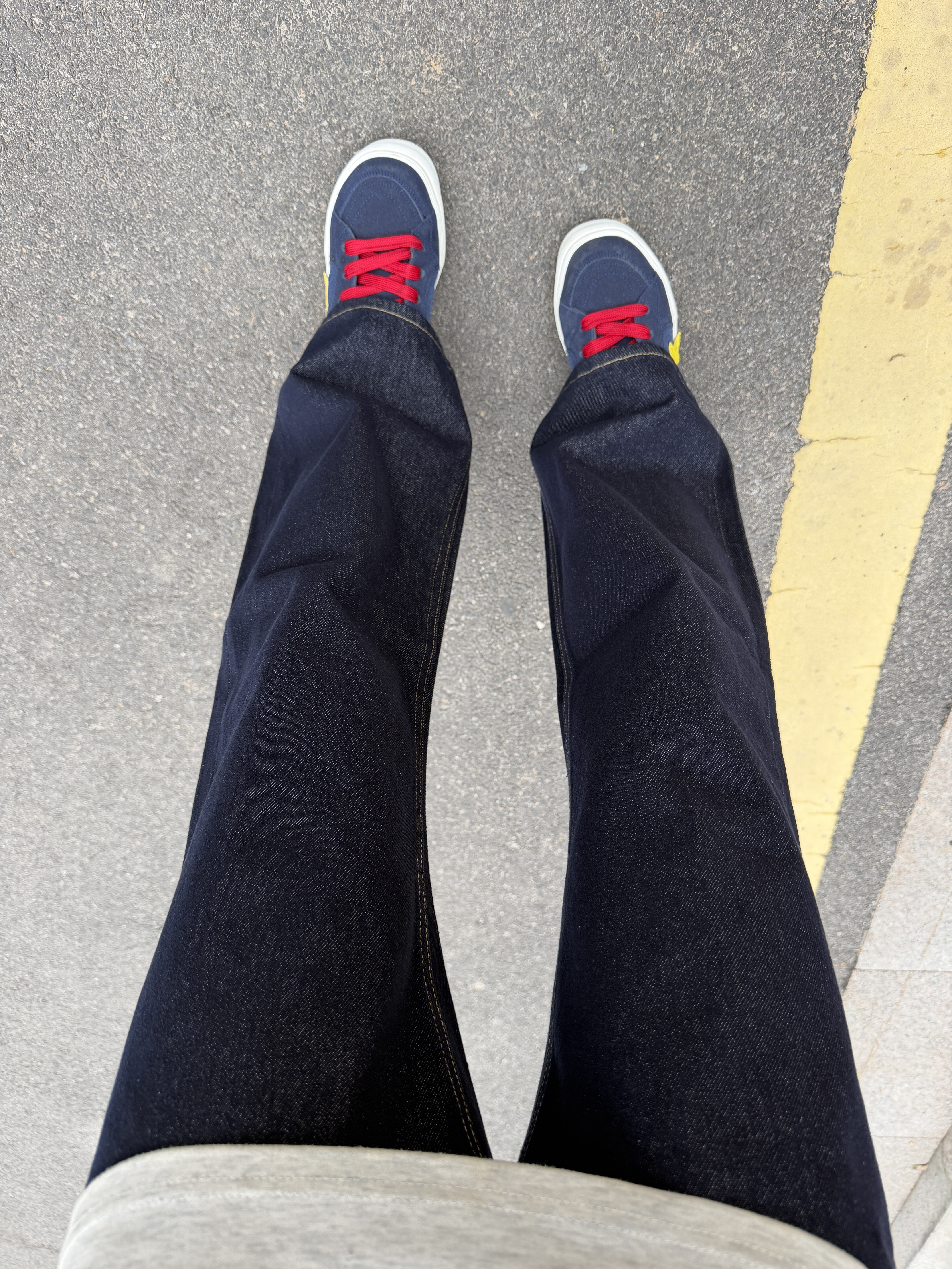 啊啊啊也是找到了我的梦中情裤!!炒鸡帅的一条牛仔,黑色渐变颜色高街感十足~搭配双红色板鞋耐看又时髦!