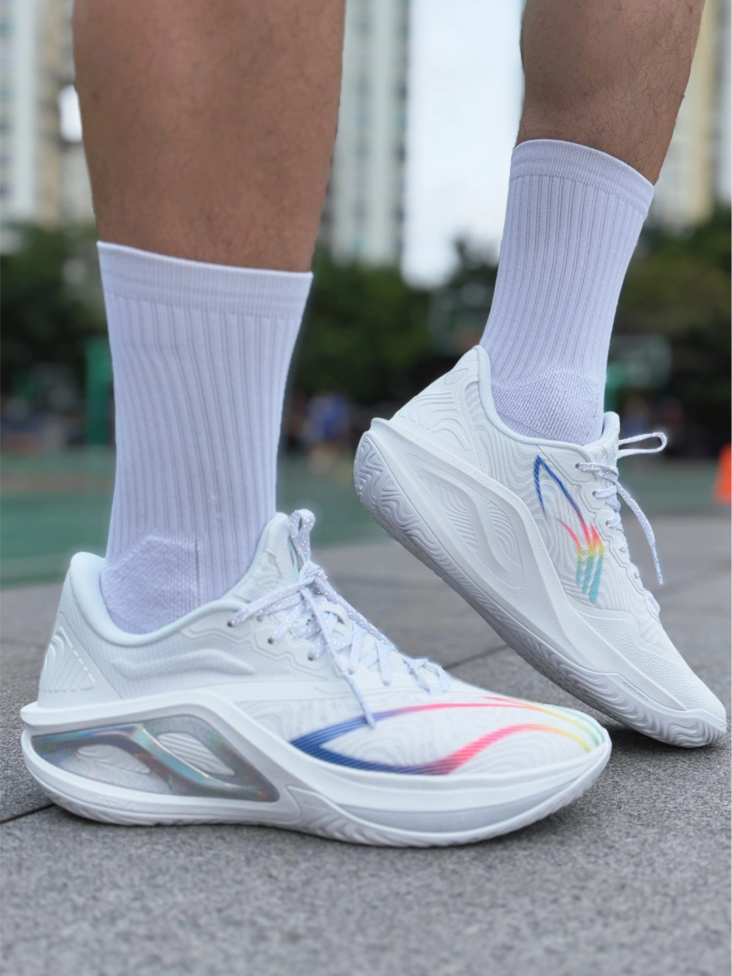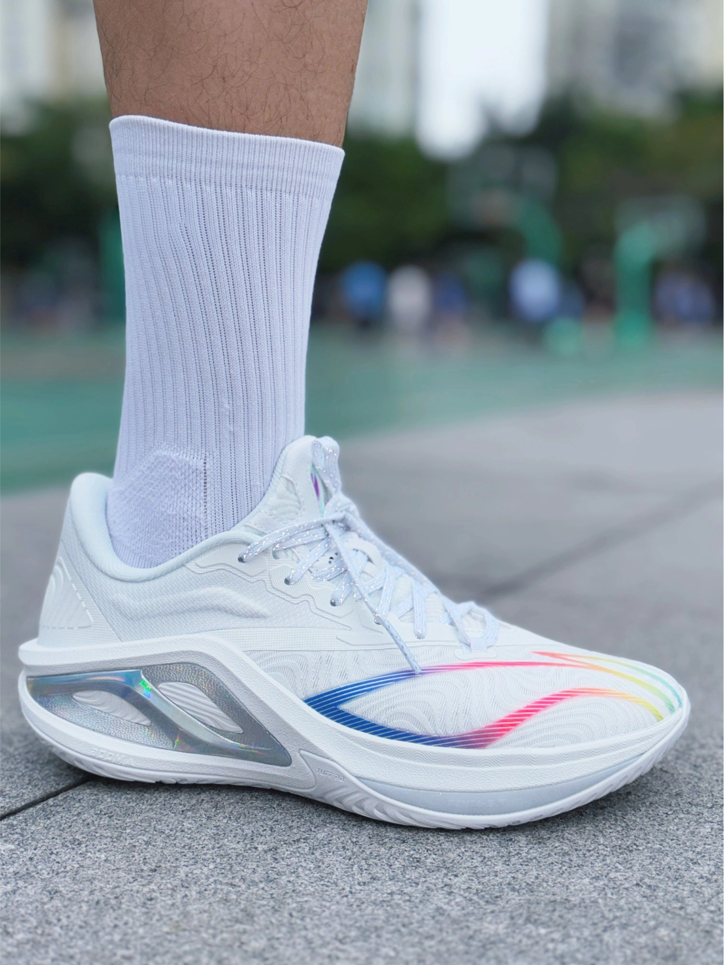 球场自带推进buff的快乐谁懂!被李宁飓风2白彩虹狠狠拿捏~[强_blue][强_blue][强_blue] 超高起翘跑动型鞋楦+S型PEBAX加持,每一步都像被推着走,全场奔袭持久续航,快攻折返完全不拖沓。PENTA-S剪切应力支撑系统稳到离谱,变向急停稳稳兜住脚。[敬礼_blue][敬礼_blue][敬礼_blue] 白彩虹🌈配色低调中透露着高级,白色超百搭,三百出头价位全配置拉满,学生党闭眼...
