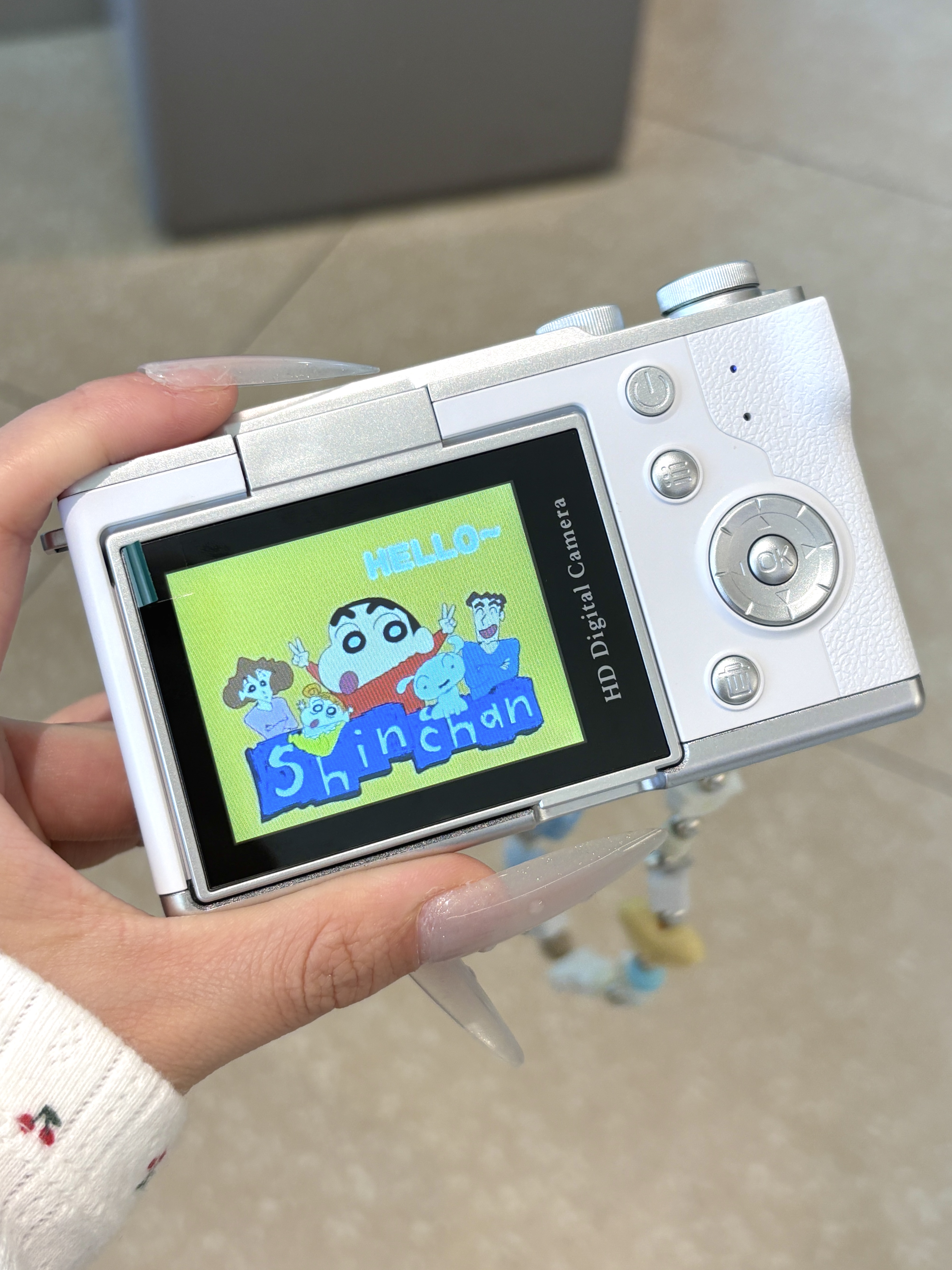 被蜡笔小新介个CCD拿捏啦🤏🏻 外观超级可爱呀 配件也好齐全 包括转换头、数据线等 它还是可以翻屏的 性价比挺高的 而且还有多种滤镜可以选择 什么风格都可以轻松拿捏住了 像素蛮高清的搭配16倍变焦 感觉随手拍拍都吼吼看 还搭配了挂链~不要泰nice哟🥰
