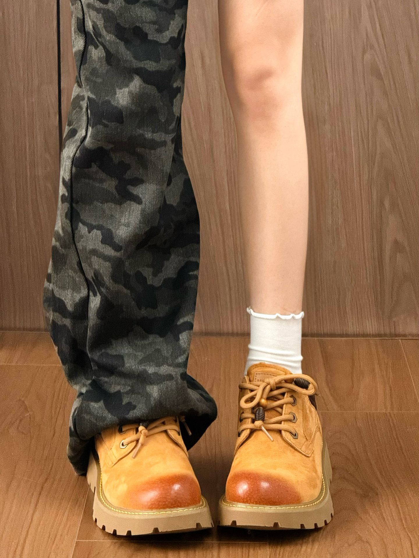 怎么说怎么说 我有点难选 感觉都还可以啊 马丁靴的话大家都是这么搭配的 但赛车鞋就像它本身颜色一样 主打一个热烈不合群 帅的独具一格 但我只能留一双