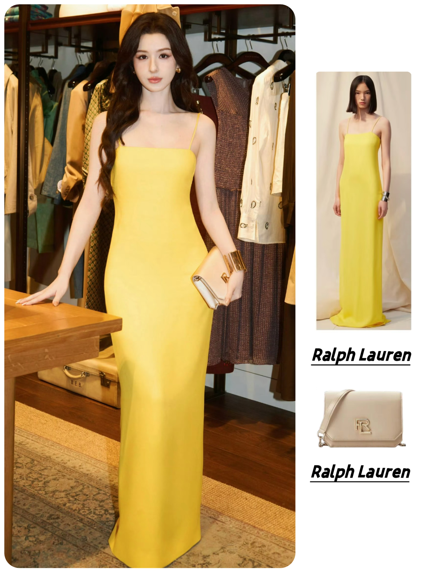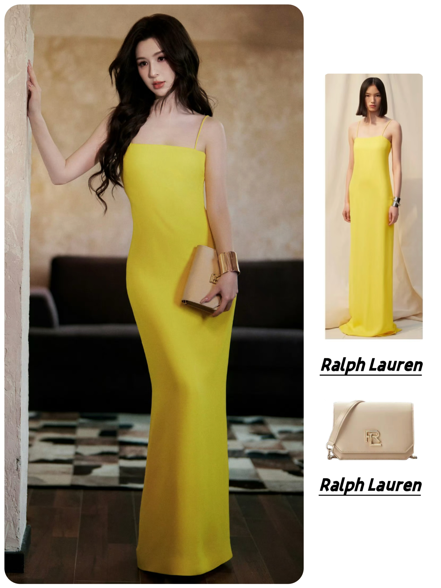 👗Ralph Lauren Women‘s 26 早春系列黄色吊带长裙 👜Ralph Lauren Collection Ralph Lauren 系列 RL 888 缎面 小牛皮 斜挎包