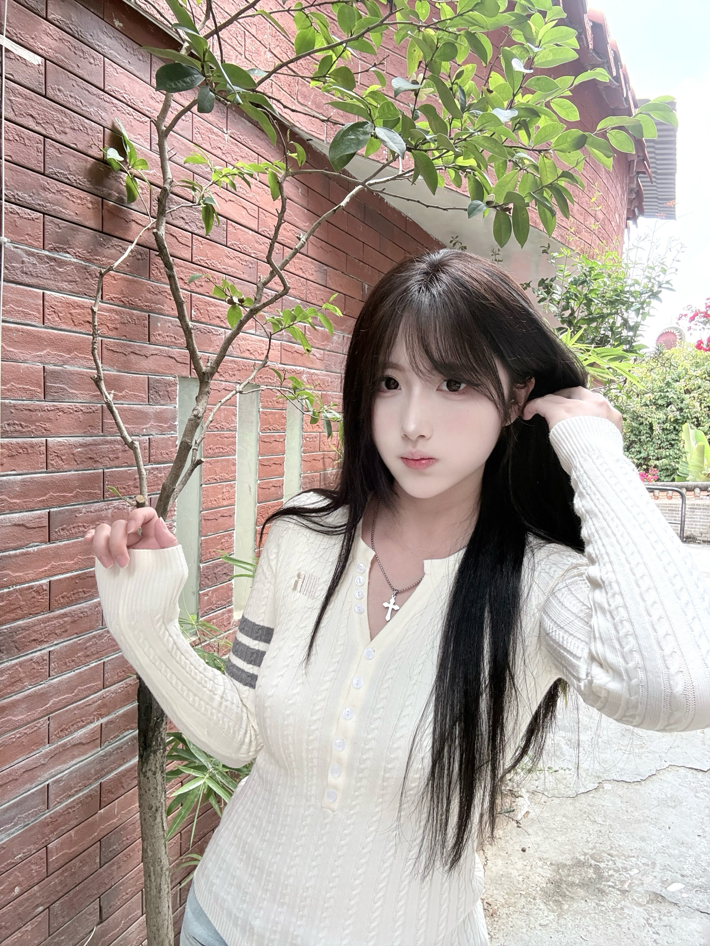 一到春天就很爱低饱和度穿搭 穿件杏色系修身针织衫[强_blue] 真的好有韩系氛围感哈哈哈 再配条牛仔裤 就很适合上班通勤诶