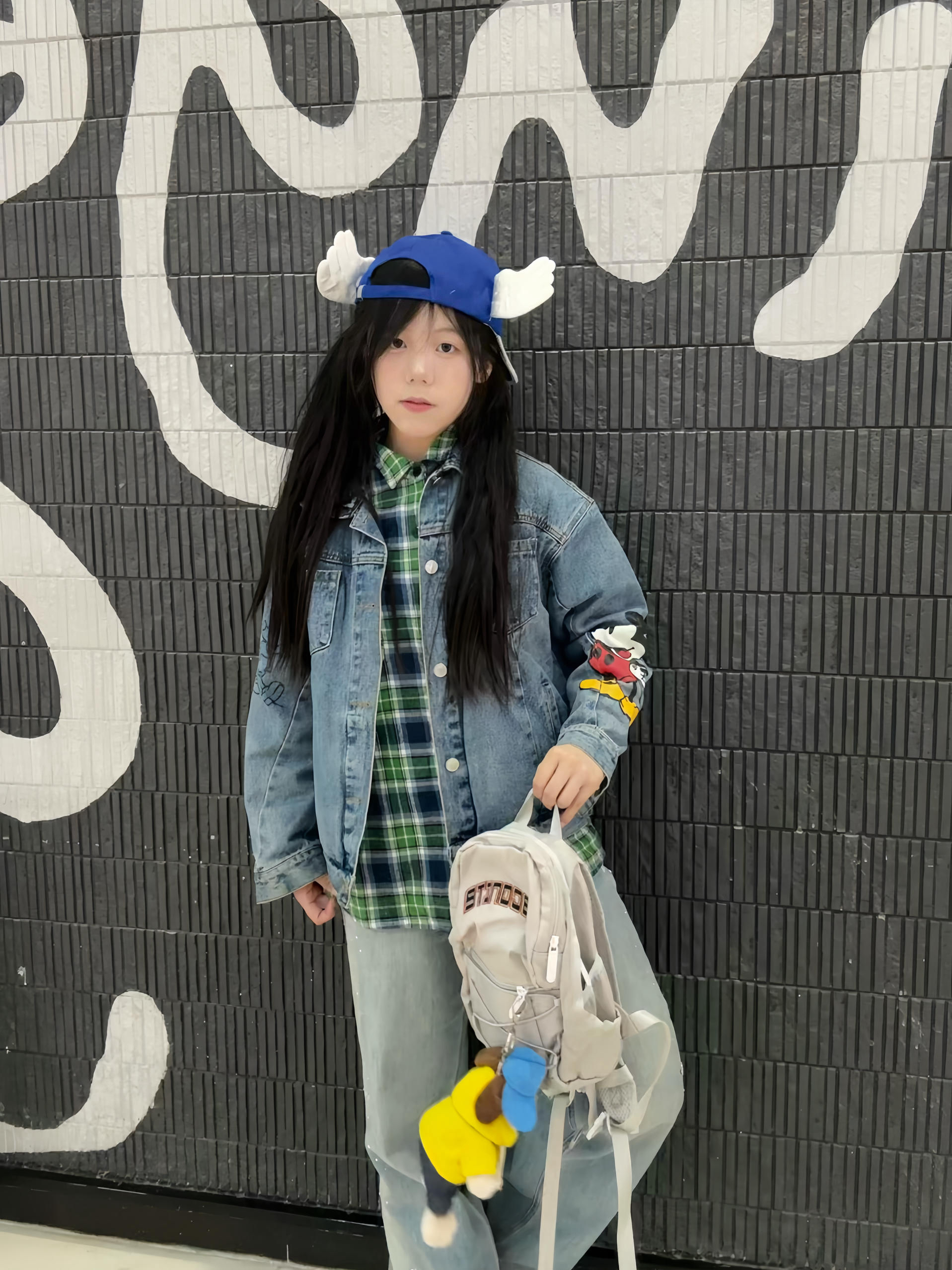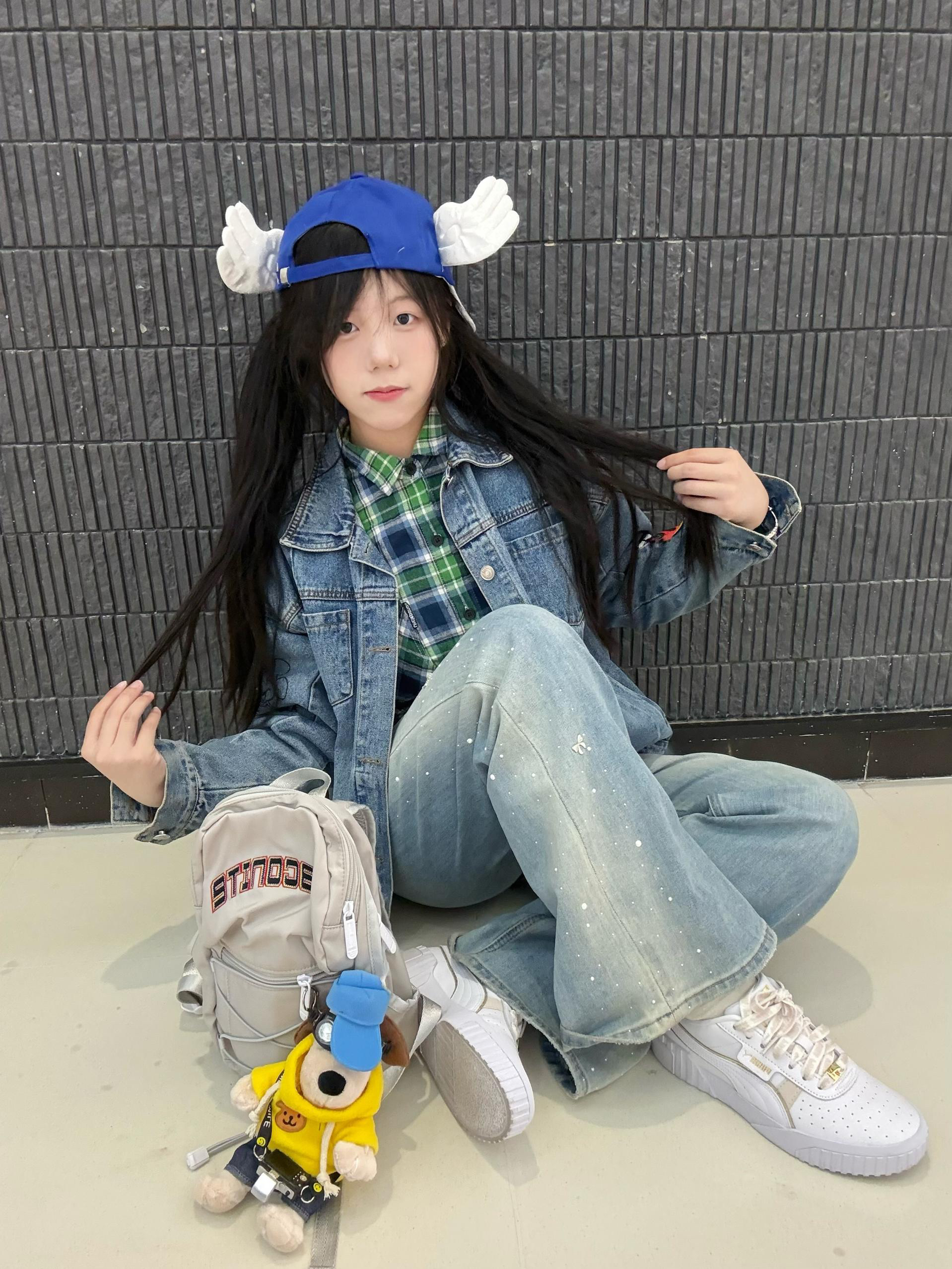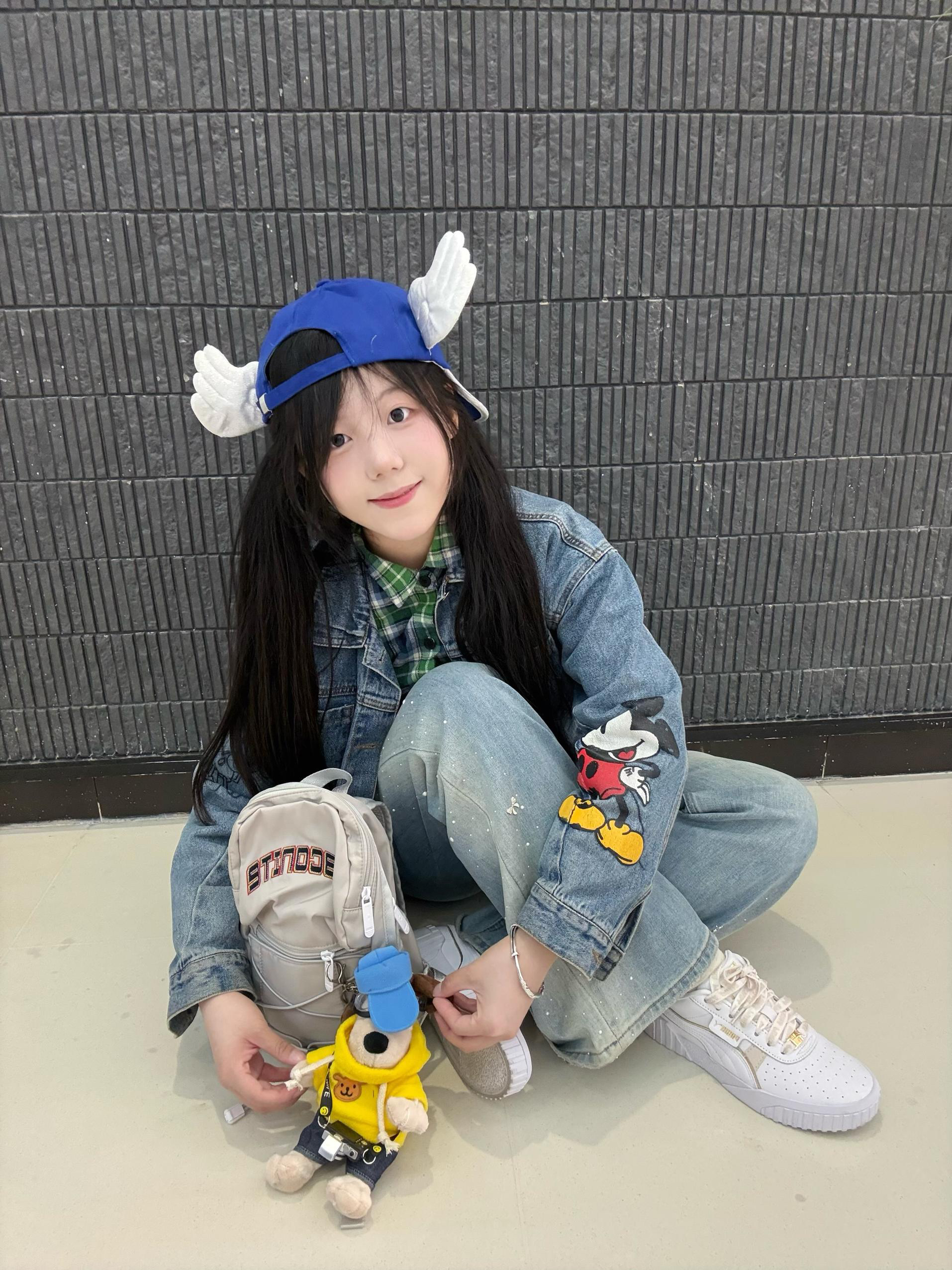 今日ootd 👔森马牛仔外套➕绿色格子衬衫承包今日无边界穿搭 书包是DRACONlTE 小小一个容量很大 鞋子是puma 小白鞋 休闲百搭😍