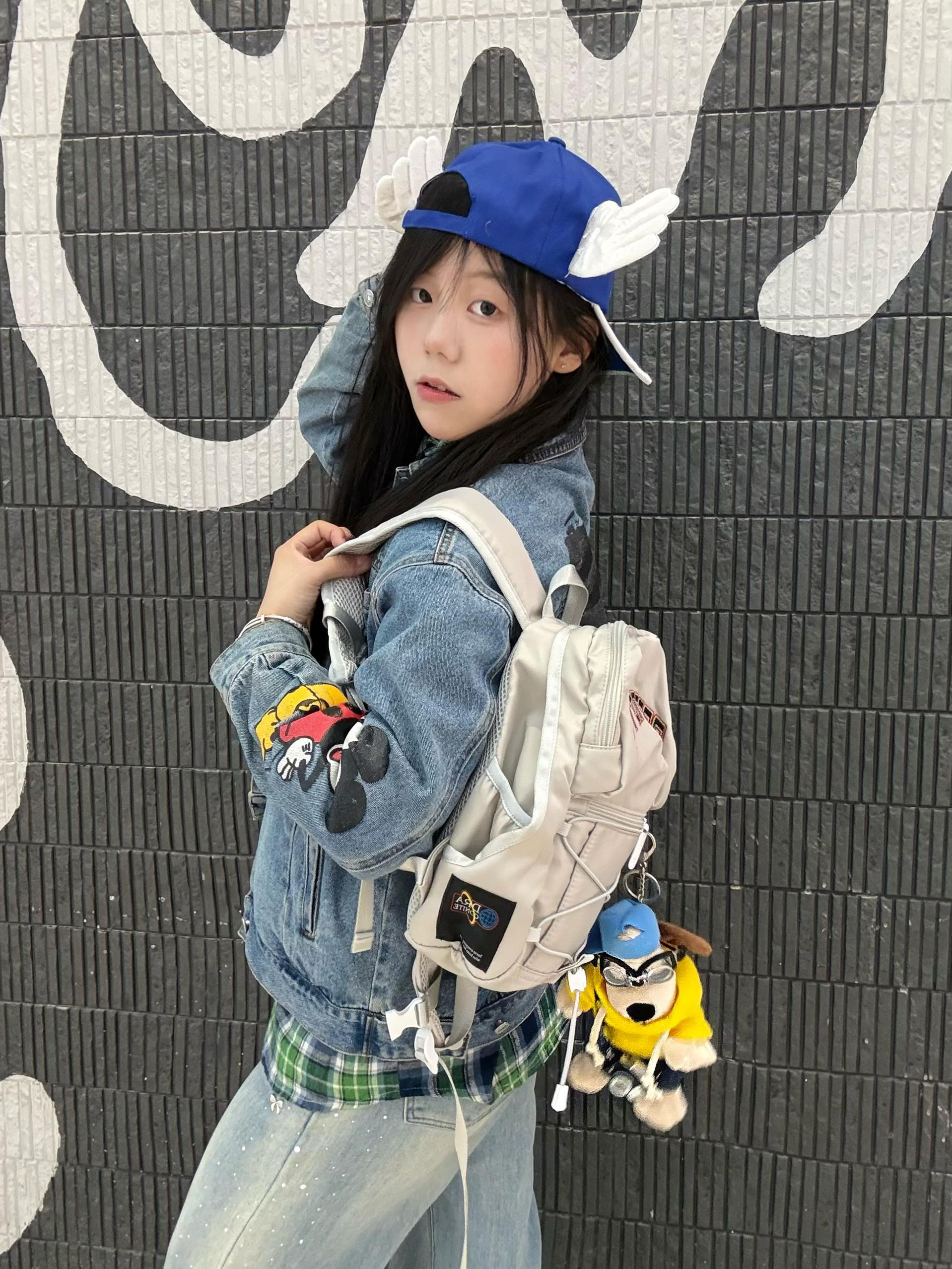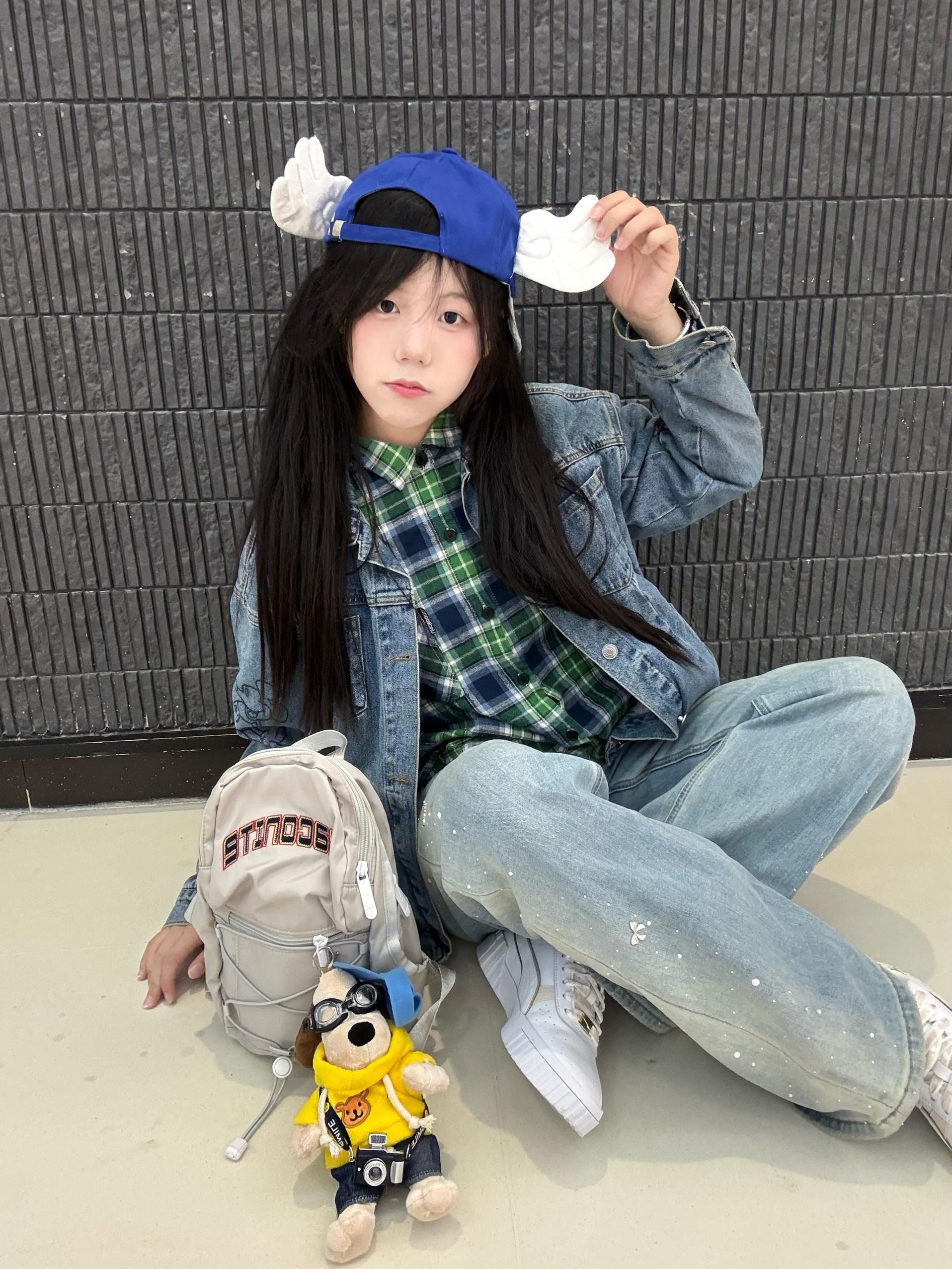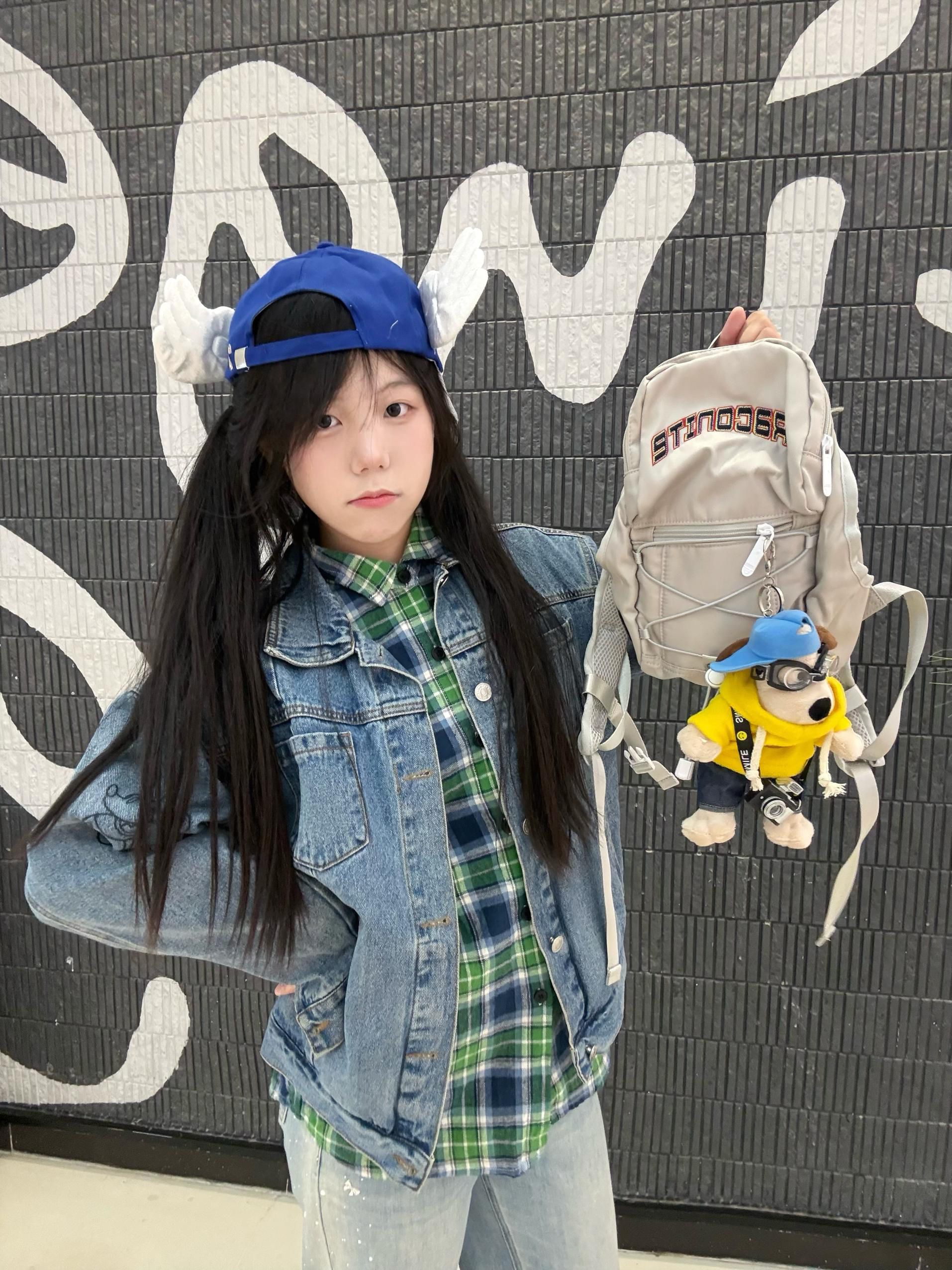 今日ootd 👔森马牛仔外套➕绿色格子衬衫承包今日无边界穿搭 书包是DRACONlTE 小小一个容量很大 鞋子是puma 小白鞋 休闲百搭😍