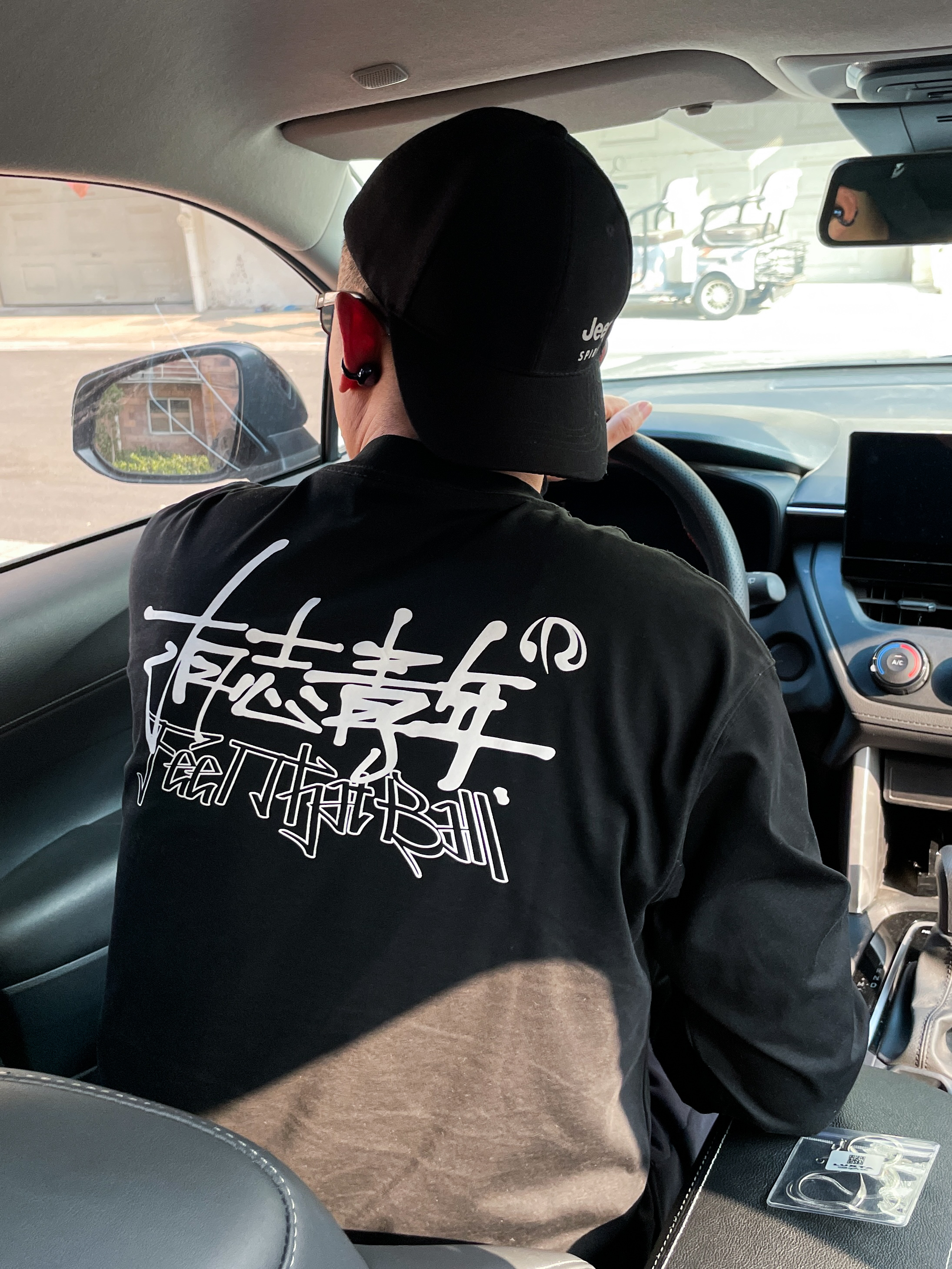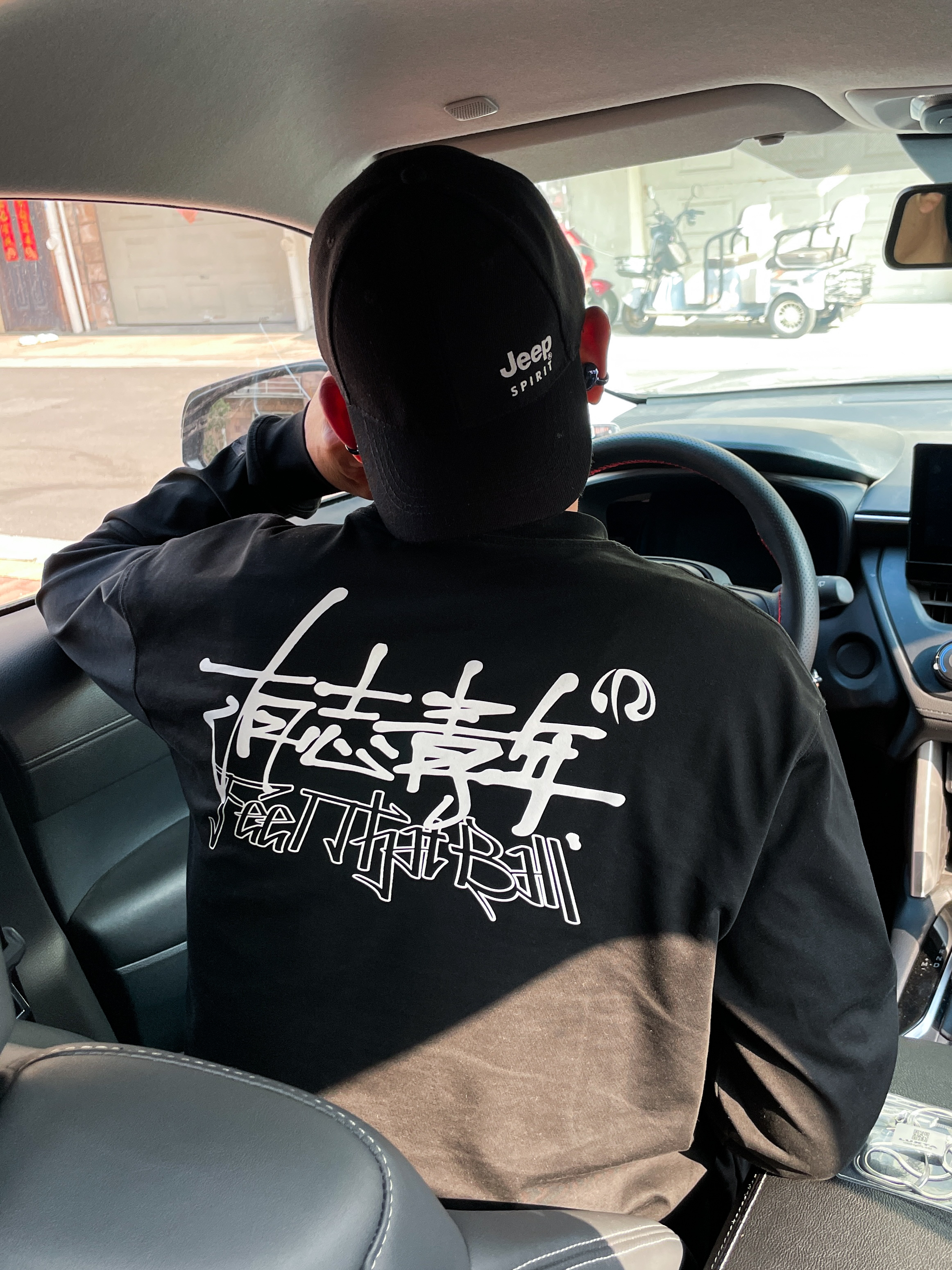 ❤️hi 宝子们好!🤝今日分享: 春夏也要穿出自己独特的帅! 今天上身一件 有志青年 国潮涂鸦长袖T恤 纯黑基底搭配后背白色涂鸦字体印花,国潮态度拉满超有个性!