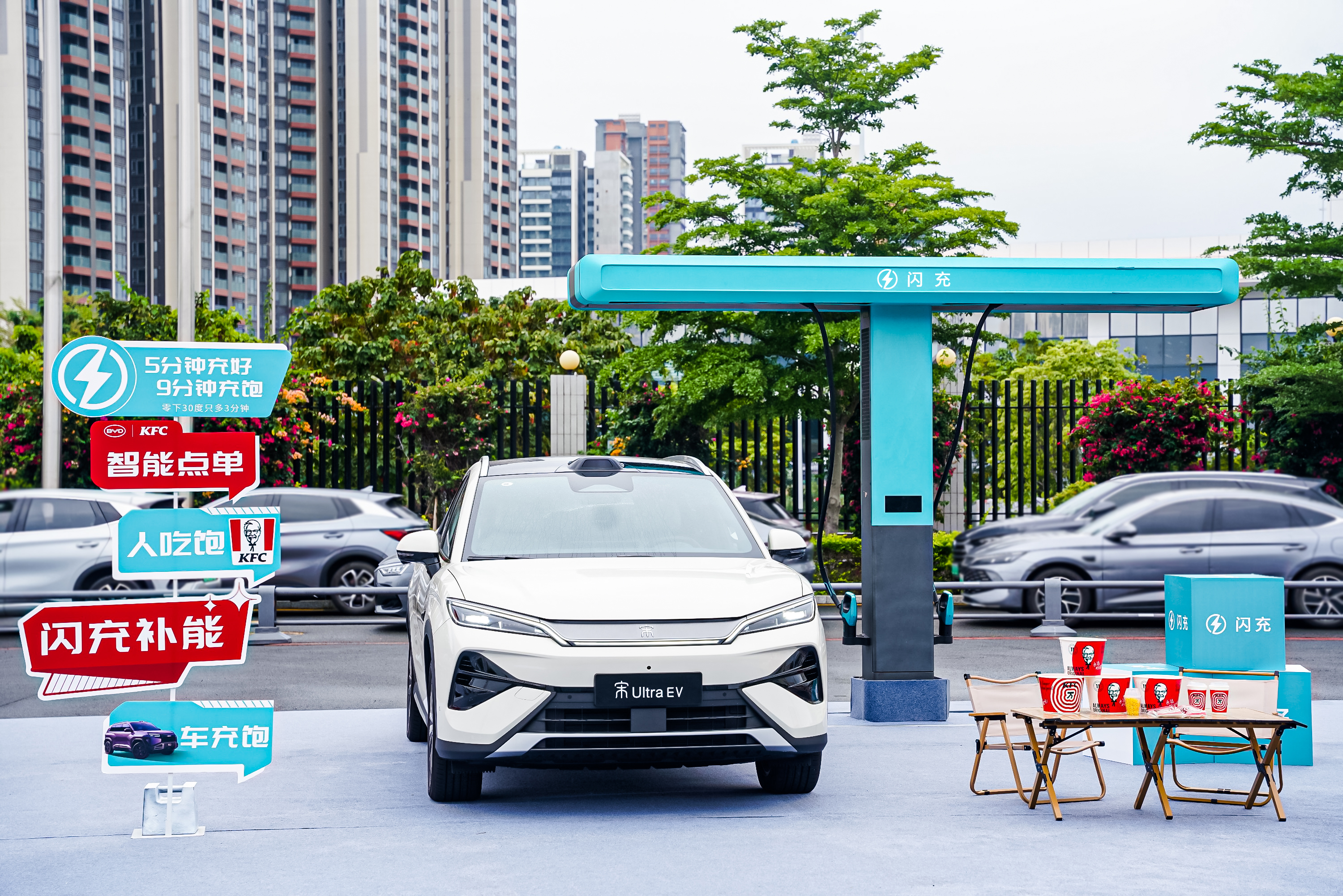 9分钟能做什么?大概只是等一杯咖啡、刷一会儿手机的时间。而现在,比亚迪与肯德基达成战略合作,把新能源汽车的闪充技术与肯德基的车速取服务深度结合,通过智能座舱串联起点餐、取餐、充电、用餐的全流程,共同打造9分钟一站式人车补能新生态。 用户驾车途中通过比亚迪智能语音完成点餐,到达肯德基车速取门店后不用下车就能取餐,然后在门店配套的比亚迪闪充站插枪充电,用餐与充电同步进行,9分钟实现车充饱、人吃饱。平...
