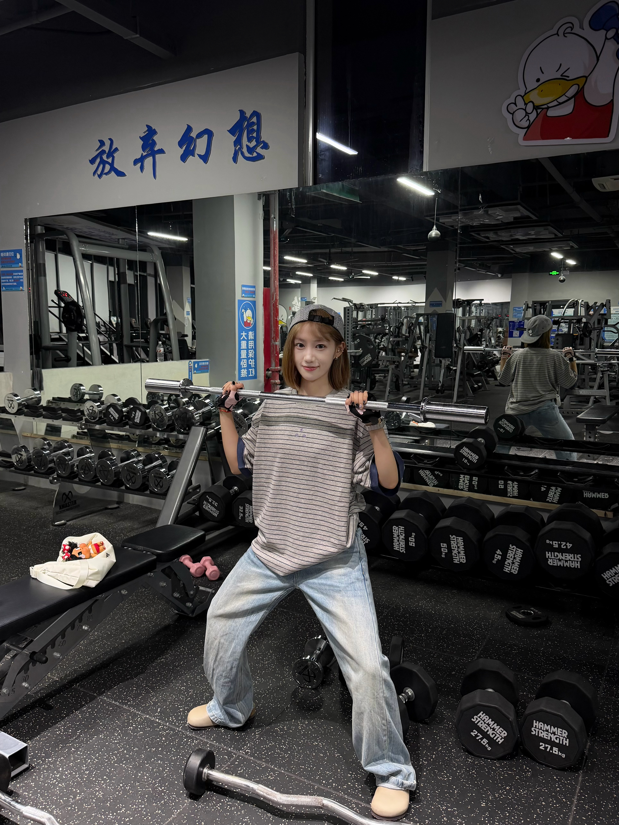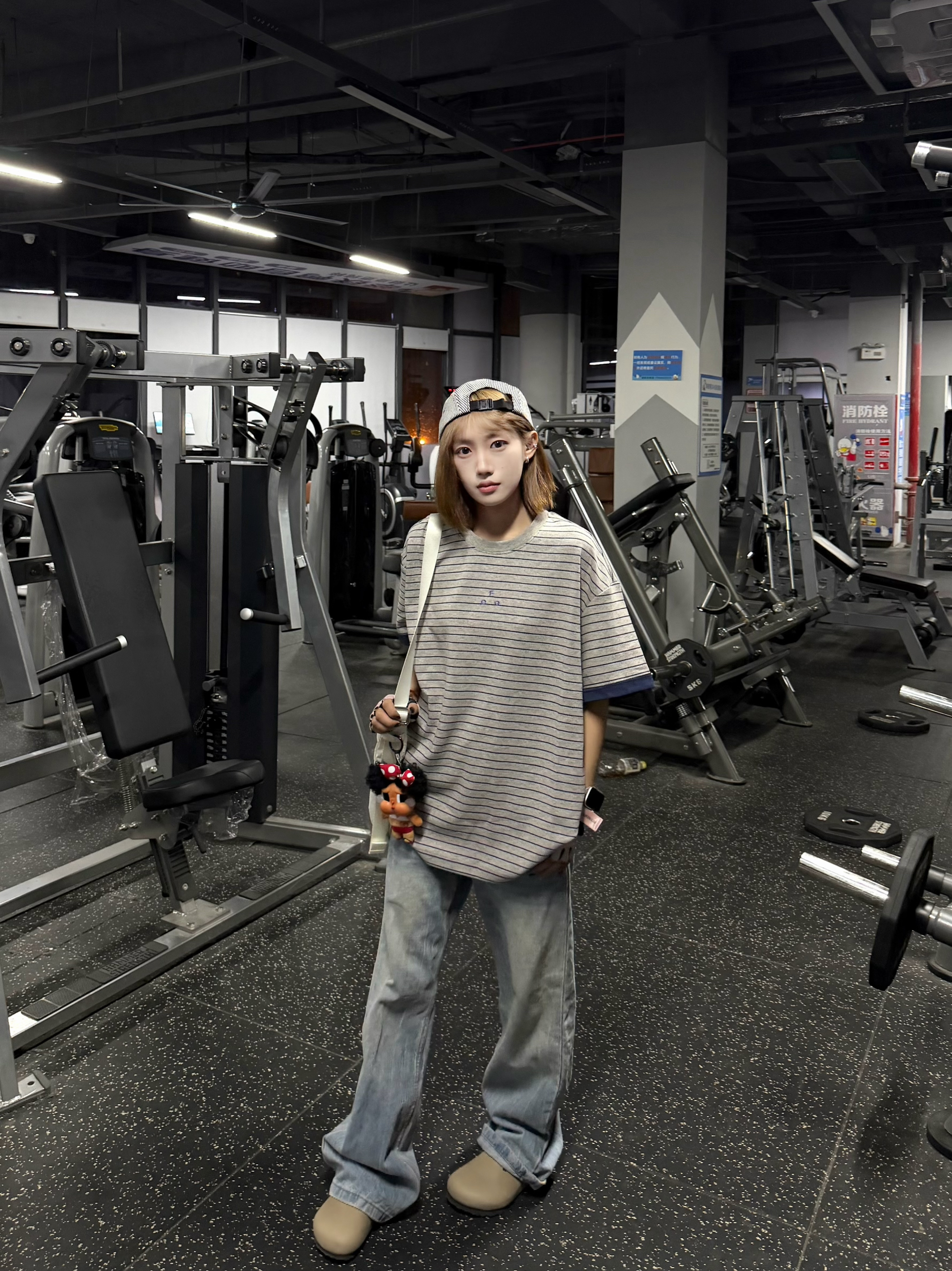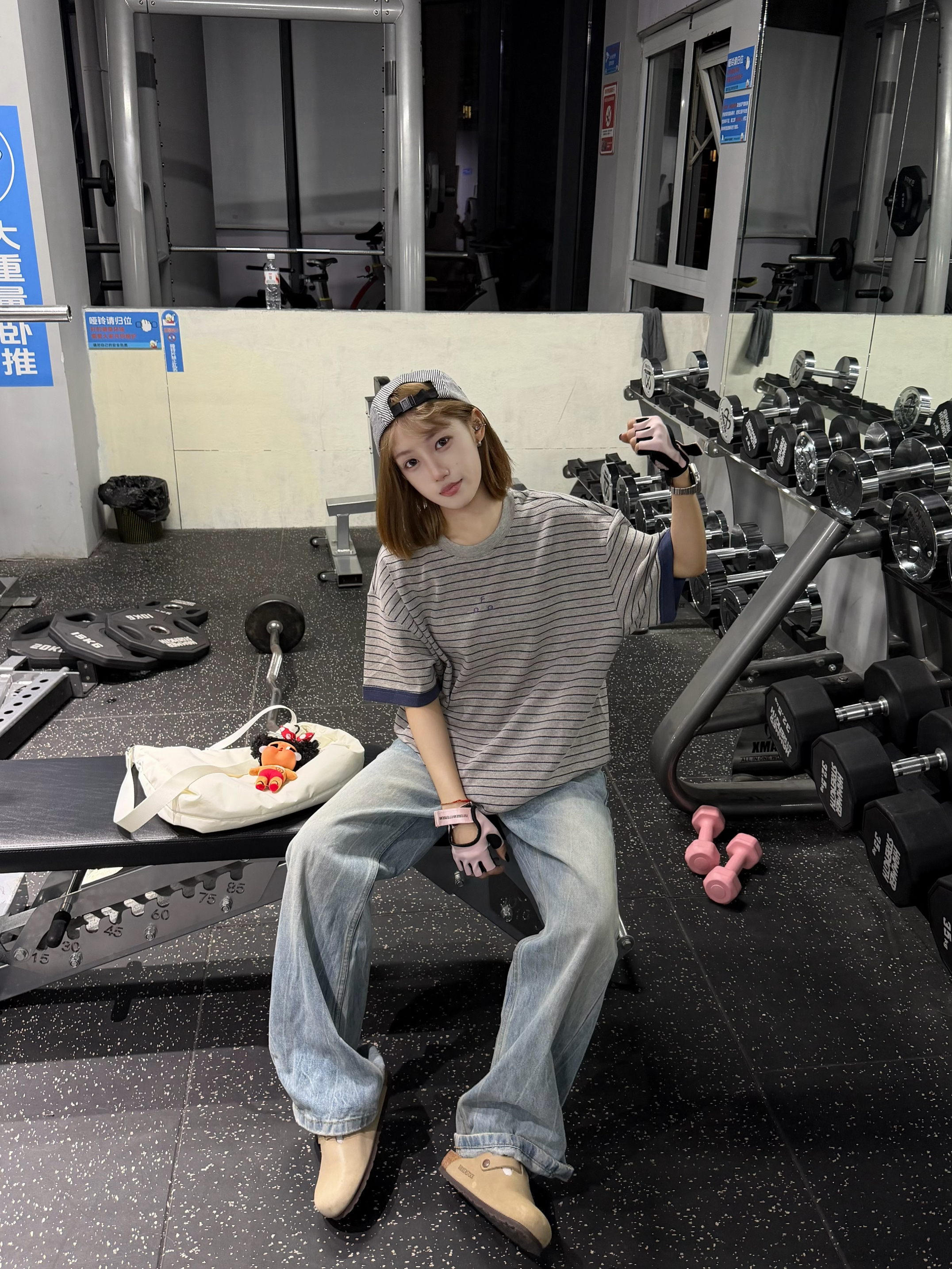 谁懂啊!这件灰条纹短袖直接焊在身上了!宽松版型藏肉又随性,撞色袖口细节感拉满,搭垂感牛仔裤+勃肯鞋,休闲感直接拉满~健身穿舒服不束缚,日常出街也超上镜,懒人穿搭yyds!