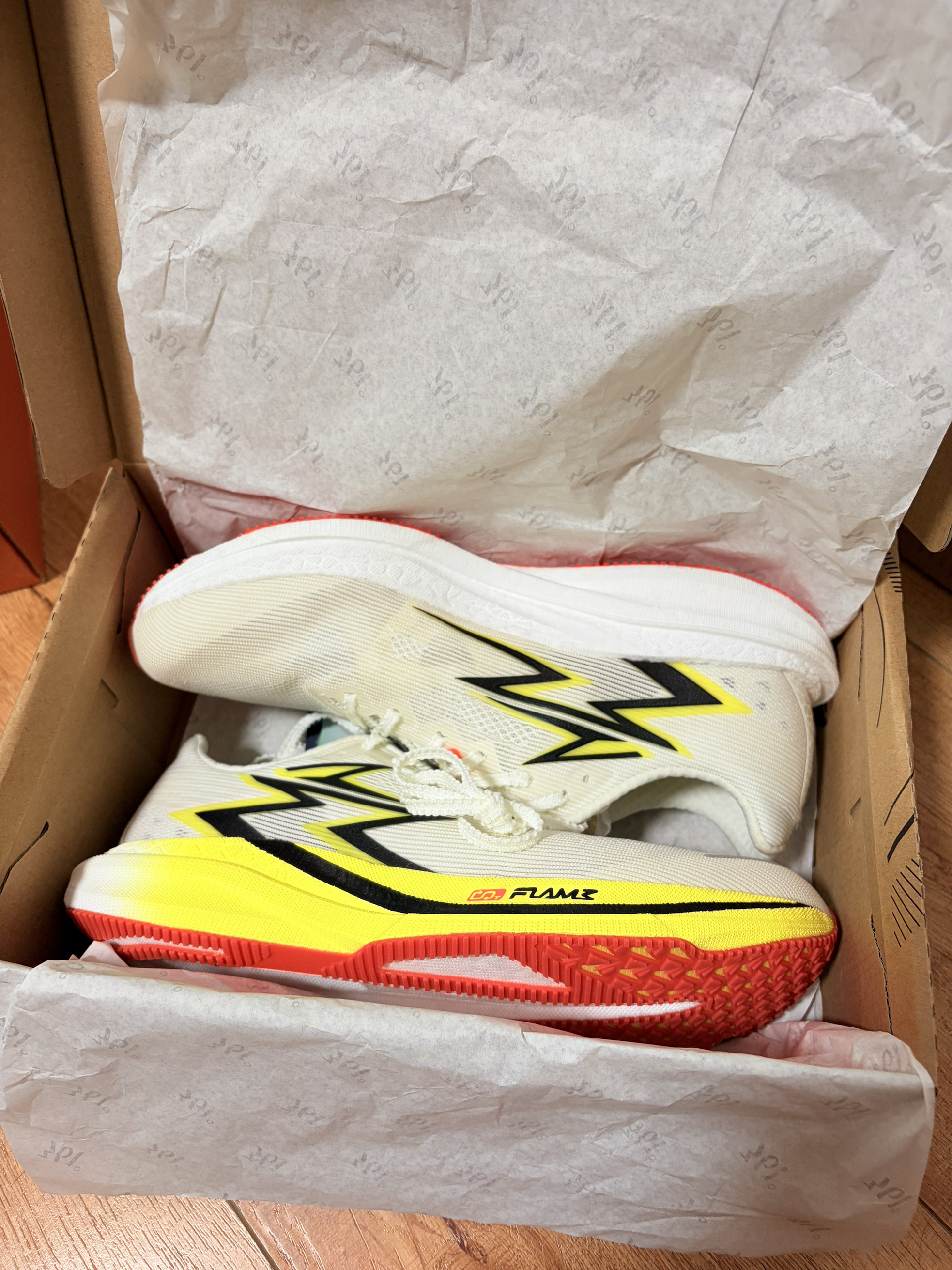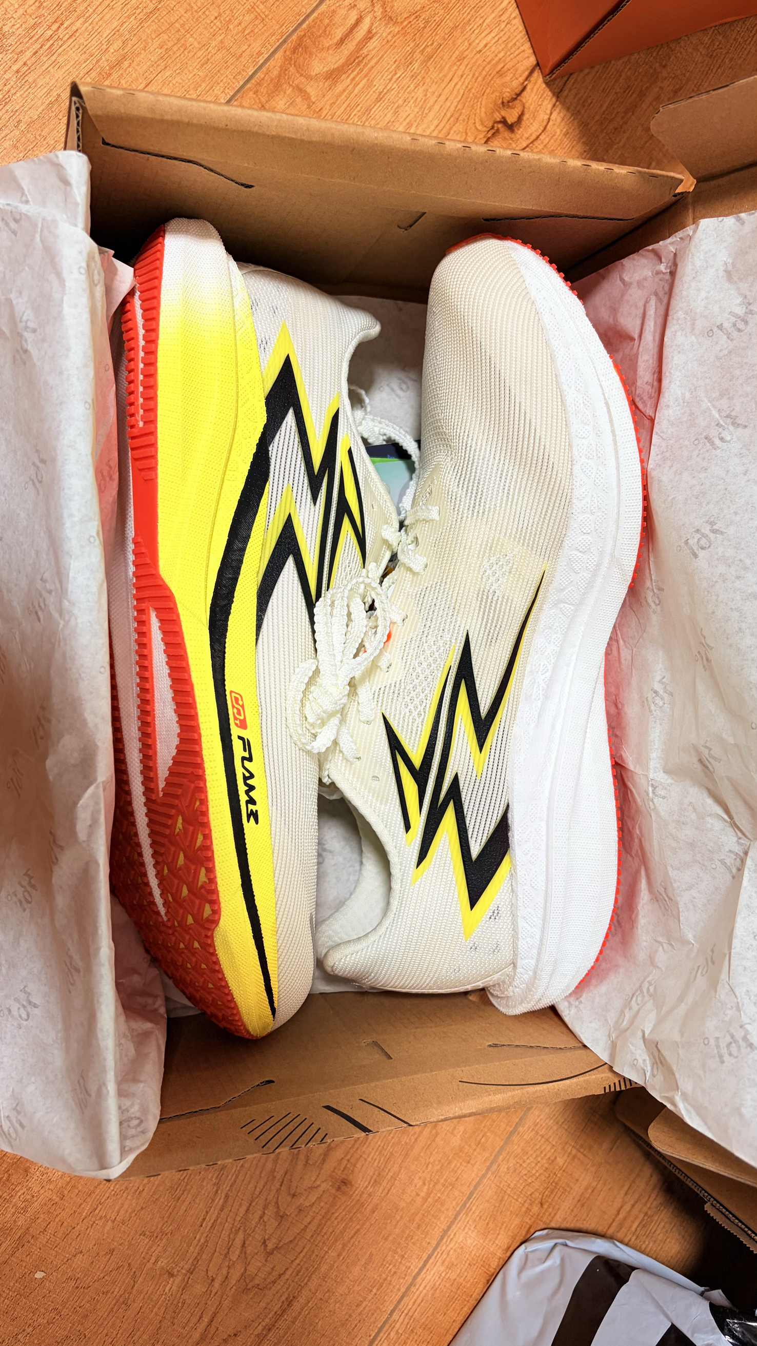 谁懂啊家人们!361°这双飚速4 Pro真的把竞速跑鞋玩明白了✨ 开箱直接被颜值戳中!米白主色+亮黄中底+闪电logo,上脚又飒又吸睛,日常穿搭也完全不违和,跑步出街两穿太香了! ✨ 核心细节拉满,性能直接拉满 1. 中底科技:FLAME 4.0超临界发泡 脚感软弹到起飞!落地缓震够稳,蹬地反馈又快又直接,完全不卸力,不管是日常慢跑还是间歇训练,都能给你满满的推进力,体考1000/800米冲P...
