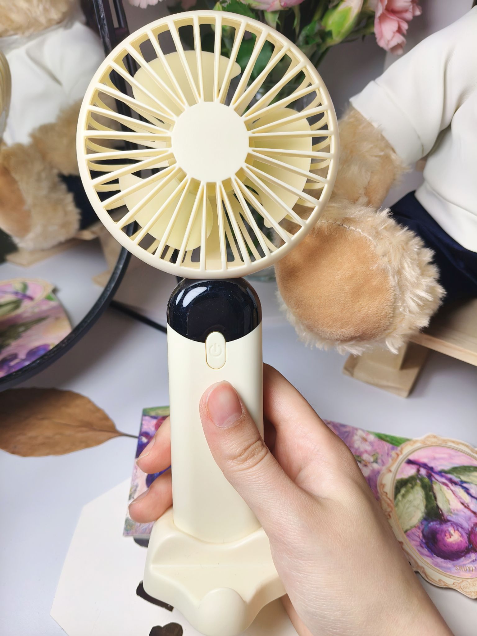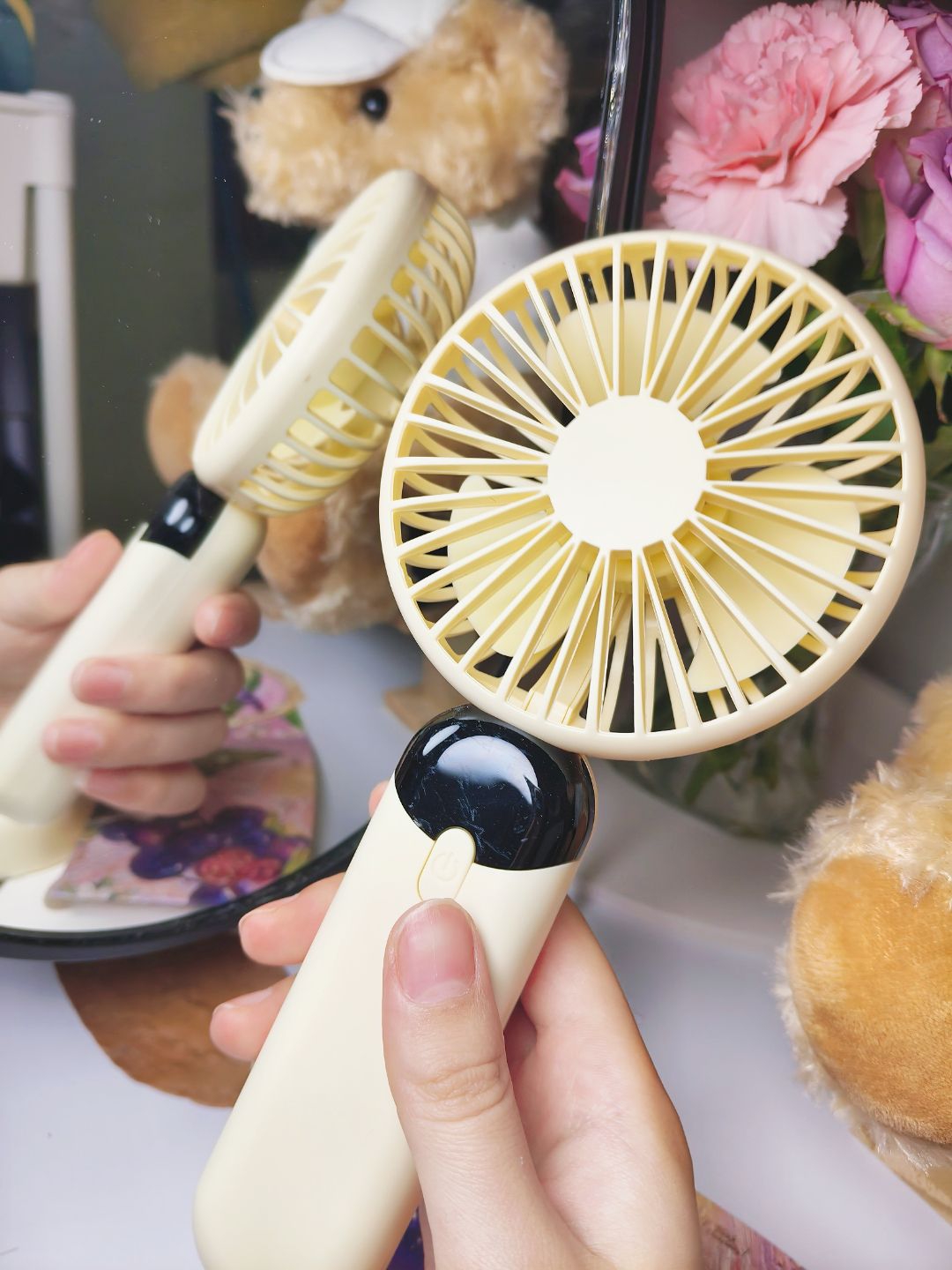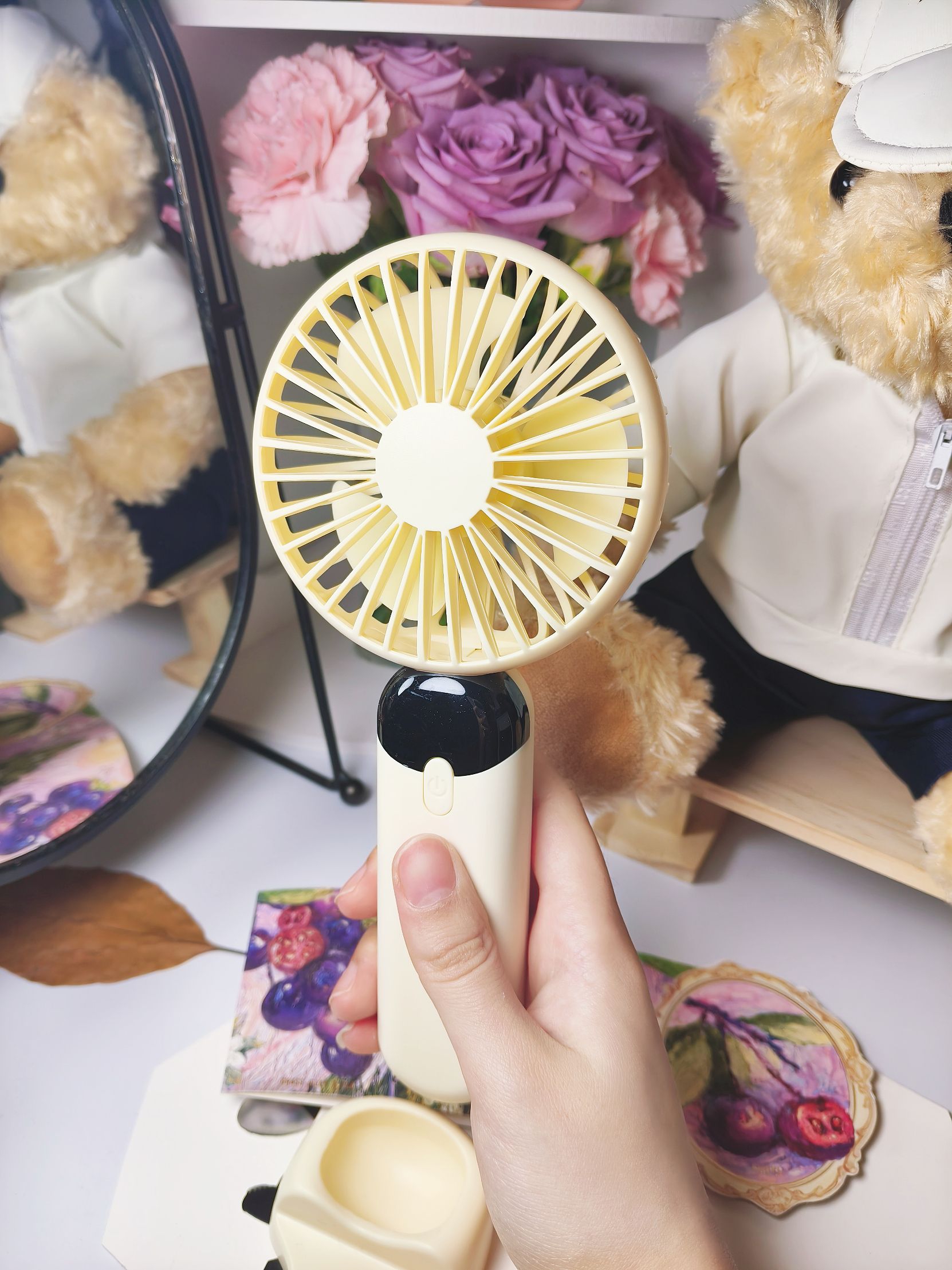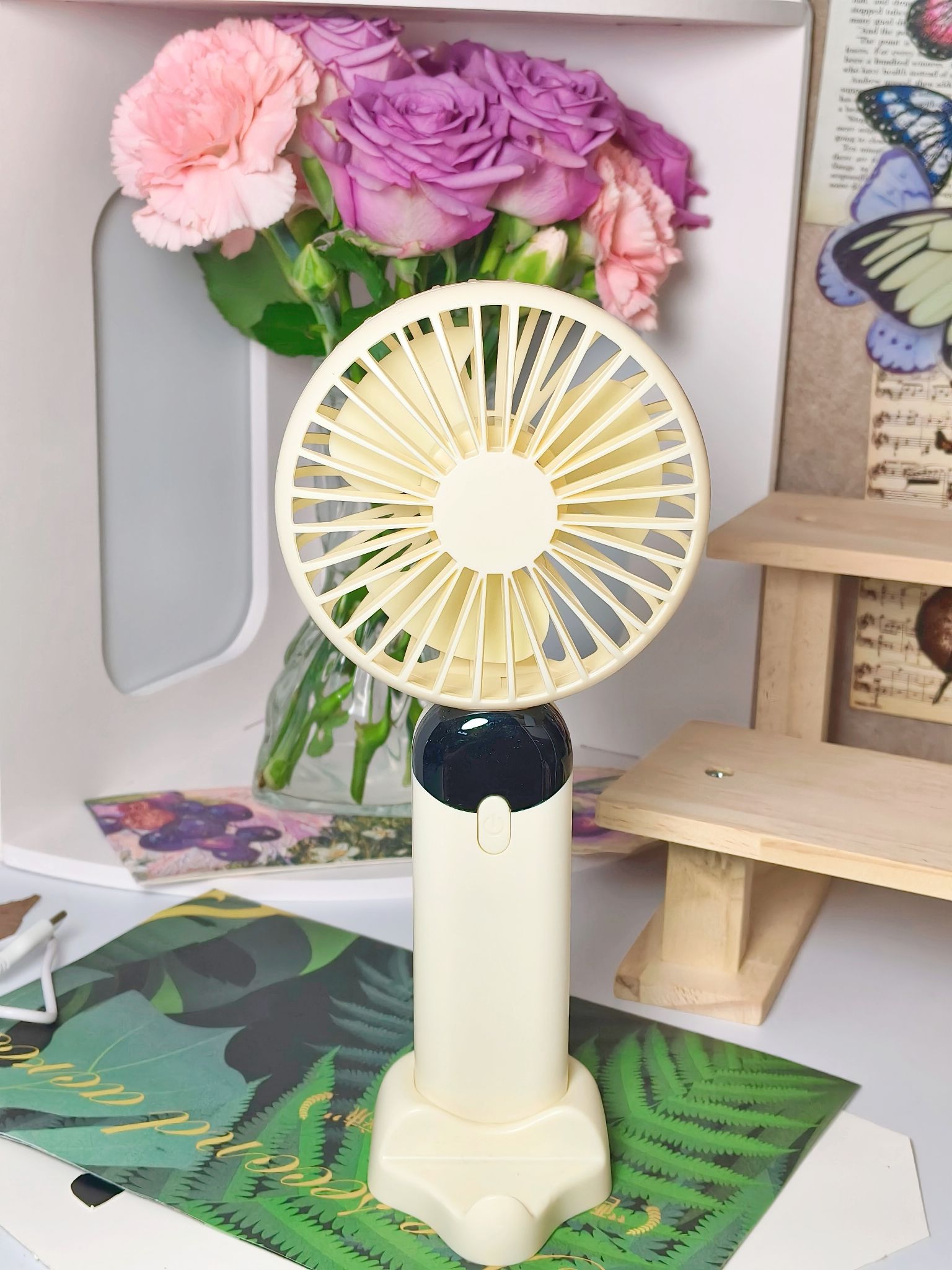 南方夏天总是到的特别早,户外炎热🥵,风力足够和续航充足的手持小风扇必不可少! 入手了这一款性价比高的奶黄色手持小风扇,一共有六档可以调节,可以调到感到舒服的风力,而且电量和风力直接可显示,能随时看到数值,很方便! 还配有底座,可以解放双手,配色好看,风力强大,还要什么自行车,入手不亏!