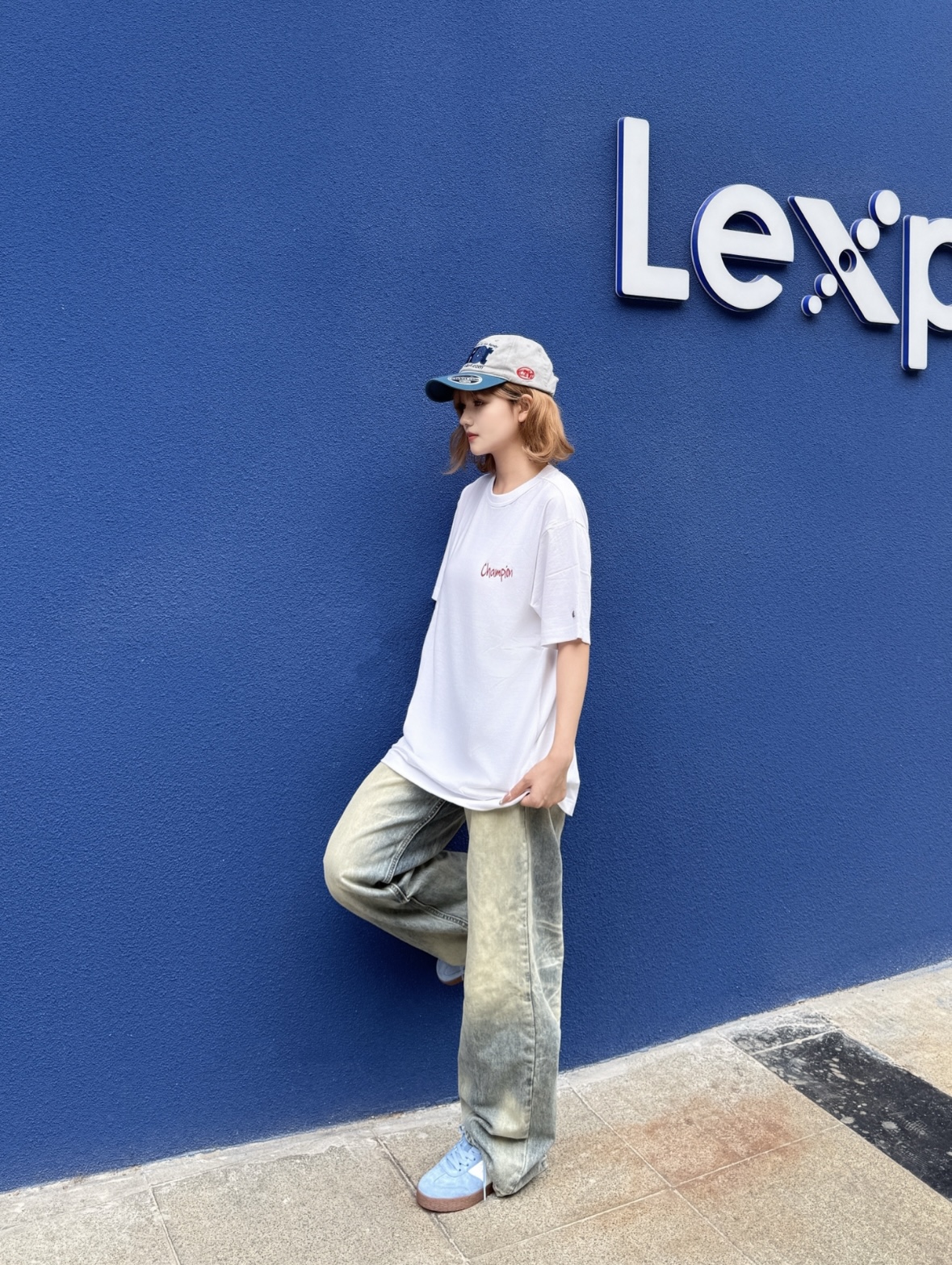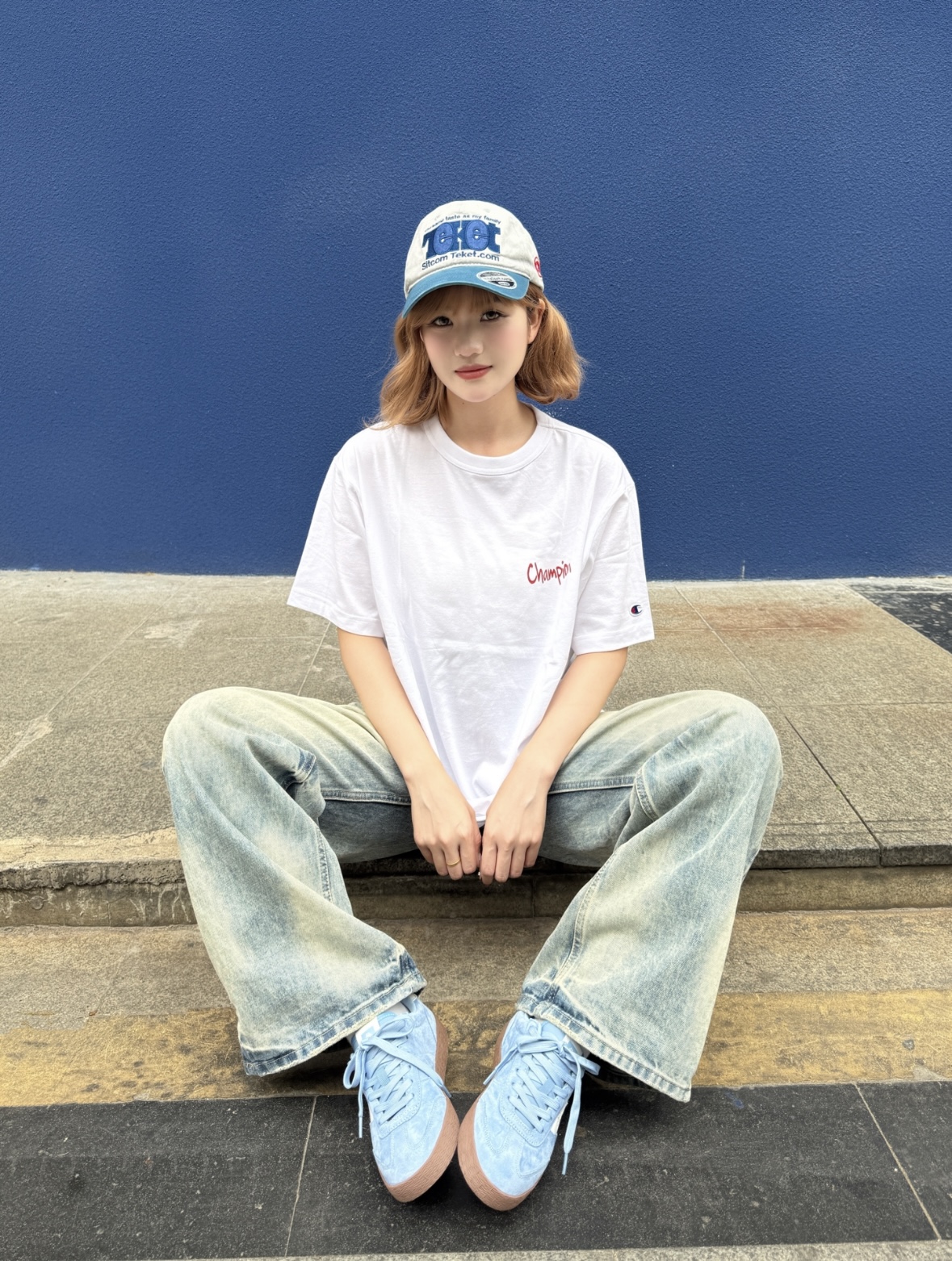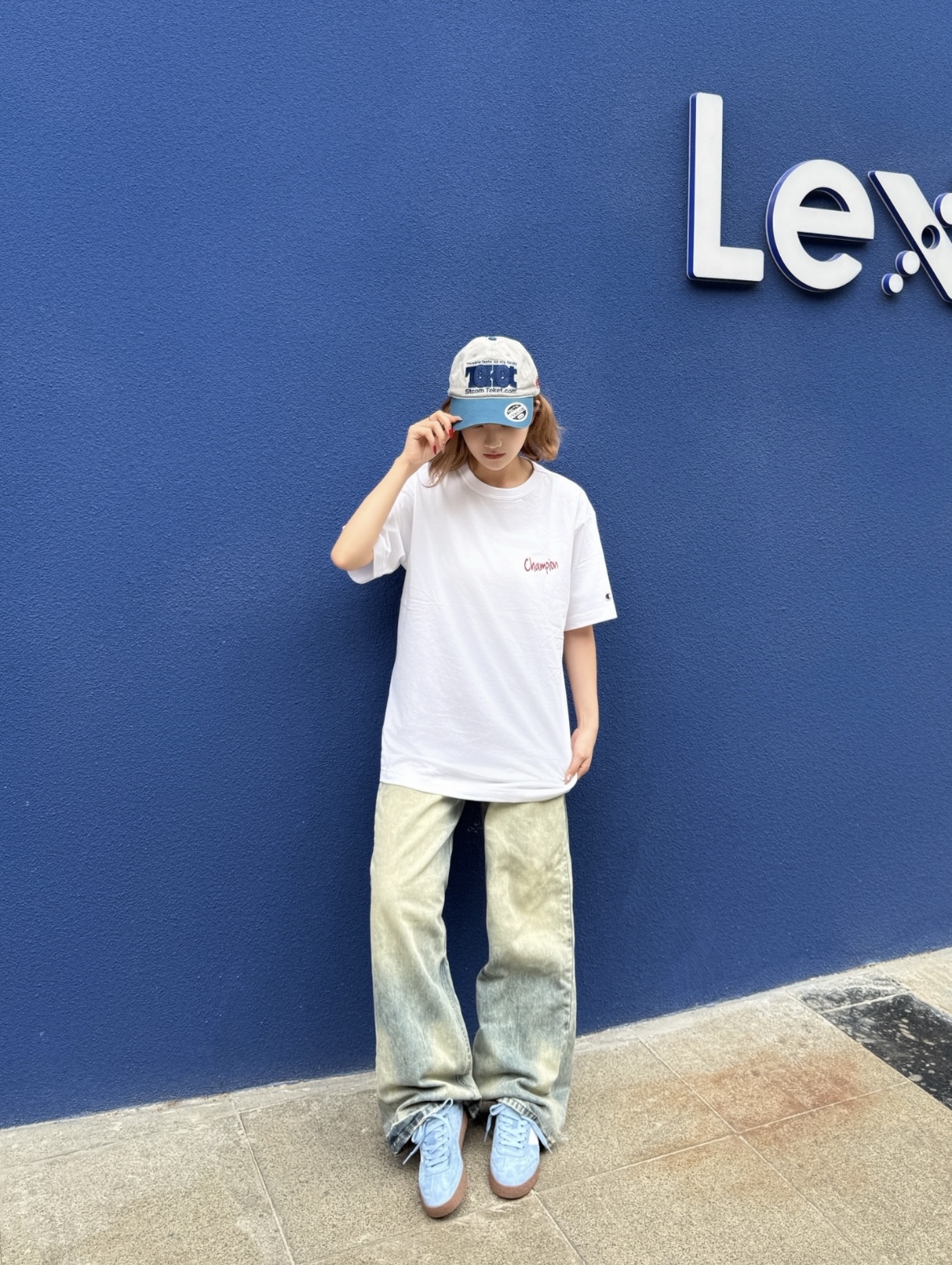 谁懂啊!Champion这件后背印花短袖真的长在审美上了! 纯白色基础款太干净了,后背NEW YORK撞色印花超有辨识度,背影杀直接拿捏🤌 纯棉面料软乎乎的 宽松版型对梨形身材超友好 随便搭条做旧牛仔裤就很有那味儿 搭配kappa百搭蓝色的鞋子!!!美式街头感直接拉满! 男女同款,情侣装也超合适,夏天出街、上学、通勤都能穿,衣柜里的百搭神T!