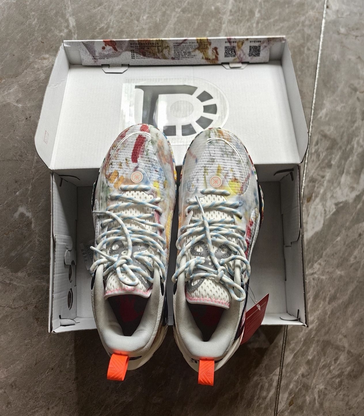 还在纠结送男朋友什么生日礼物,看一下李宁DLO 1拉塞尔一代「画布」配色也太会了吧! 连鞋盒都是同系列涂鸦设计,开箱仪式感直接拉满!泼墨涂鸦的设计真的超有个性,白底色混着红、黄、蓝、绿的鲜活色块,鞋面、外底的细节感直接拉满,完全长在年轻人的审美上! 上脚的话很显活力,不管是打球实战还是日常出街搭衣服,都很好看!