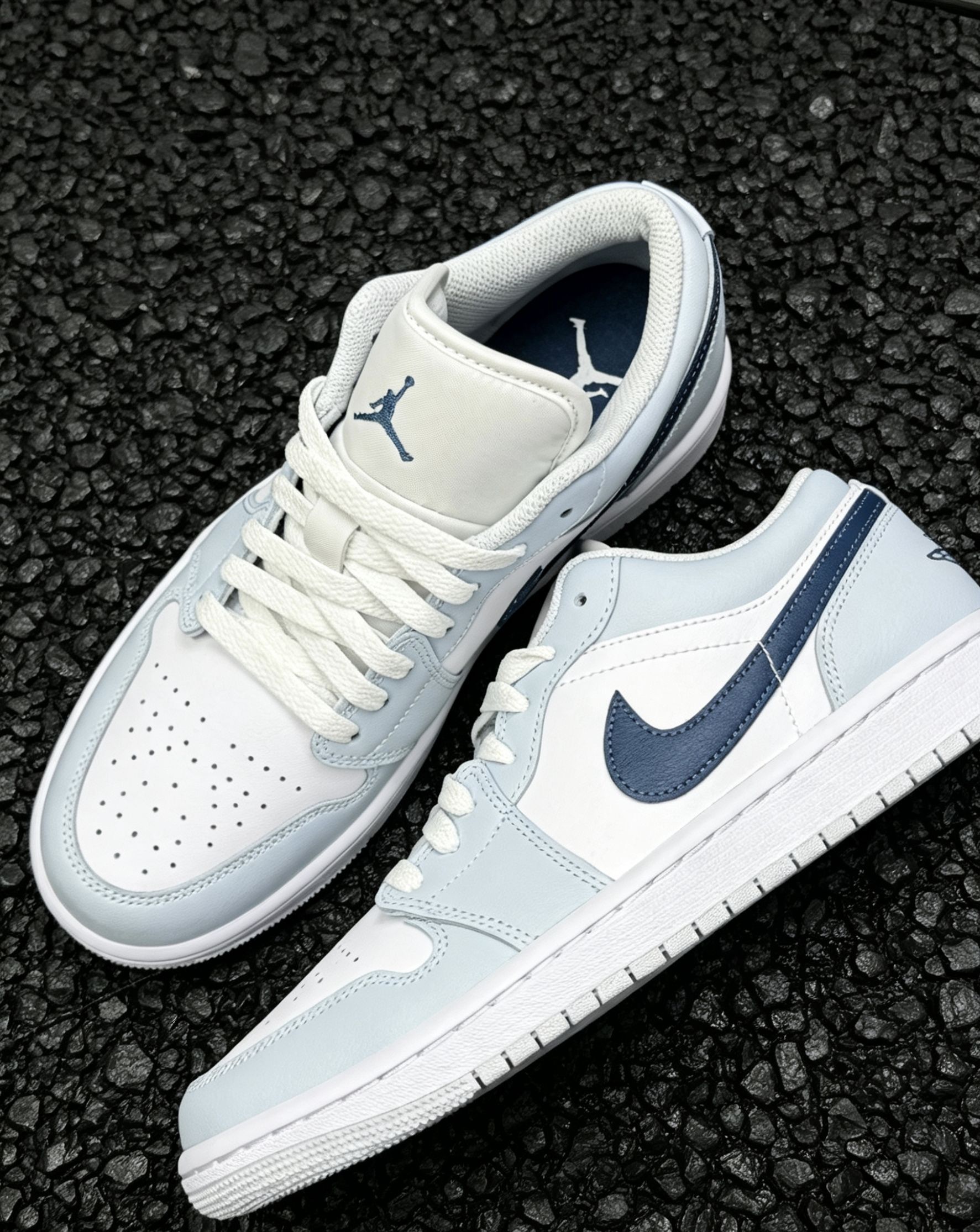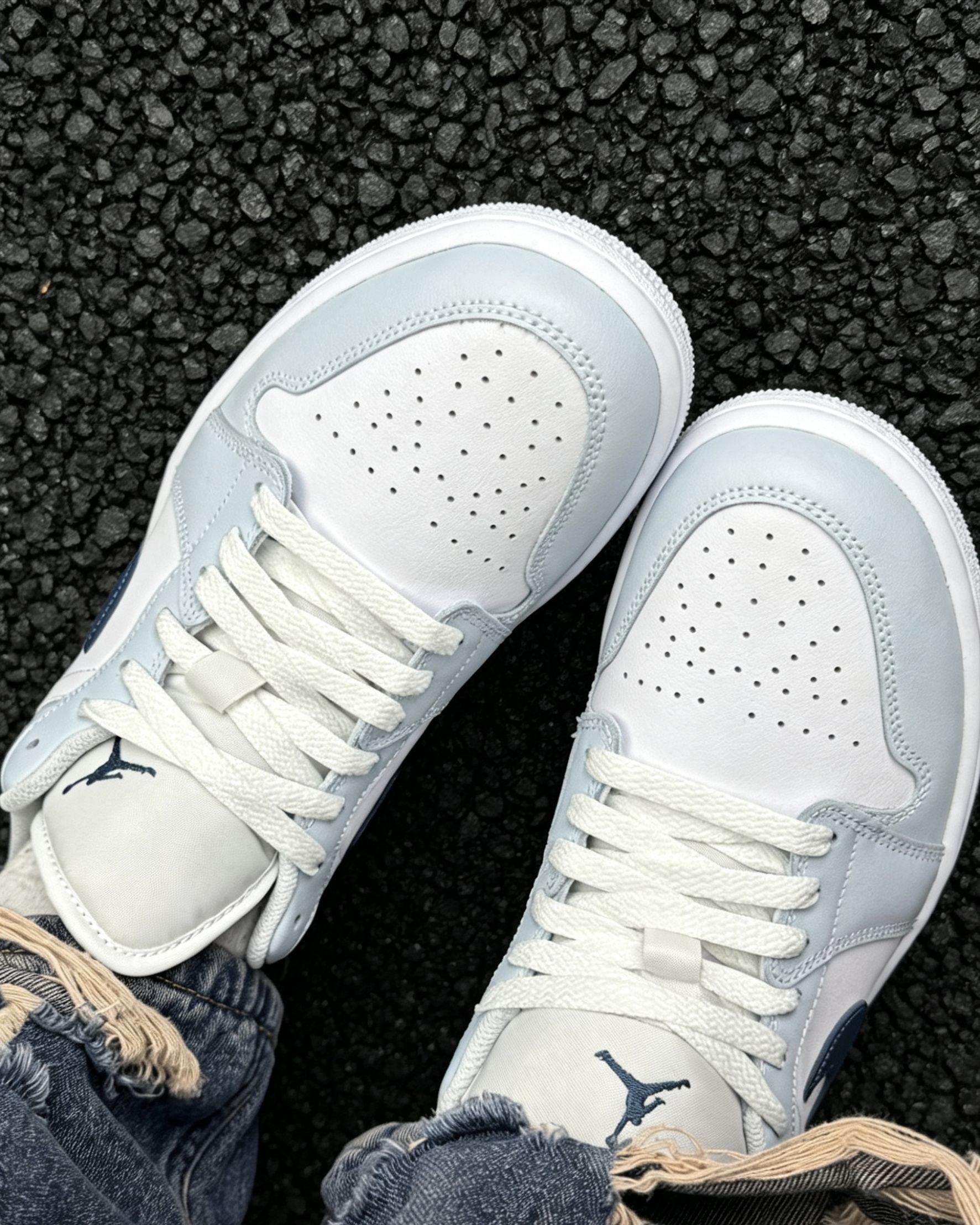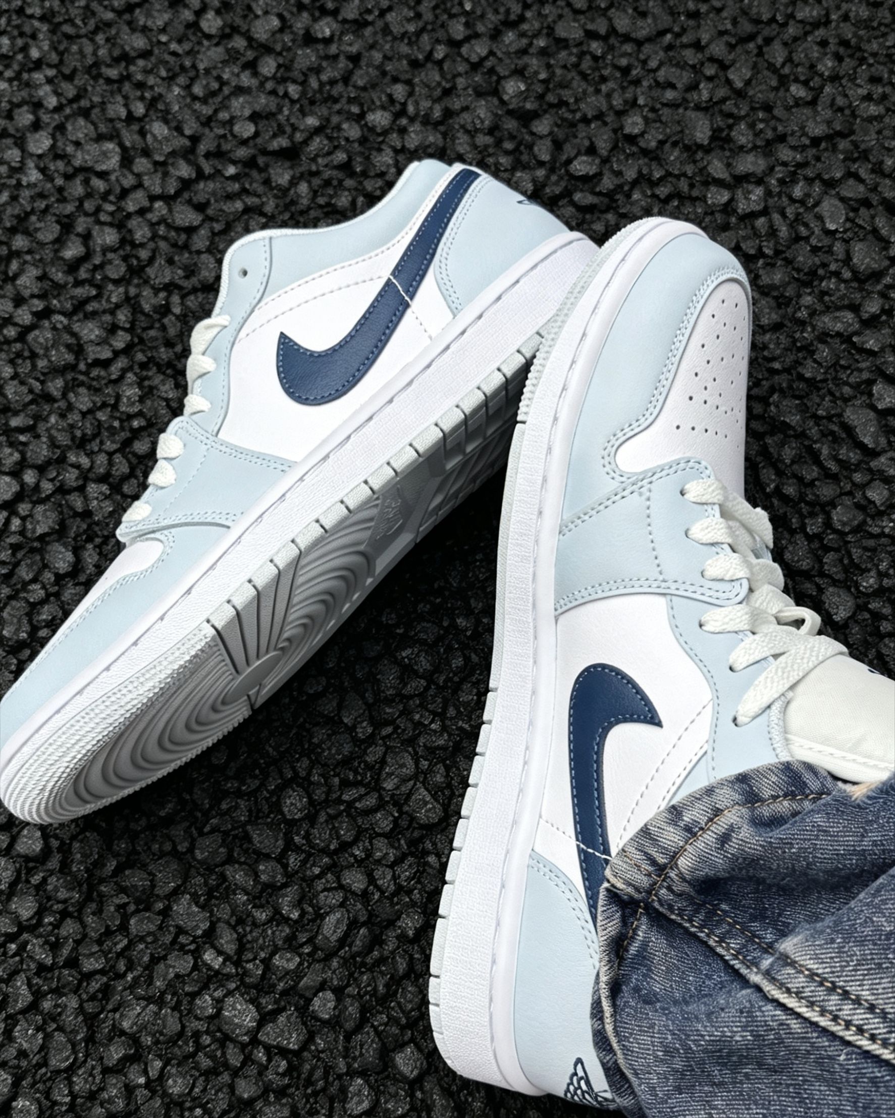 谁懂啊!这双AJ1低帮冰蓝真的是春夏本命鞋了🥹 奶fufu的浅冰蓝+干净白,搭配深勾撞色,温柔感直接拉满 上脚显白又清爽,低帮设计不闷脚,牛仔裤、运动裤、小裙子都能搭 日常通勤、出街拍照都超上镜,脚感也很舒服,暴走一天都不磨脚 夏天的第一双小白鞋,选它准没错!