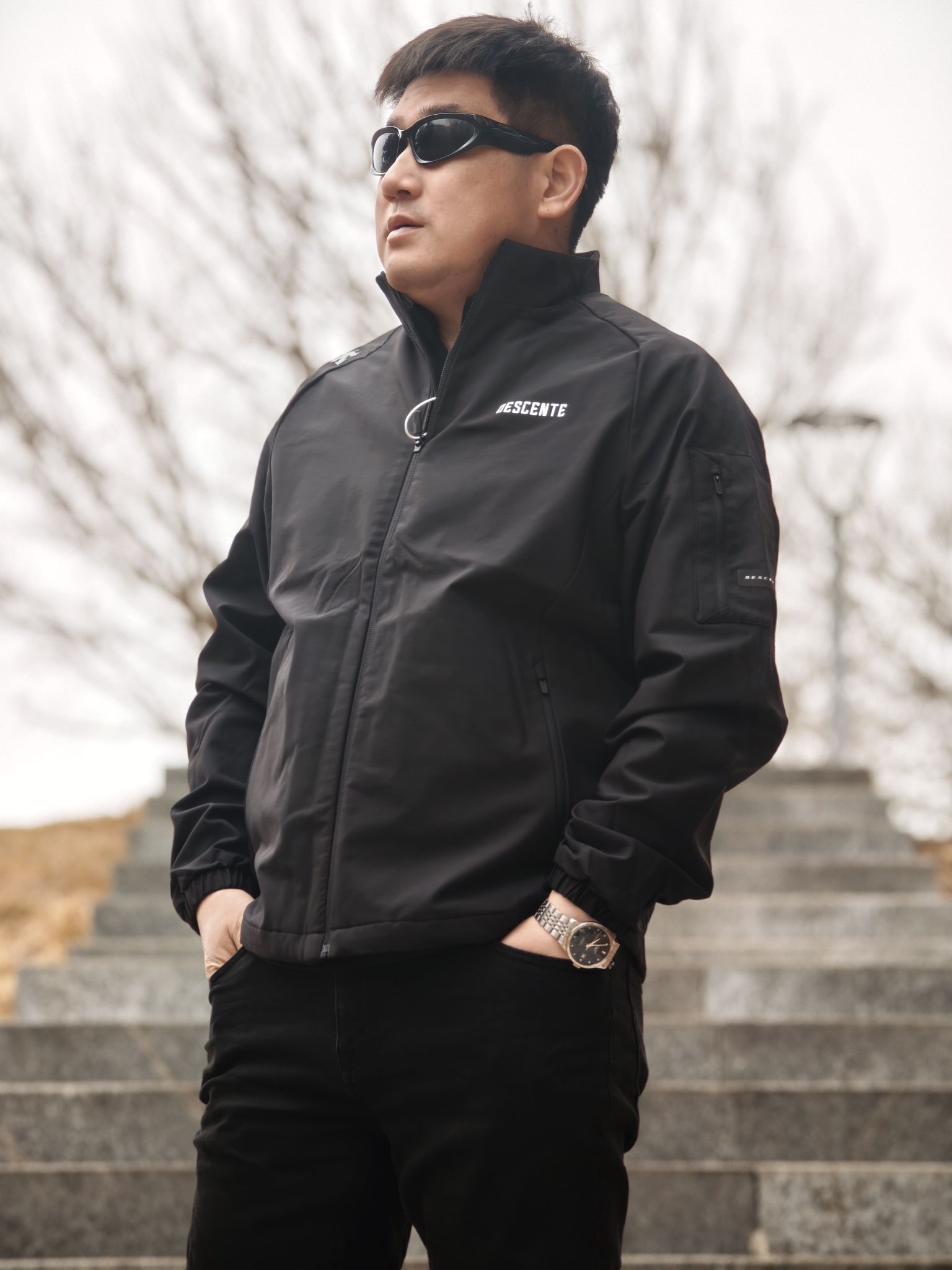 穿上这件迪桑特TRAINING系列SS26立领夹克,最直接的感受是面料挺括又有质感,完全不软塌,上身很显利落。看似轻薄,却足够应付早晚凉意与微风,日常遇到小雨也基本无压力,荷叶式拒水效果实测靠谱。运动时腋下透气结构很加分,大幅伸展没有束缚感,体感干爽不闷汗。两侧拉链口袋方便实用,经典小立领挡风又提升气场,整体裁剪精良,兼顾了日常穿搭和轻运动需求。