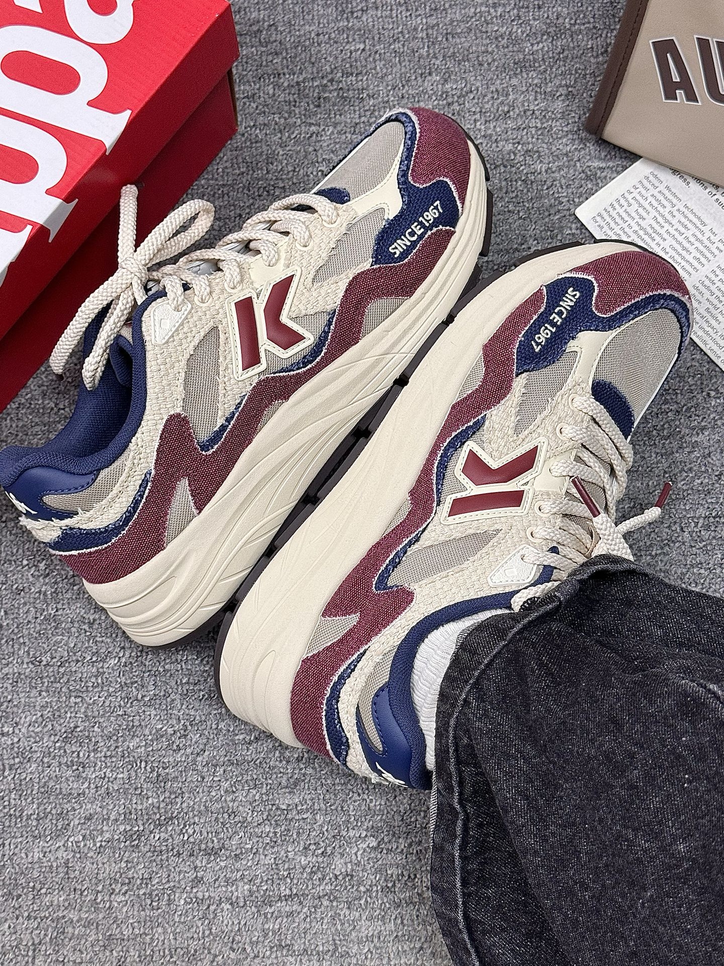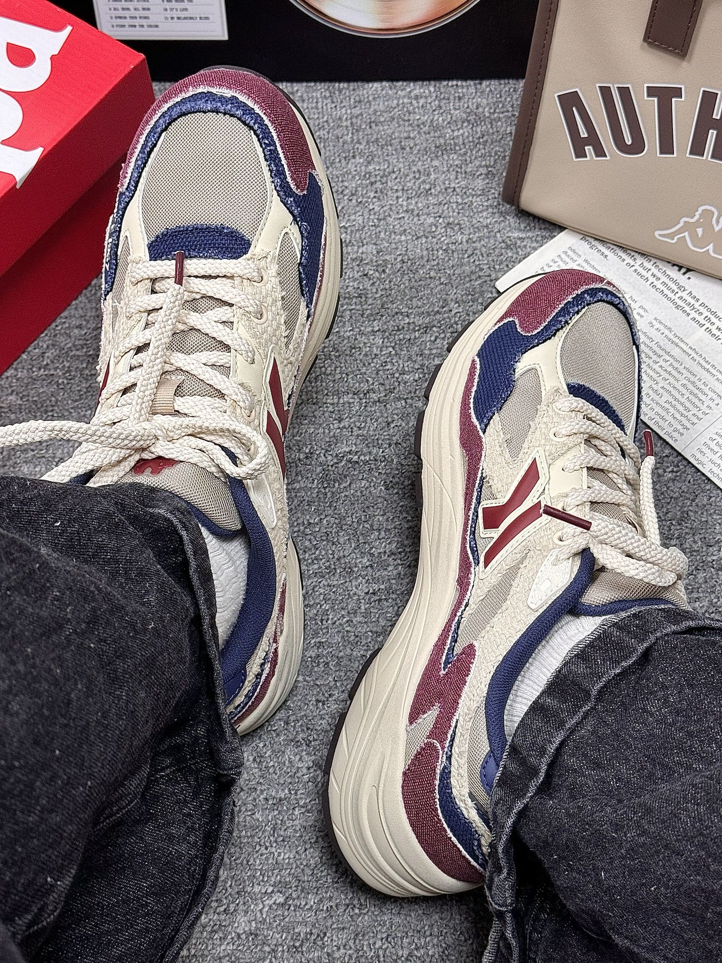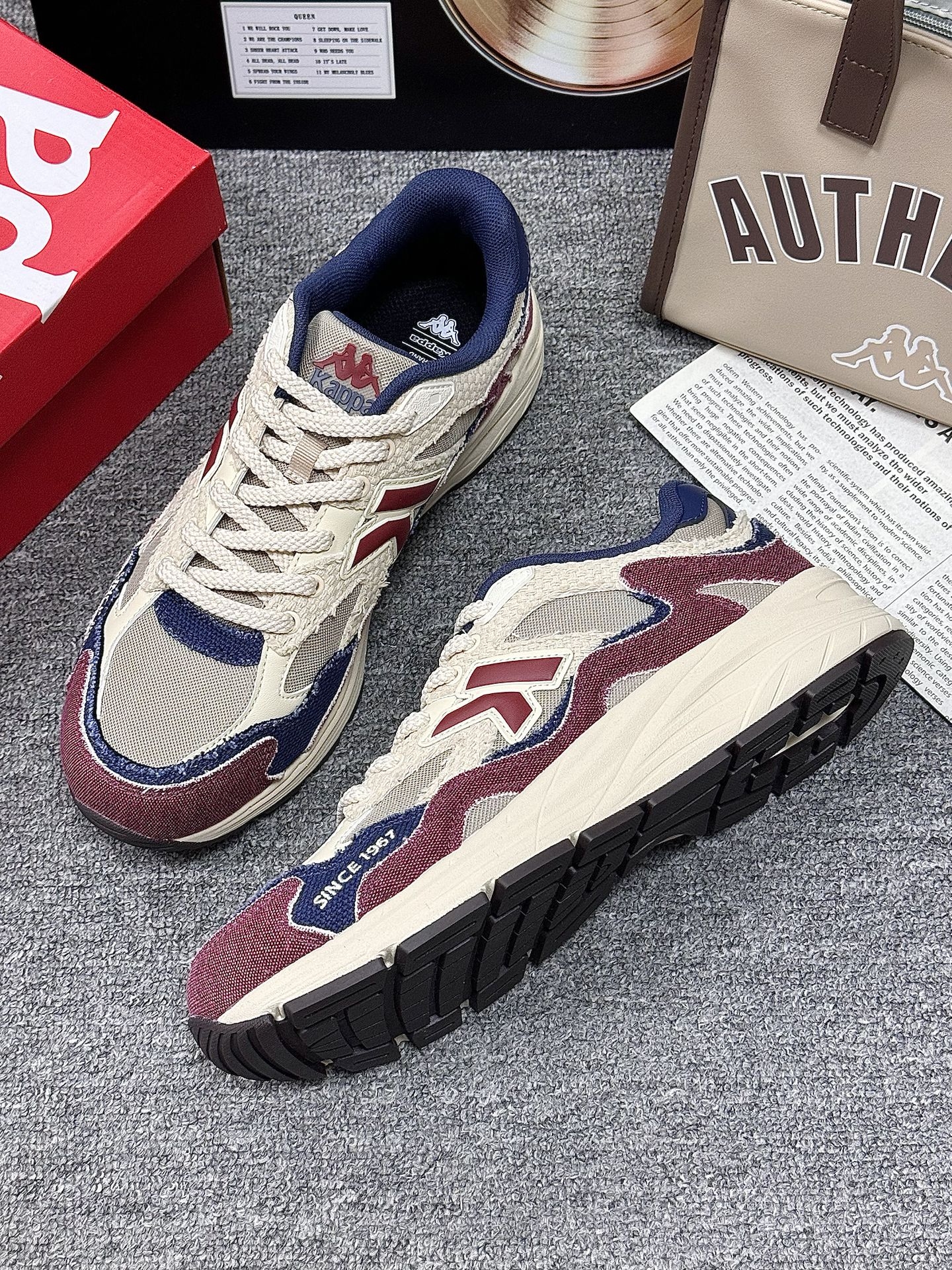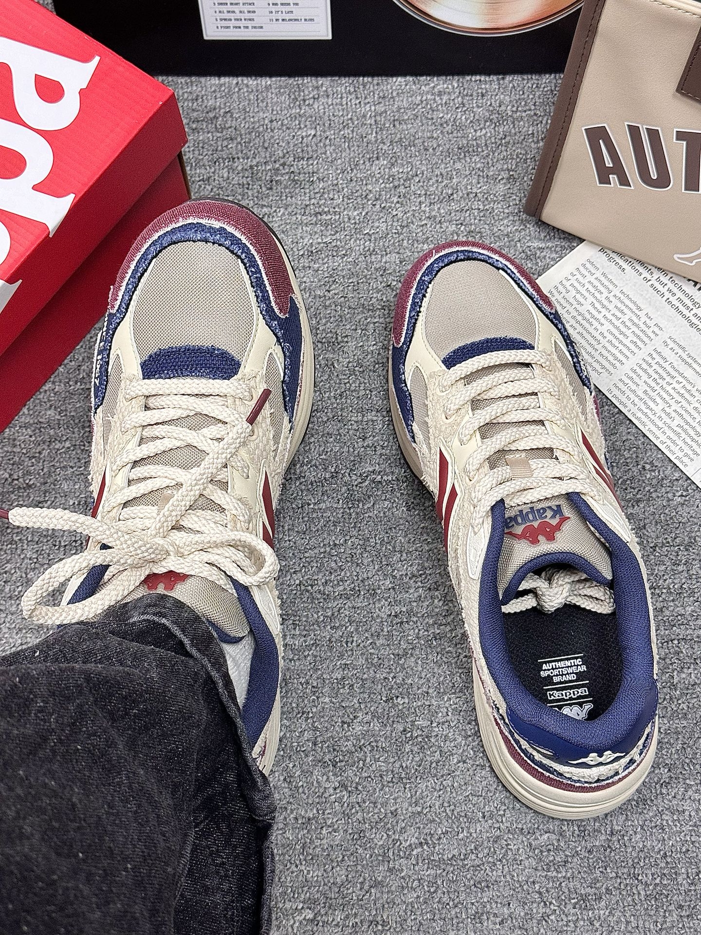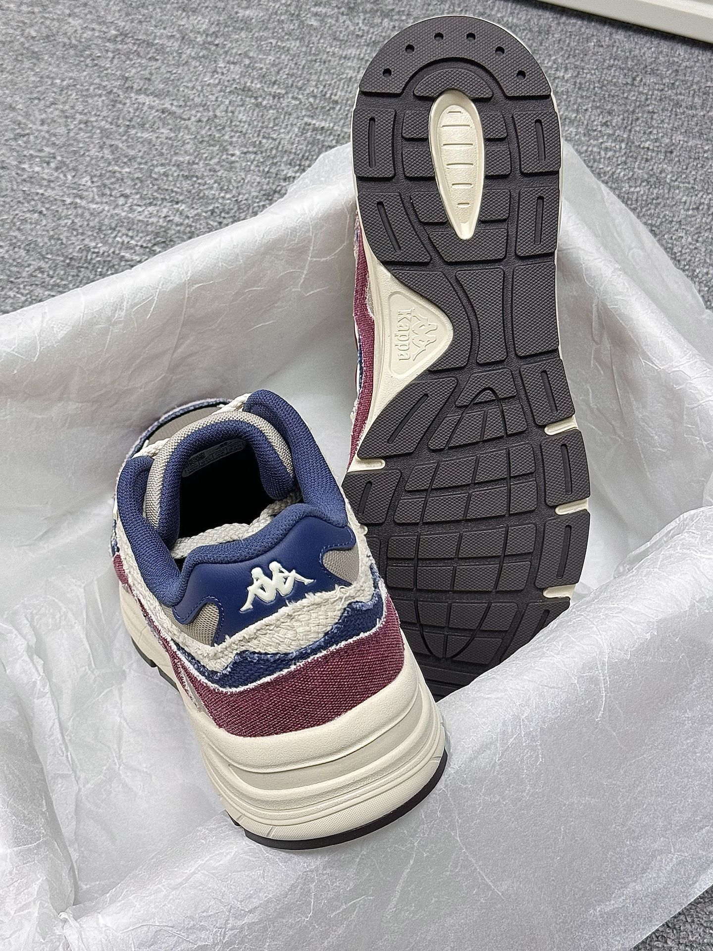 测评封神!Kappa复古做旧跑鞋,百元价位get千元质感! 细节控真的爱惨:做旧牛仔布+网面拼接,质感高级又耐造;标志性背靠背logo,复古感拉满;酒红+藏蓝撞色,不挑肤色不挑穿搭;鞋型超修饰腿型,穿上秒变大长腿,小个子也能轻松驾驭~ 耐磨橡胶大底防滑又稳,日常通勤、健身运动、逛街约会全场景适配,男生穿酷飒,女生穿甜酷,完全不挑人! 作为Kappa复古款,颜值与实力双在线,不管是自留还是送朋友都超...