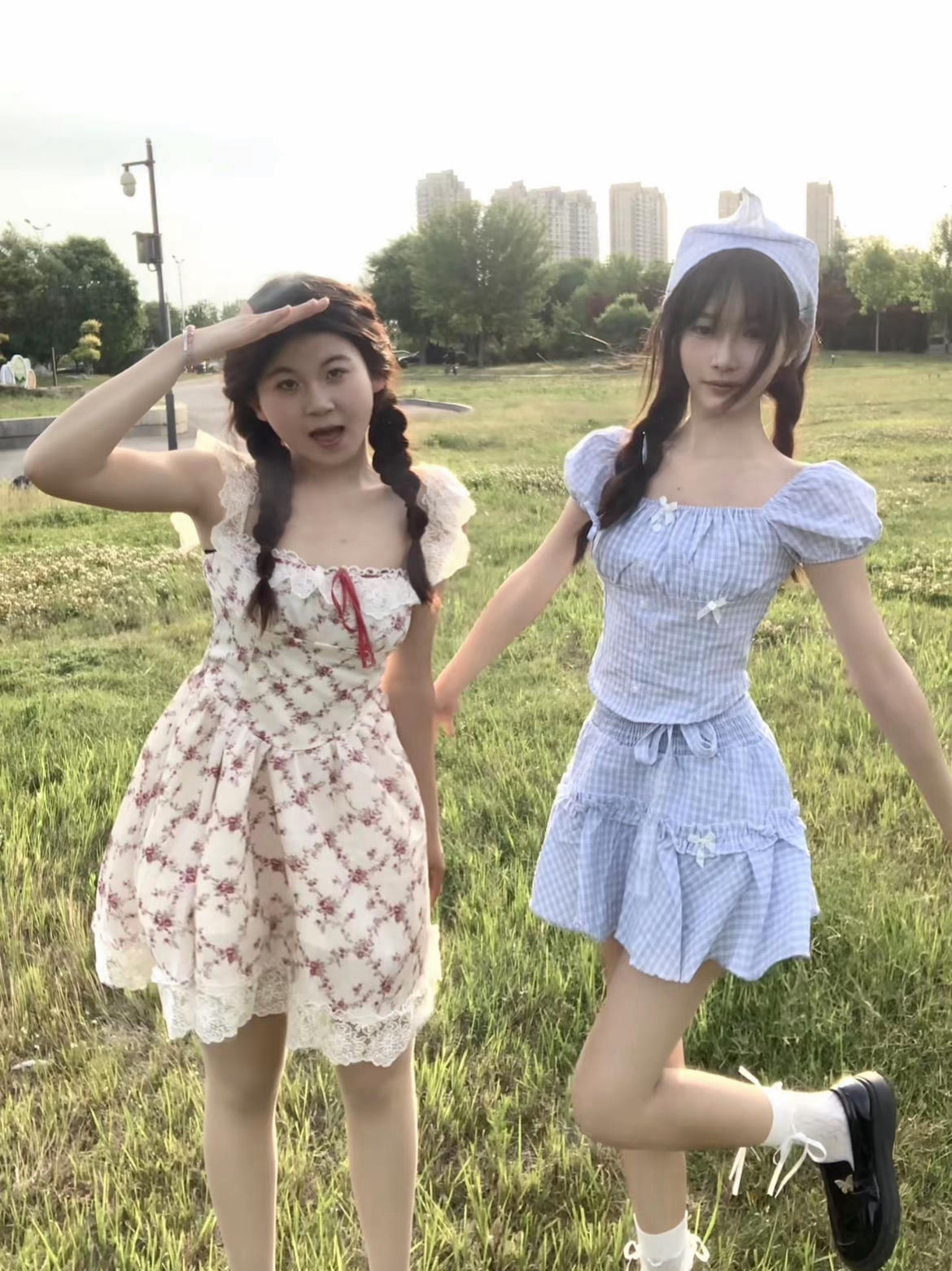 和姐妹的春日约会日!💖 法式碎花+浅蓝甜妹风,两种风格都超适合春天,#穿搭玩家激励计划 一起做春日最美闺蜜团~