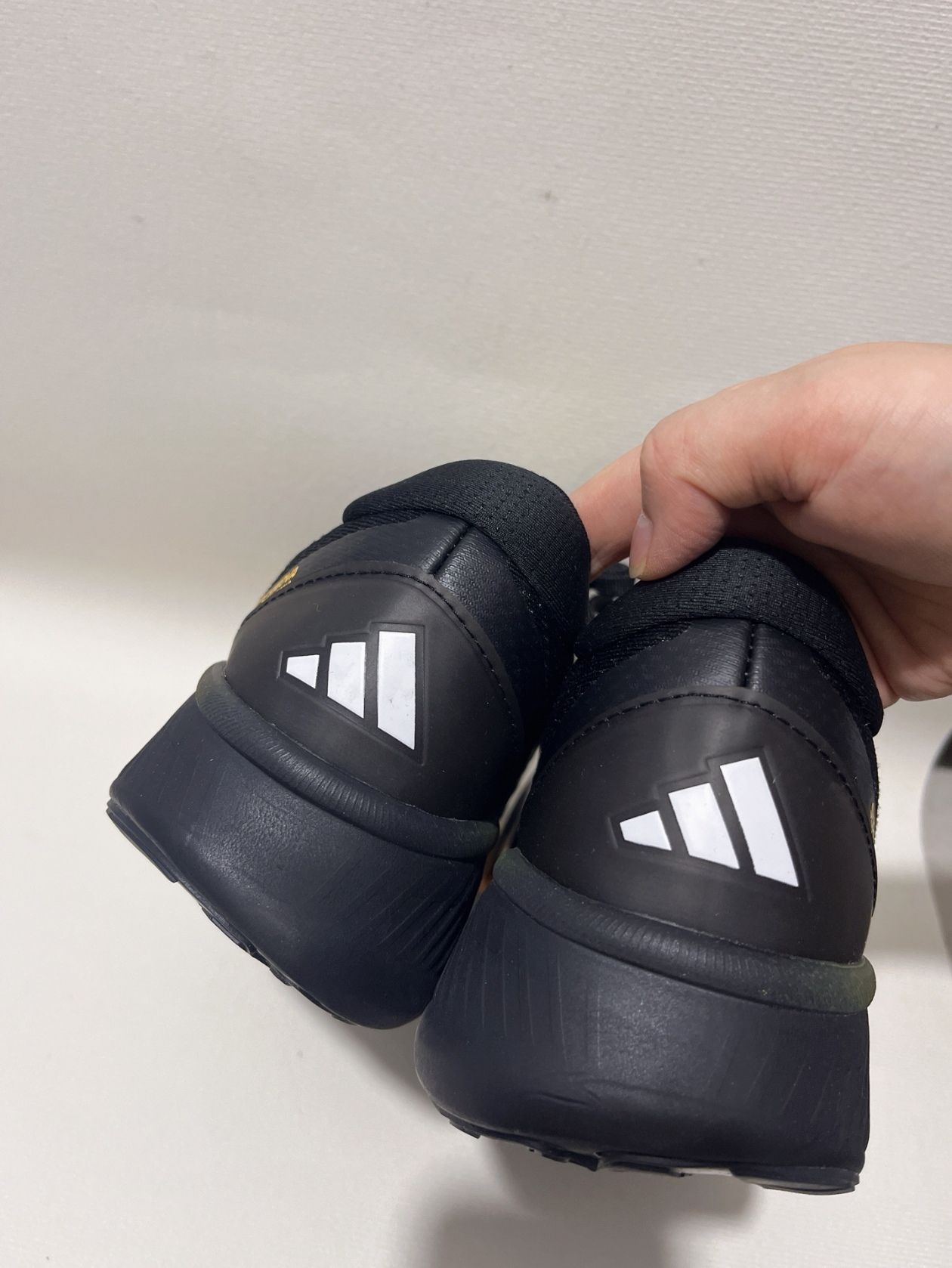 🍁这款阿迪达斯的跑鞋,外观是黑金色,颜值时尚大方。配色很好看。 🍁鞋身织物网面的,透气性很好,跑步长距离走路,都不会有焖脚的现象出现。 🍁鞋底防滑耐磨,对脚的包裹性很好,上脚很舒服。软弹适中,缓震效果也很好。 🍁尺码很标准,这款鞋还适合宽脚的人群穿。鞋子整体轻盈,穿它跑步,通勤,都是很不错的选择。