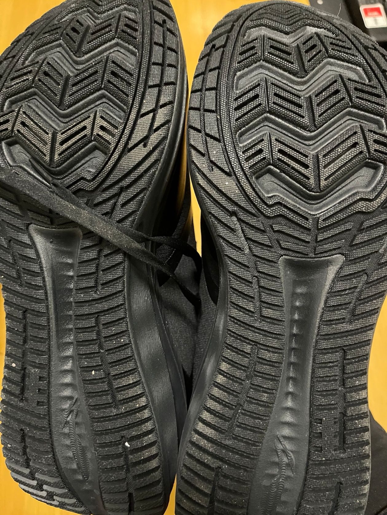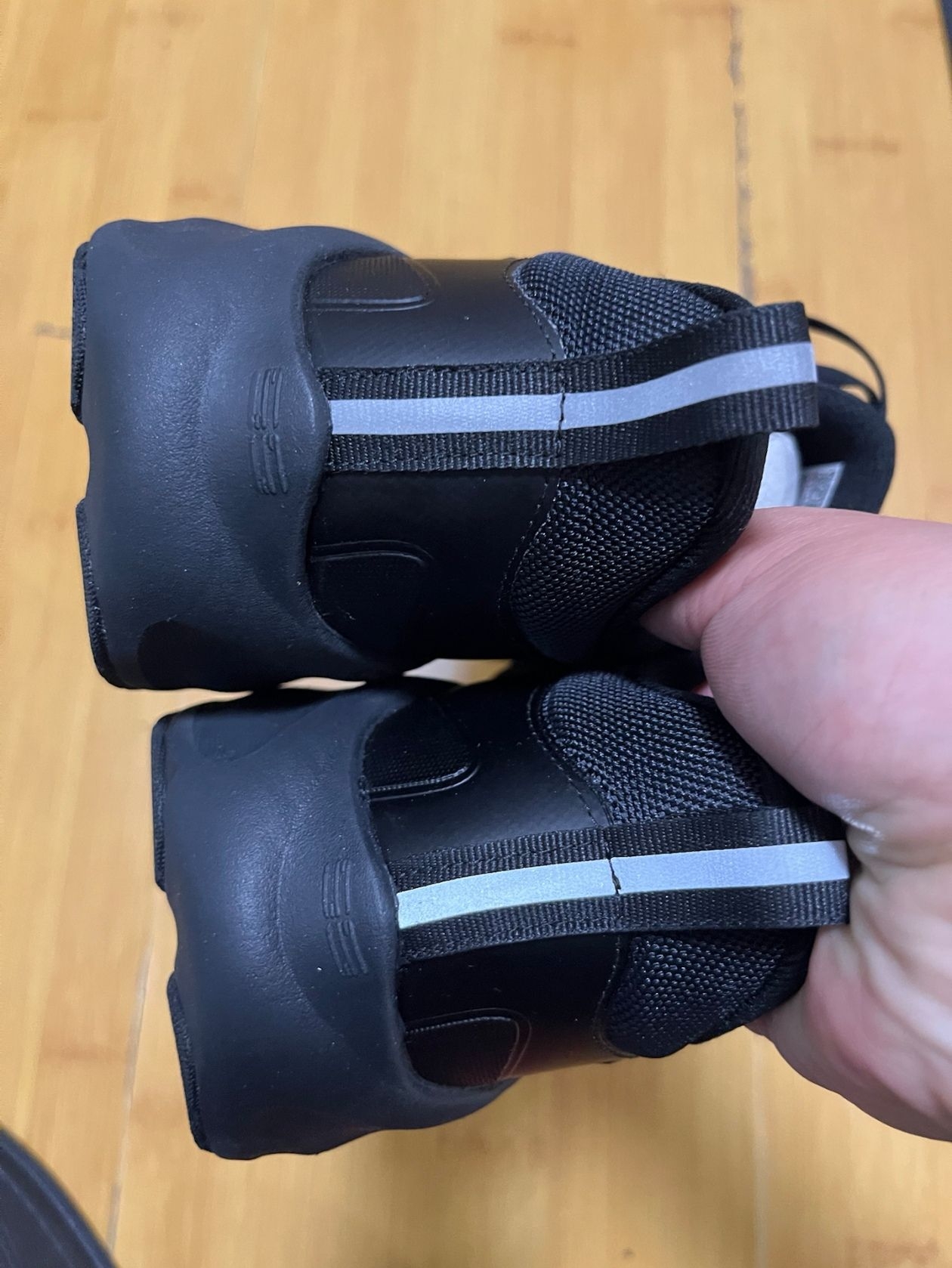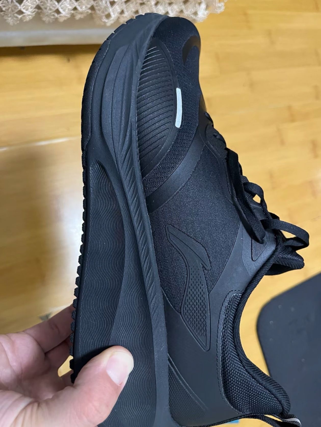 橡胶大底深深的纹路防滑耐磨,厚厚的中底增高缓震,鞋子黑色百搭耐脏,防水感觉一般。后跟反光条给力。显高帅气,慢跑通勤非常适合。尺码标准,重量也不重。