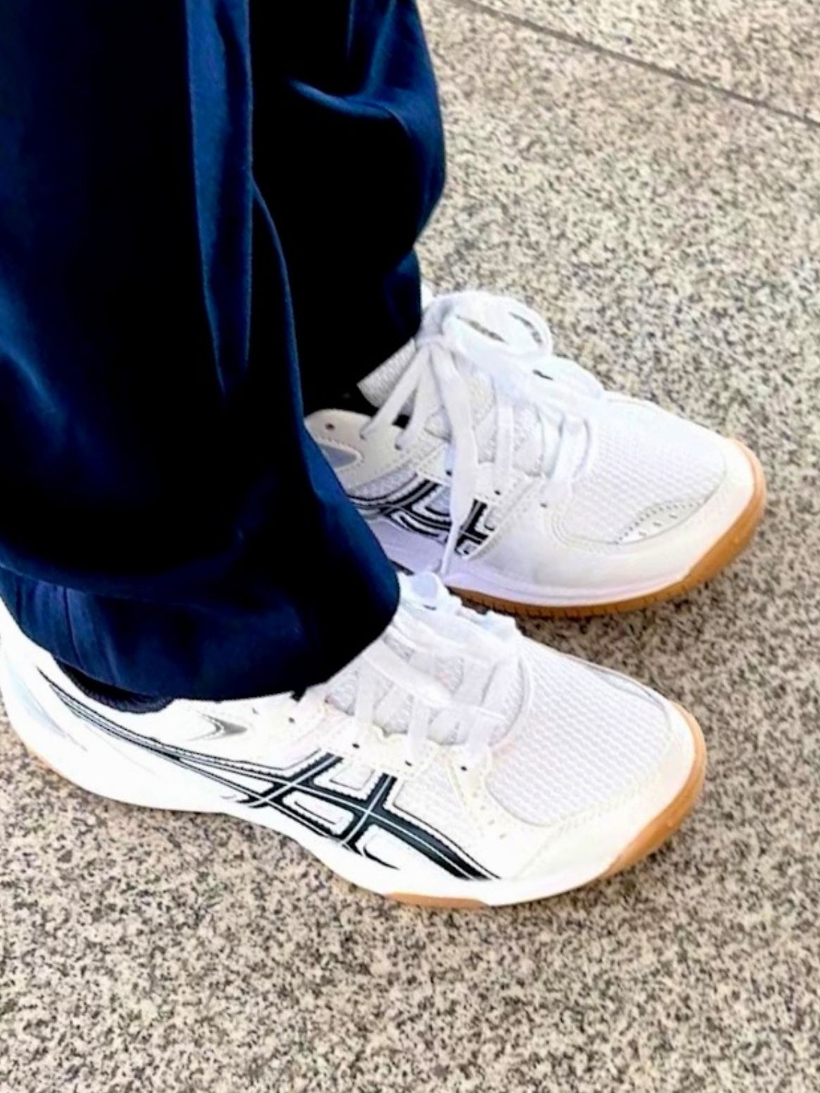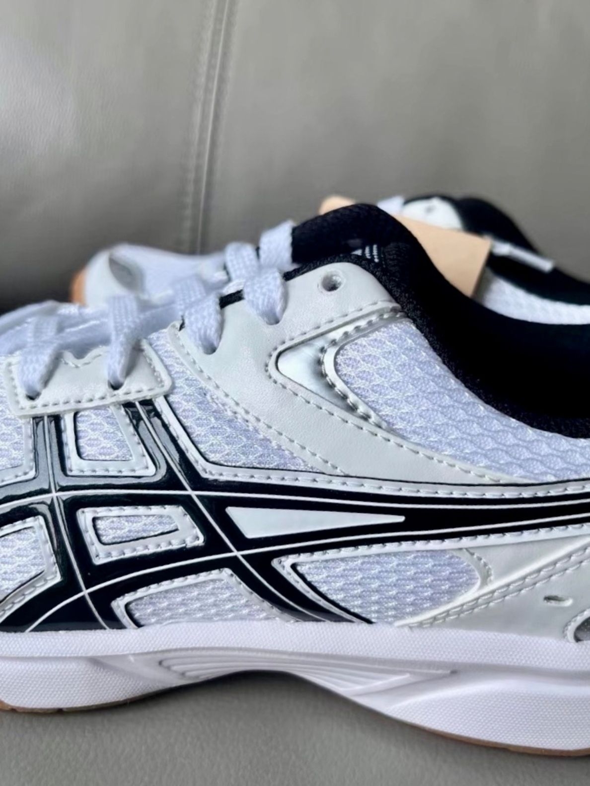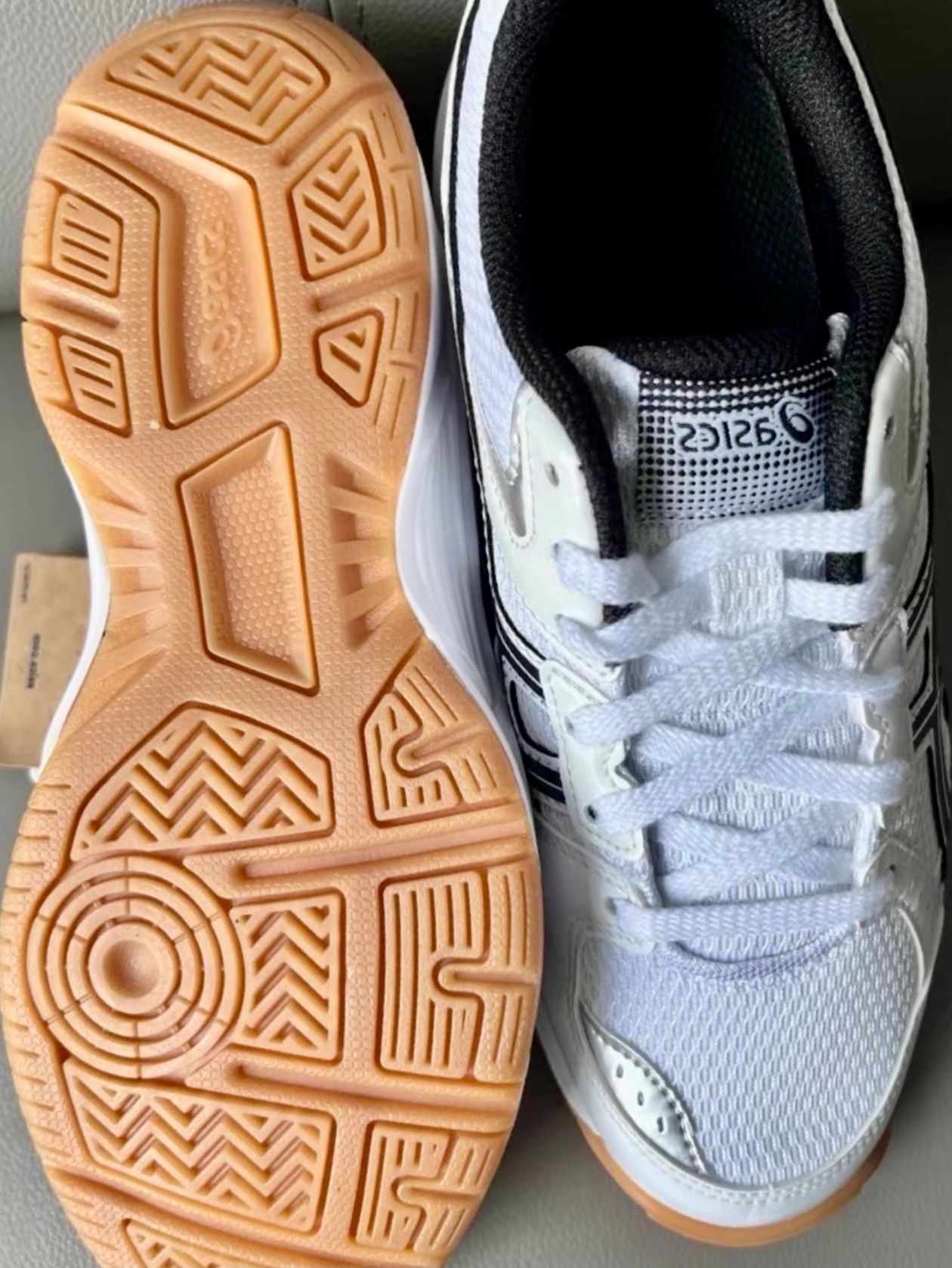 这双ASICS River CS白黑色穿了一个月,打球通勤两穿。最满意它的防滑,急停转身超稳,脚底支撑也够,不酸。但新鞋后跟需要磨合两三回,透气性一般,连续打两场会觉得有点闷。鞋面网布偏薄,