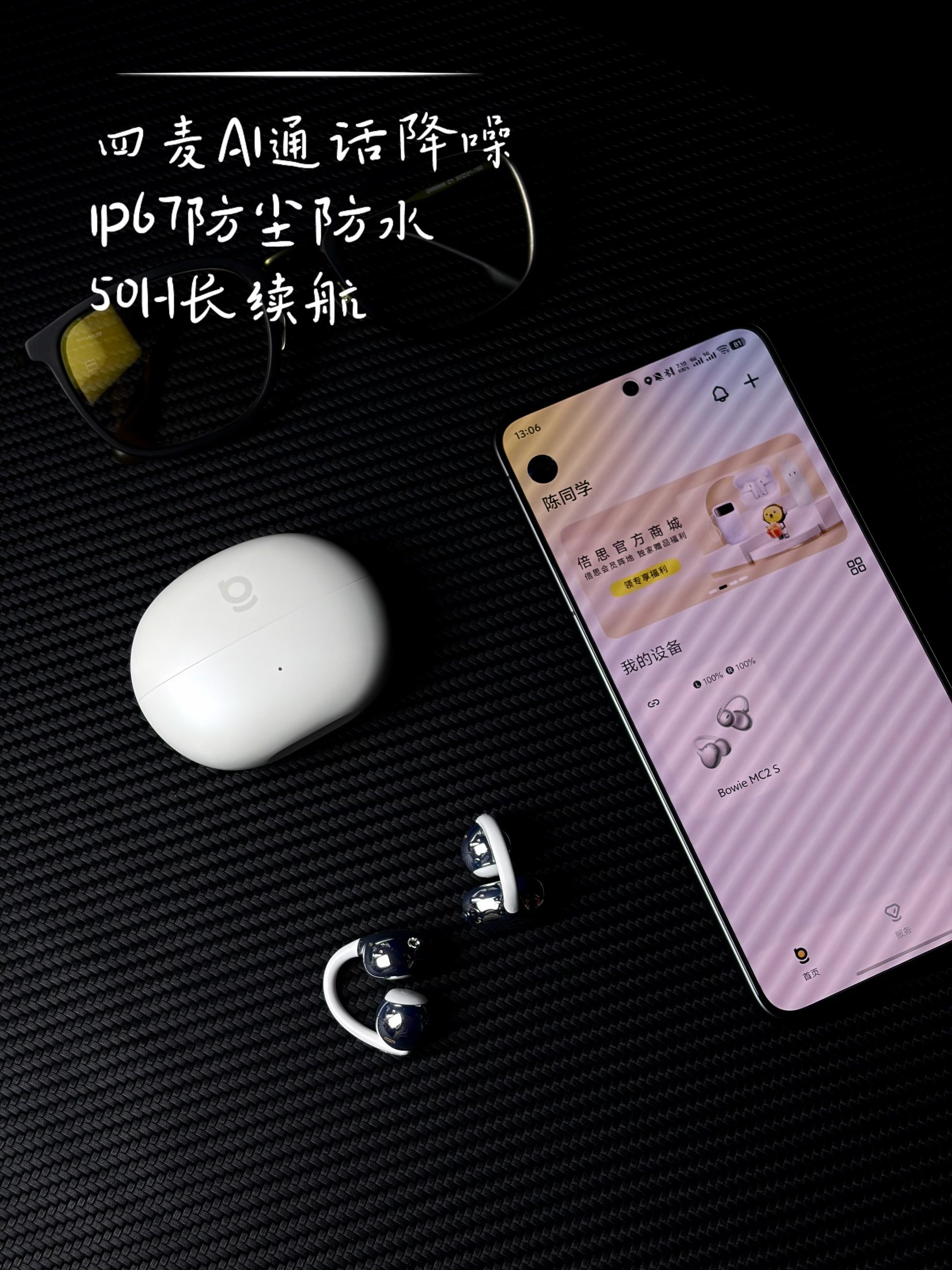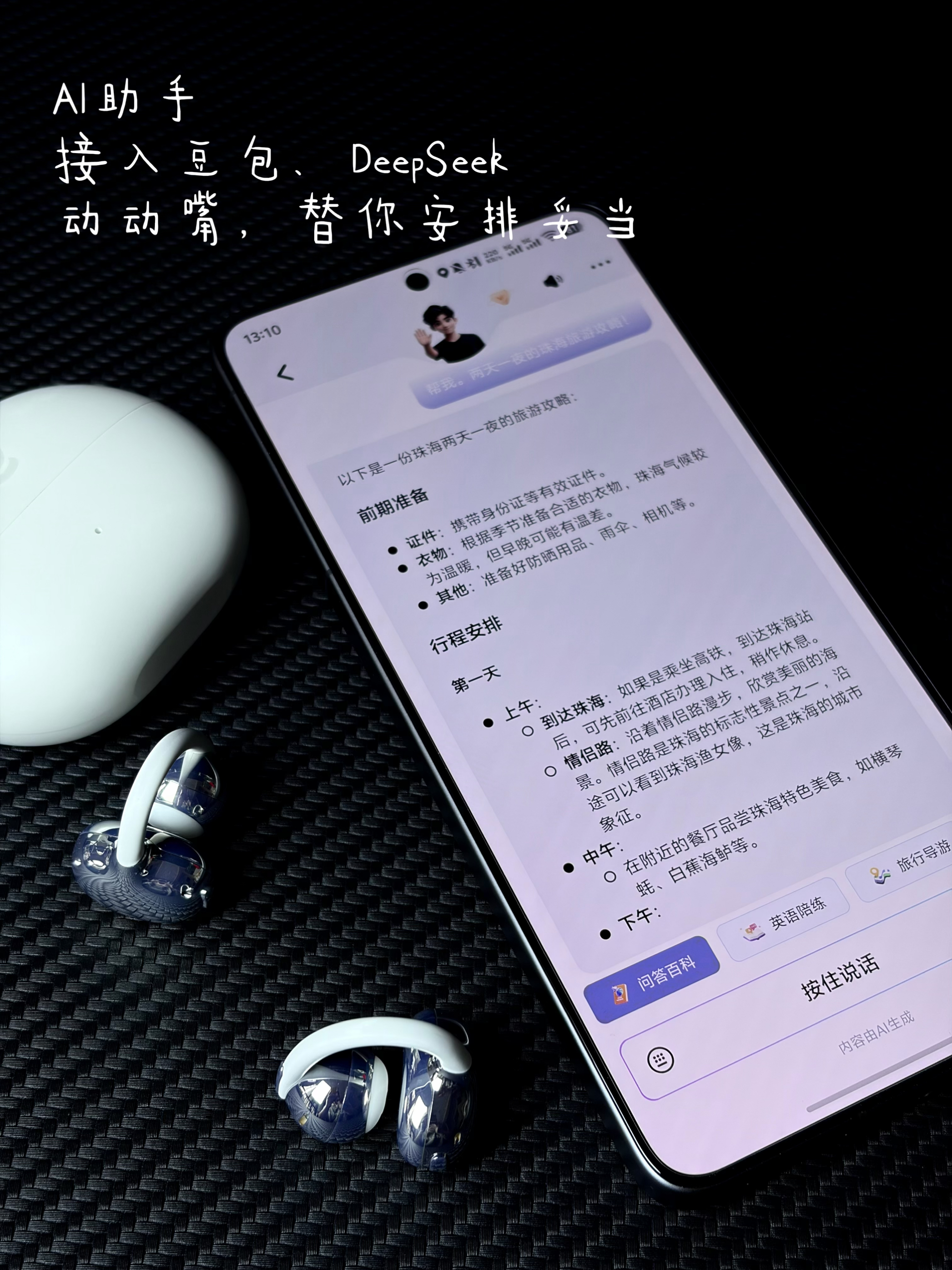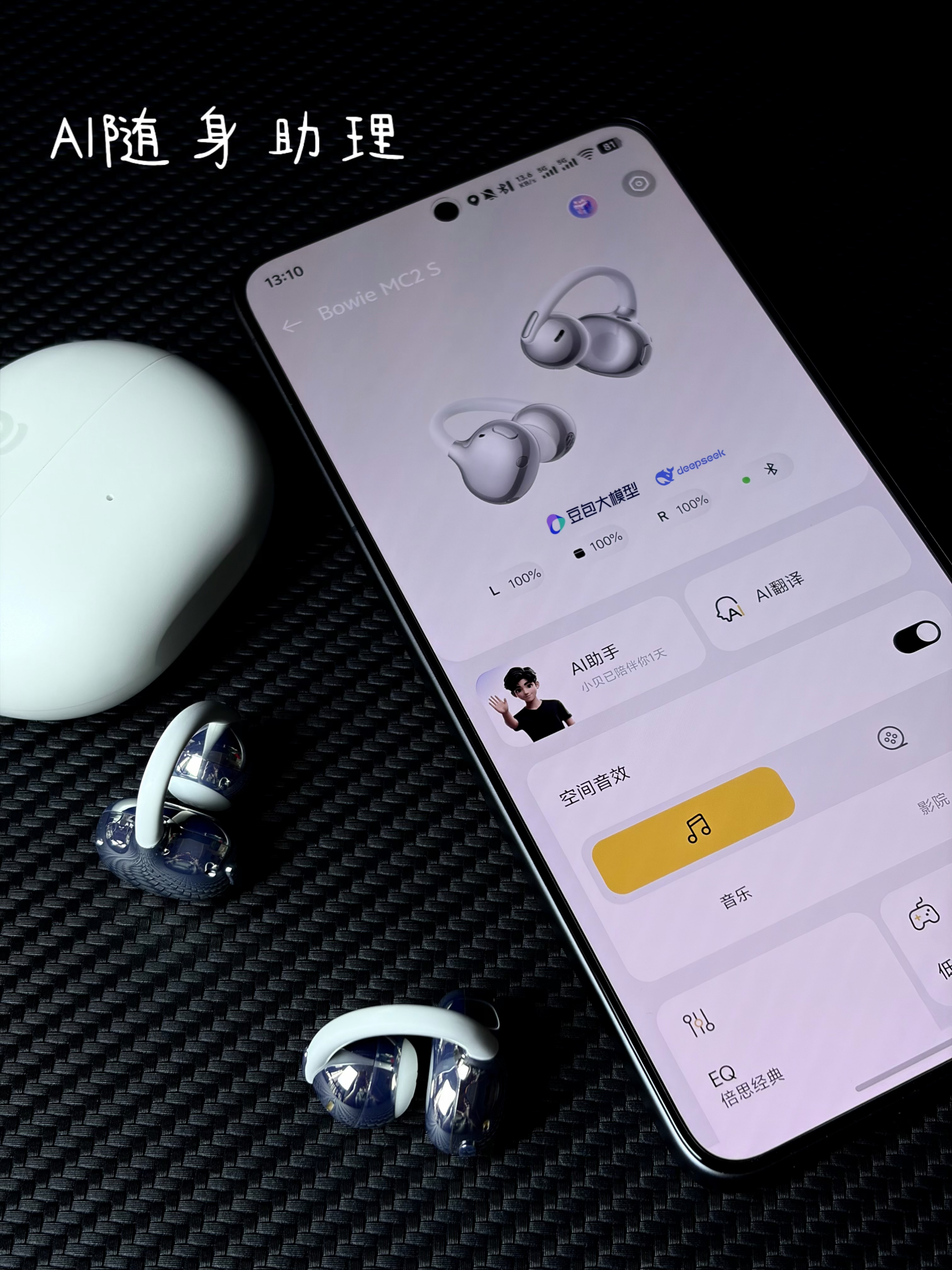 真没想到开放式耳机还能加入气囊设计,这才是「真」无感。耳夹式耳机避免了入耳的胀痛,但有些人会觉得带久了夹的耳甲疼,那倍思MCS 2的云朵气囊Air 2.0就彻底将这问题解决了👍 有一说一,开放式耳机的低音效果中规中矩。但是,这副耳机的人声真的很有亮点,层次分明,解析力相当惊人,无论是听歌、看剧,人声饱满立体,声声入耳。通话也有四麦AI降噪,即使在地铁上也清晰。 更让我惊讶的是,它还接入了AI大...