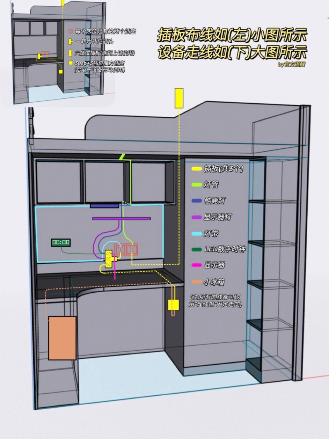 《🤹🏻♀️变个魔术-线路消失术✨》 🌷我们宿舍每个床位原本只有2个插座 (也就是4个插位) 经过我的一番改造 现在一共有21个插位🤭 但为何我的桌面看不到一根线⁉️ 姐妹们快去看看图3⃣️‼️ 我用Shapr 3D按照我宿舍的尺寸建了个模 然后用Goodnotes简单画了下走线示意图 这样是不是就更容易理解啦😆 🌷实用工具: • 转换插头: 适合插座少/插位不够用的情况 • 插板: zu...