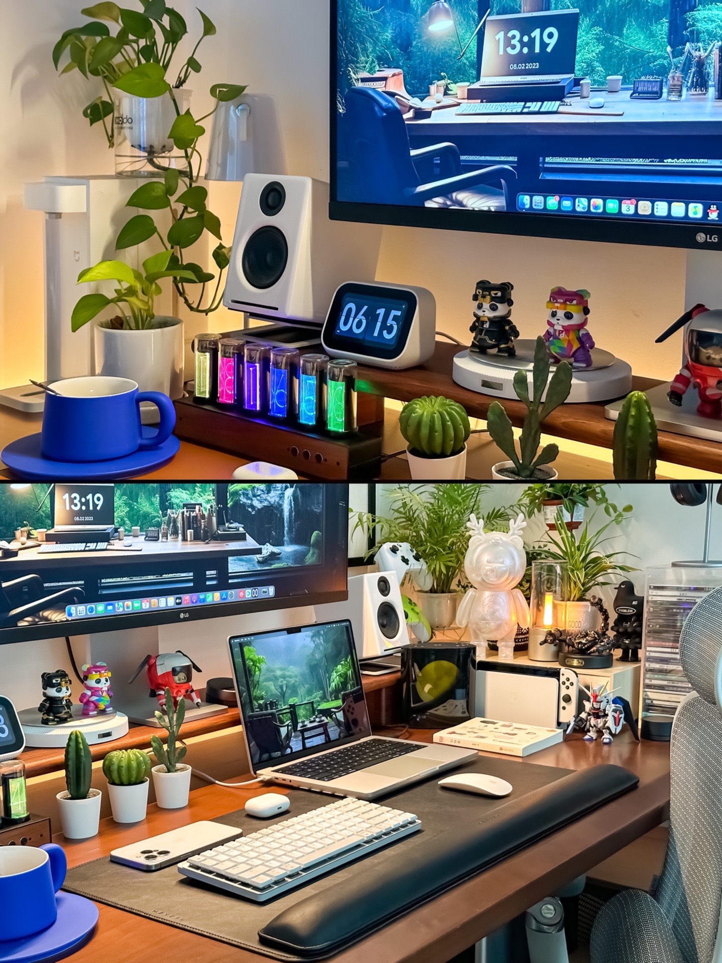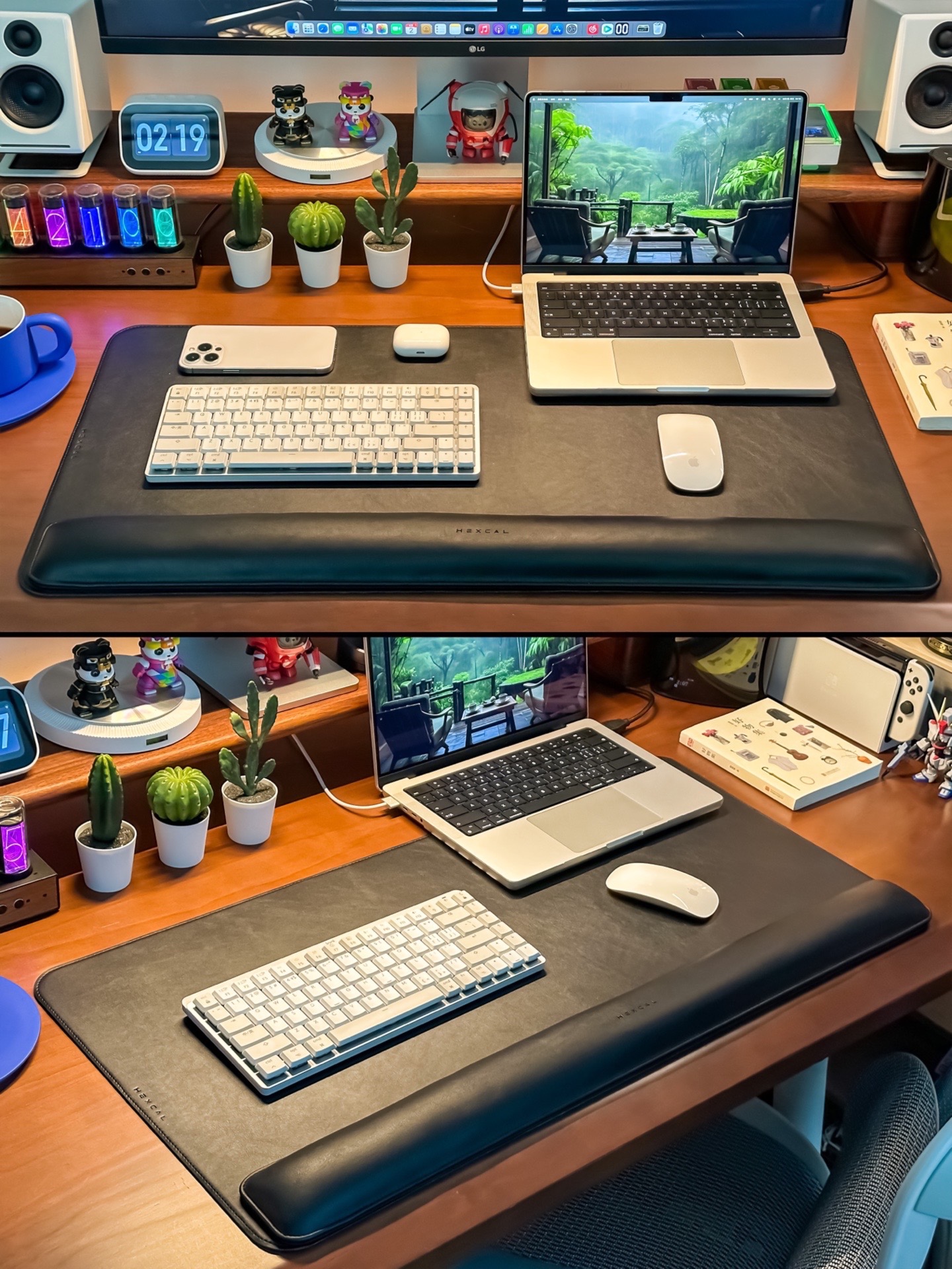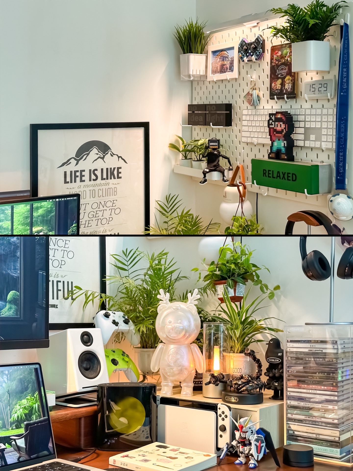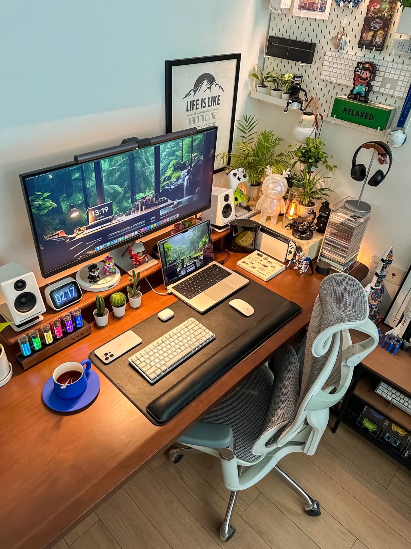 桌搭,这是一种神奇的艺术!细心的我们,通过无尽的想象,将单调的书桌变成了一副绝美的画作!这就是我的生活起点,在这个小小的空间里,我可以尽情地发挥自己的想象力。 我选择了一张舒适的人体工程椅子,避免了久坐带来的腰酸背痛。然后在桌面上放了一些我喜欢的装饰品,比如小小的植物和手办摆件。这些小小的装饰品让我的书桌变得更有生气和趣味。我还放了装饰画在墙上,这样能让墙面更加丰富。 我在桌面上放置了一张Hexc...