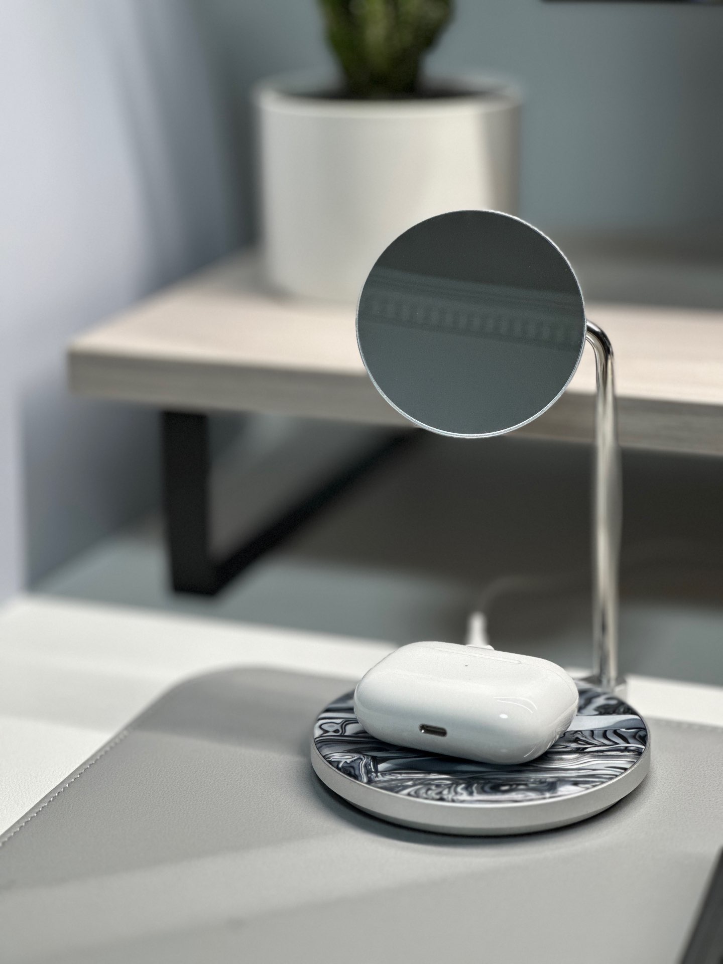 过完年了!给桌面添了个颜值爆表的磁吸无线充电支架!不管是单独放,还是和桌面搭配在一起都非常的好看! 如图!一直以来我的桌面配饰在好用的基础上对颜值的要求都非常高,及时再好用的东西不好看我都会犹豫再三,这个东西放在我的桌面上到底搭不搭。看到之个无线充电支架颜值后看了一眼产品介绍,毫不犹豫马上入手了,兼容我的14pro,最大10w充电,底下还能同时充耳机,满足了我的在桌面上的日常需求。 外...