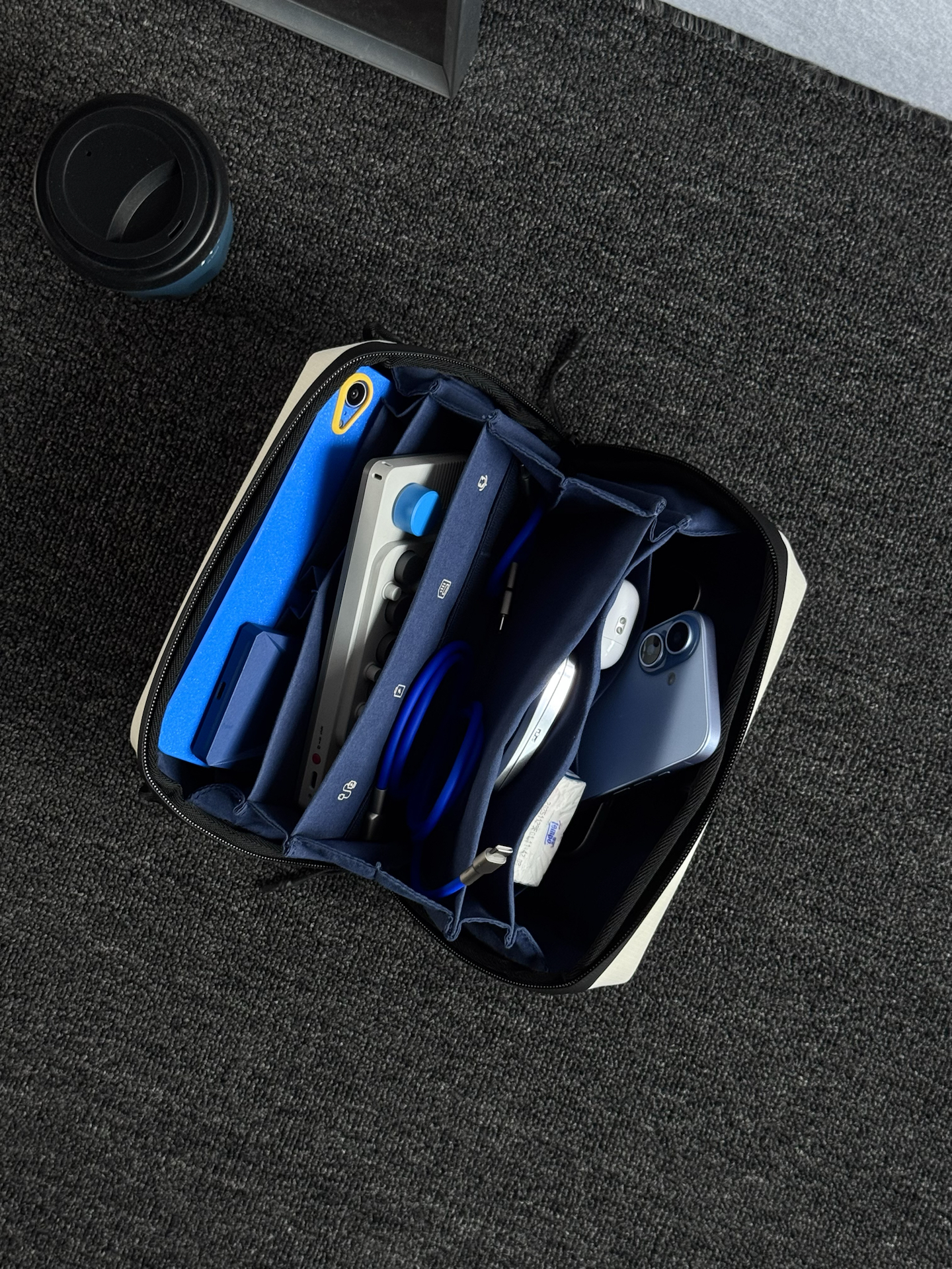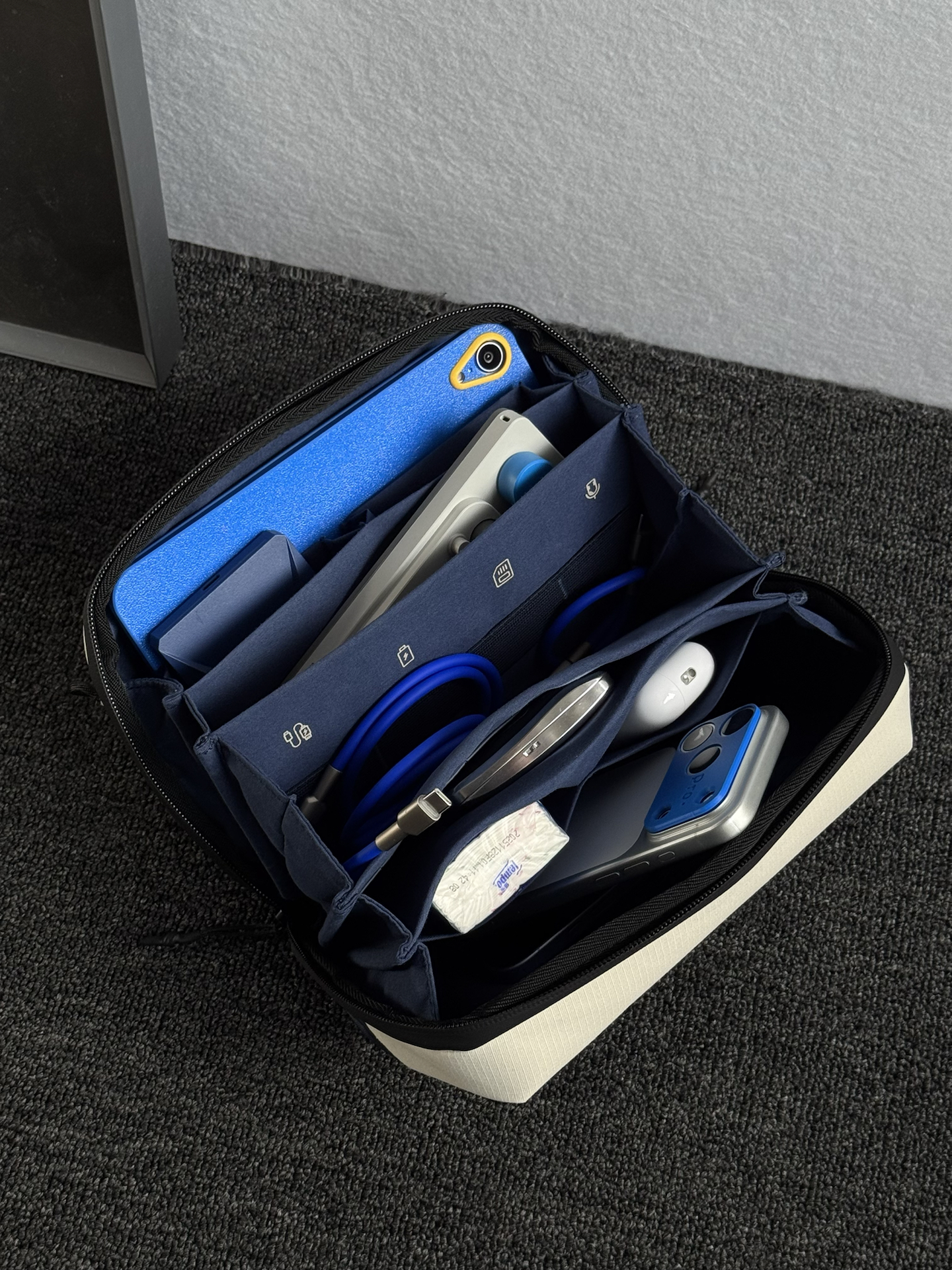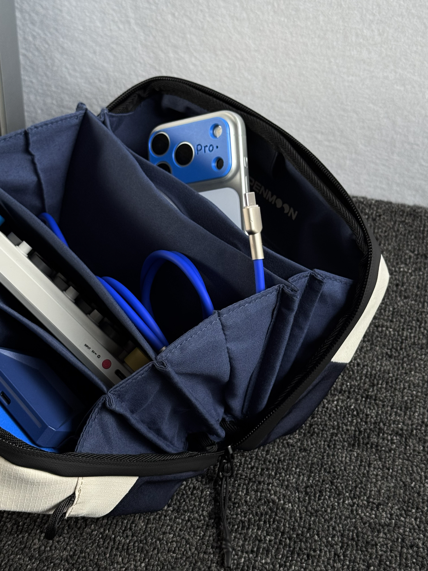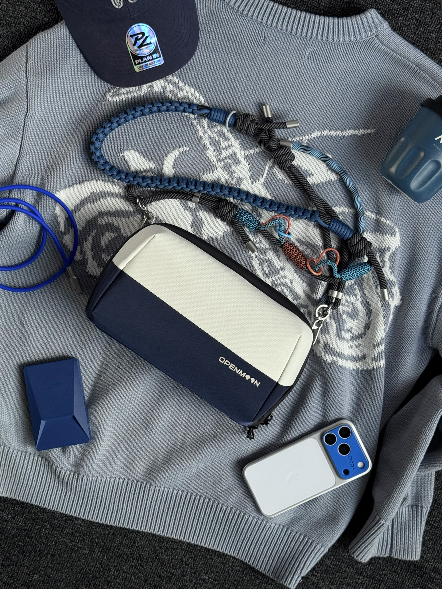 - 元宵过后,也是陆陆续续正式复工了,广州都可以开始穿短袖了,夏天很快就到了。今天来一组蓝色系翻包,提前入夏 - 日常通勤,需要随身带一些数码装备,就选了这款数码收纳包。大开口设计,夹层是真的多,有序收纳,随用随取 蓝白拼接撞色很清新🔵⚪️很有夏天的感觉。搭配挂绳,可单肩可斜挎,上身还是挺松弛的 - 今日份翻包EDC清单🧾 openmoon数码收纳包|编织挂绳 iPhone 17pro|iPh...