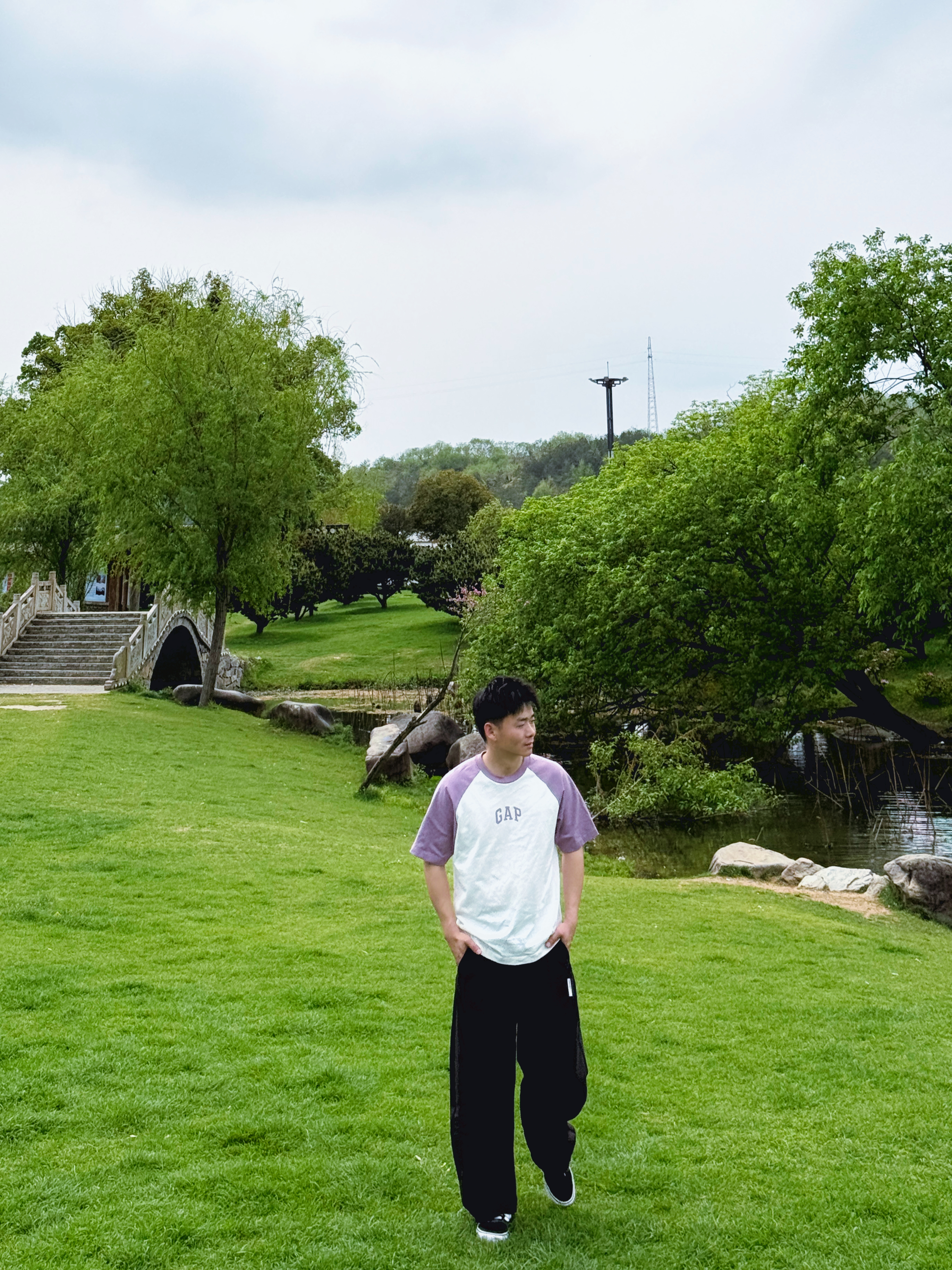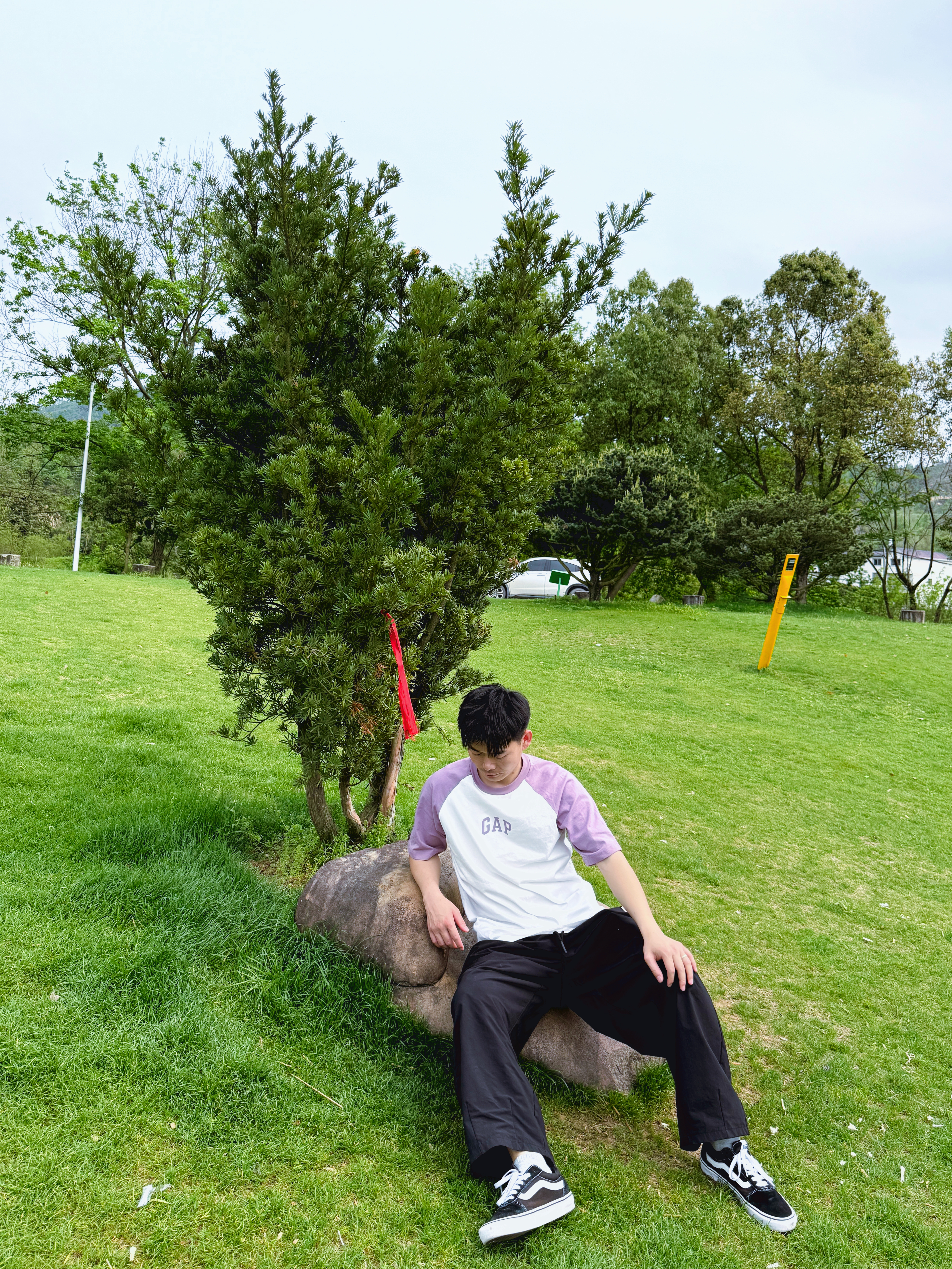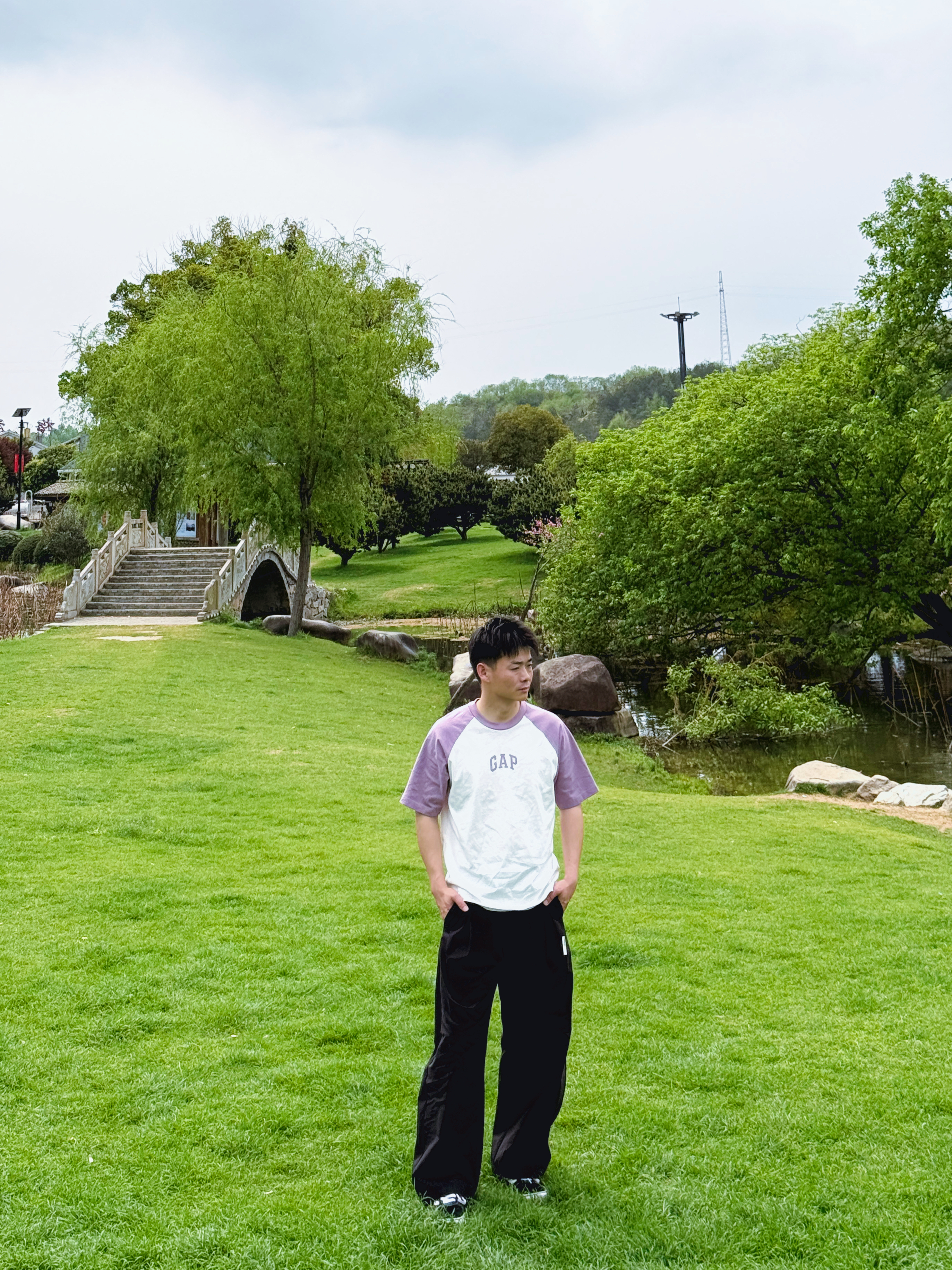 谁懂啊!这套春日穿搭真的太有少年感了!GAP插肩袖短袖是点睛之笔,温柔紫+干净白的撞色,自带清新滤镜,搭配宽松阔腿黑裤,慵懒又随性。在绿意盎然的公园里,整套穿搭和春日氛围完美适配,简约却不普通,把日常穿搭穿出专属特色,轻松拿捏松弛感少年气🌿