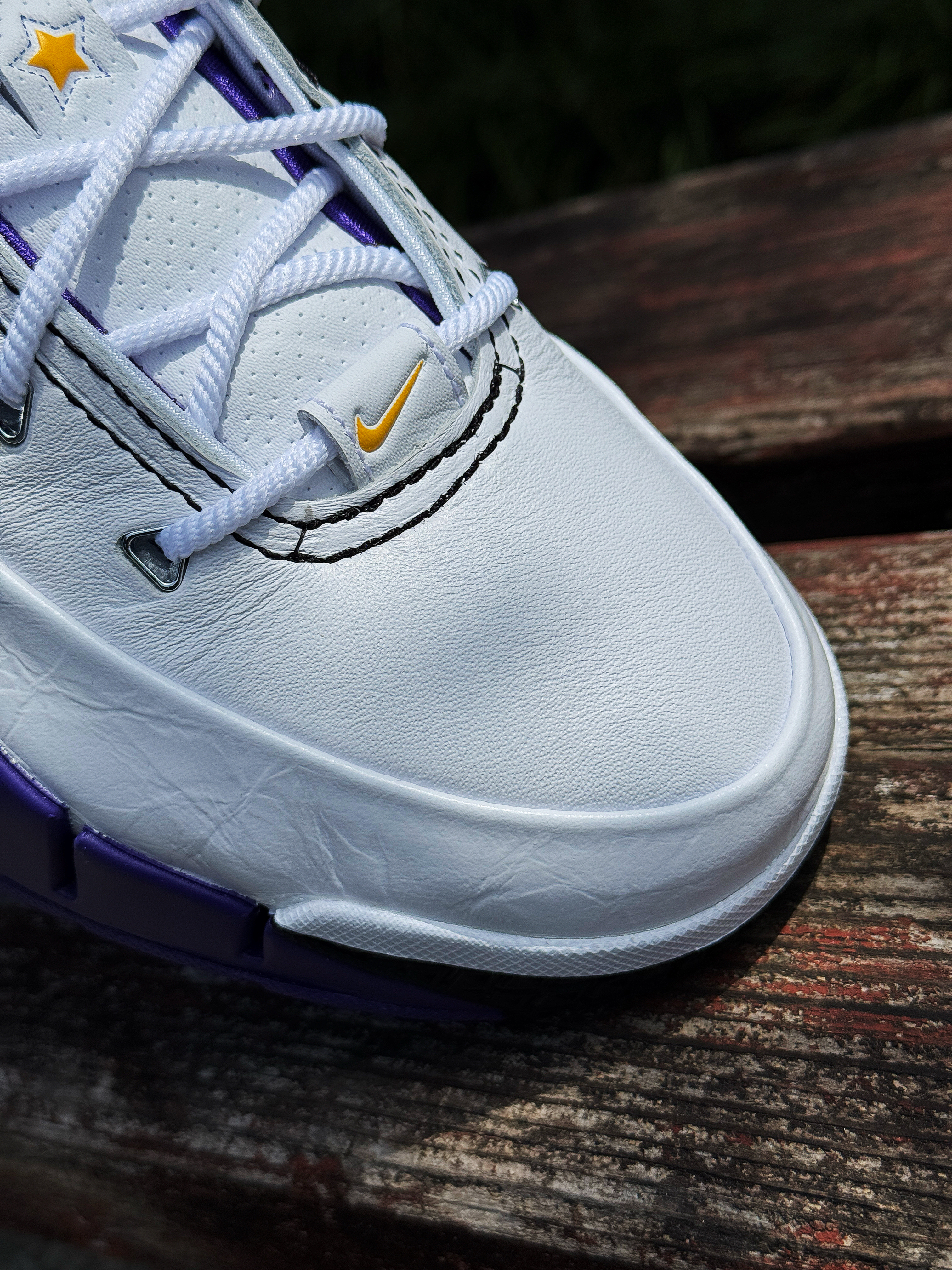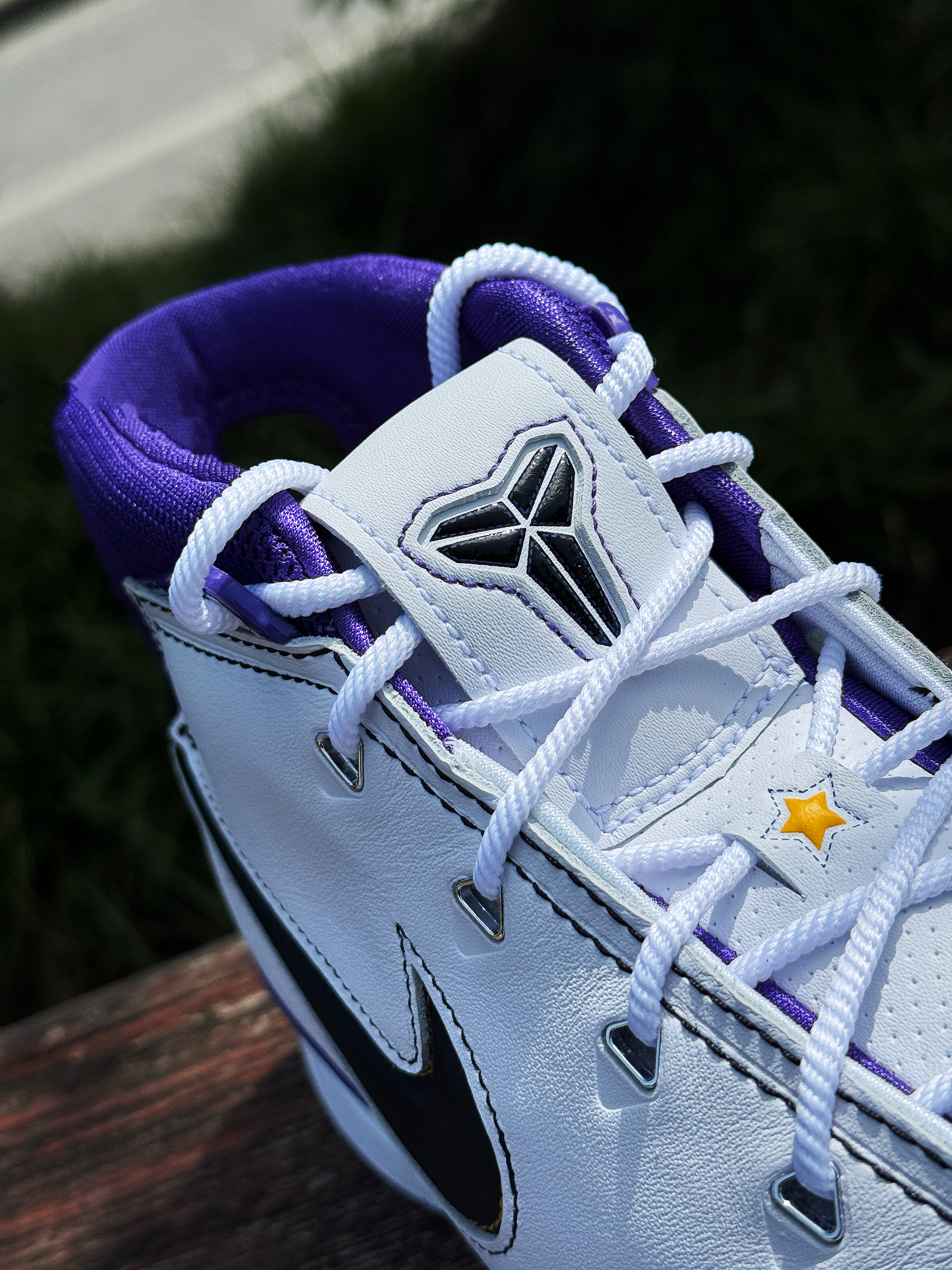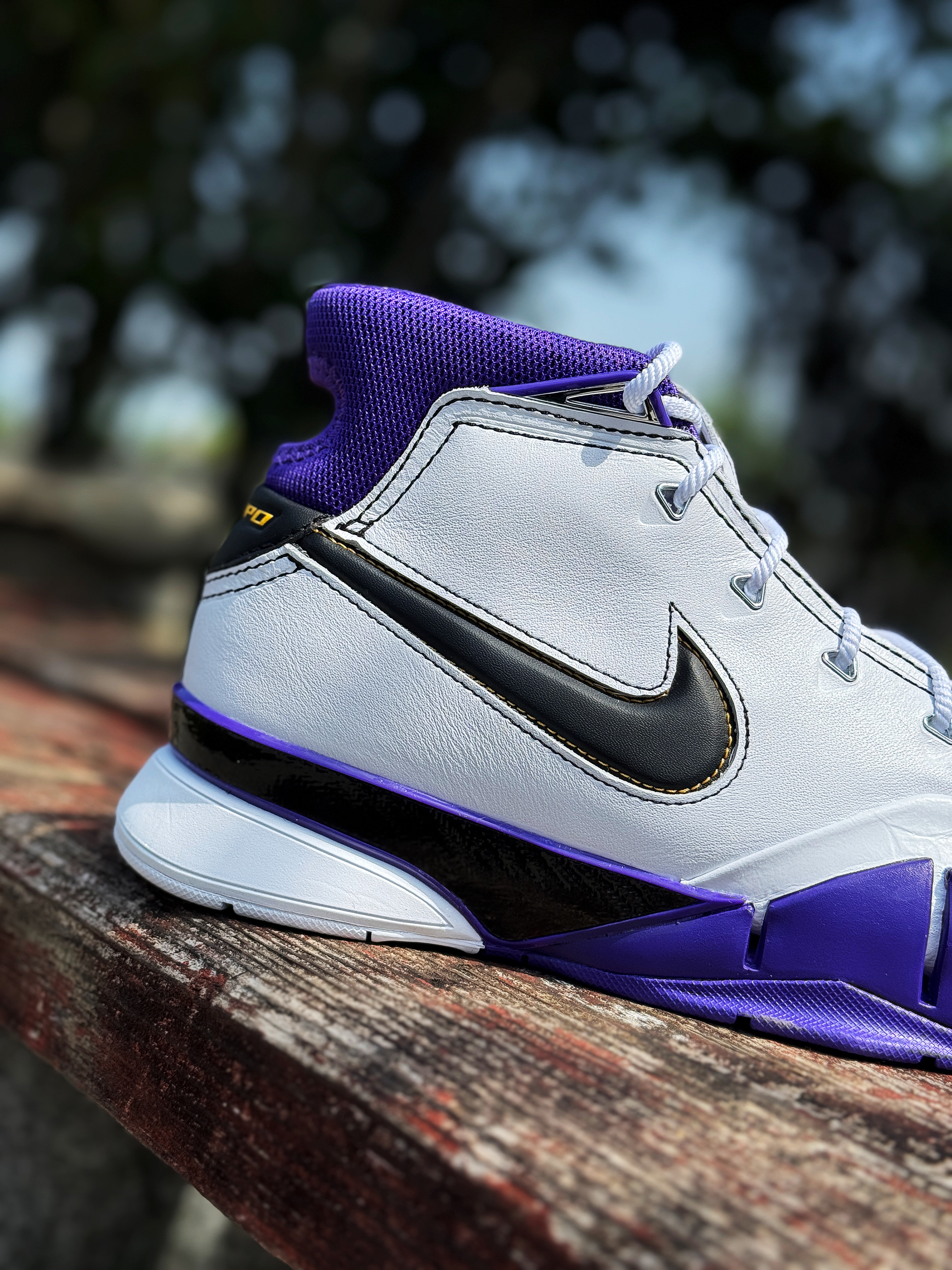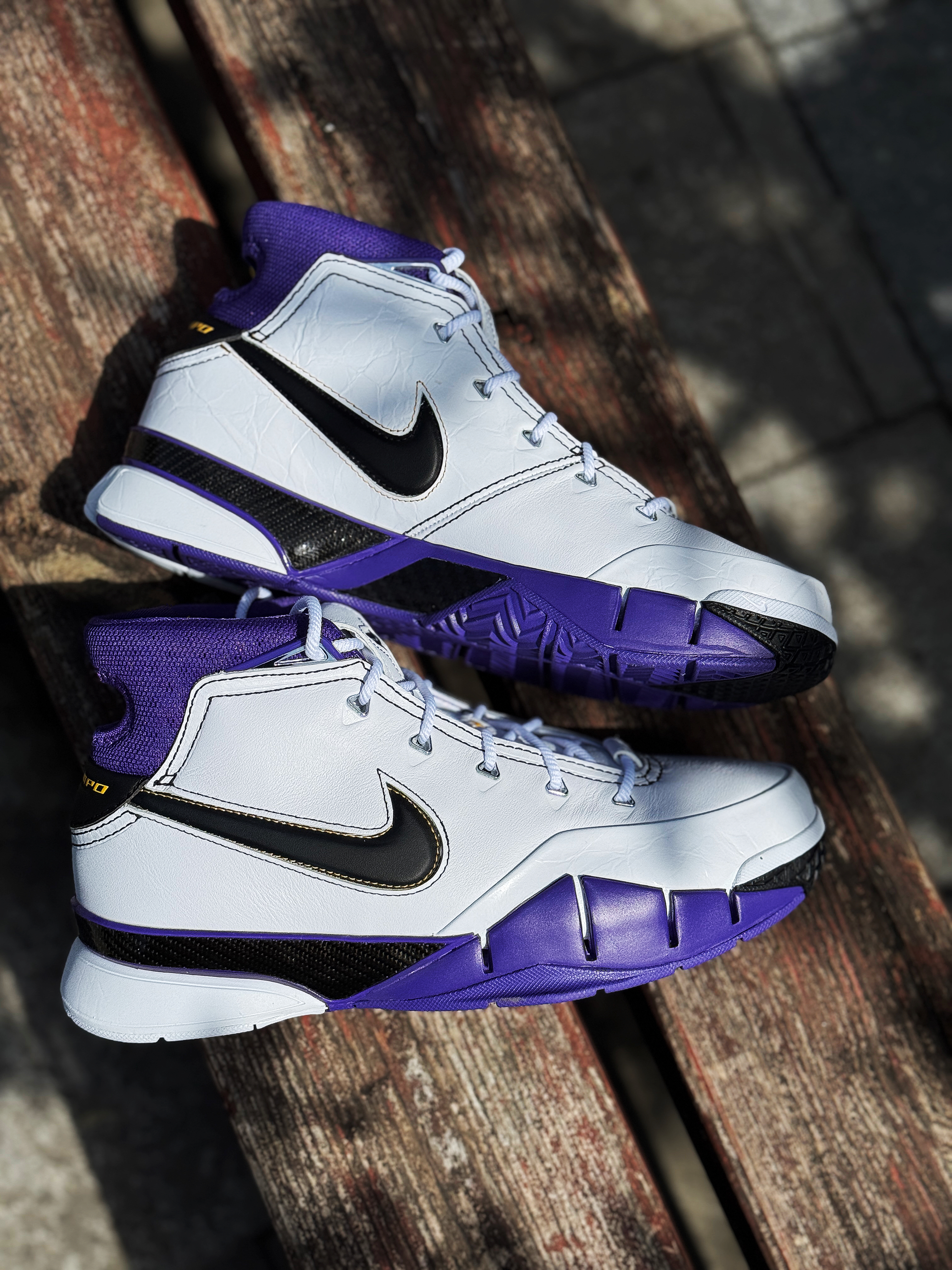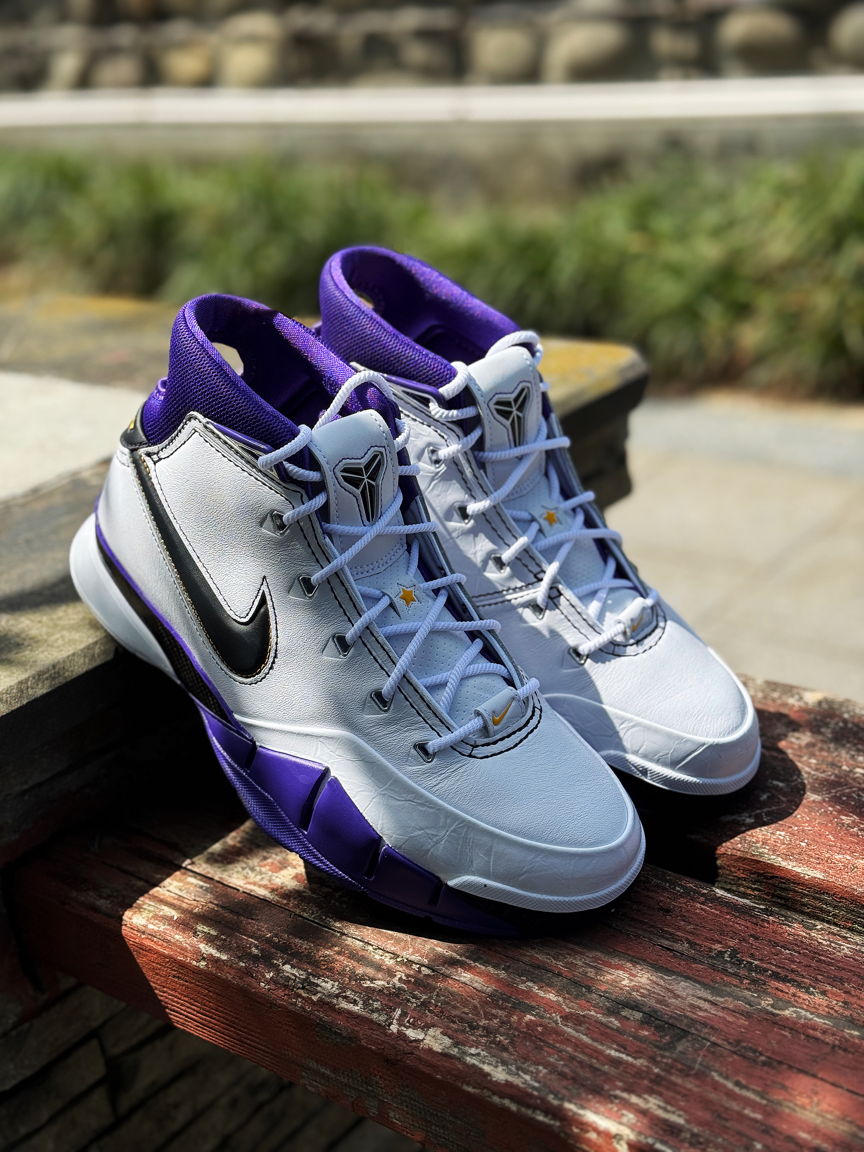 记不得这是第几双科比球鞋了!但对kobe 1的感觉一直很好 今年再次入手这双81分配色 心中依然激动! 白紫搭配颜值还是不错的 已经很接近元年的复刻了!鞋舌的科比个人Logo 标识性的镂空后跟!这一刻情怀和记忆都回来了! 鞋子上脚虽然还是有点空的感觉 但放到现在依然是一双能实战的球鞋!现在价格还是不错 科比球迷或是喜欢老鞋的玩家还是值得入手的 挺有意义的一双鞋!