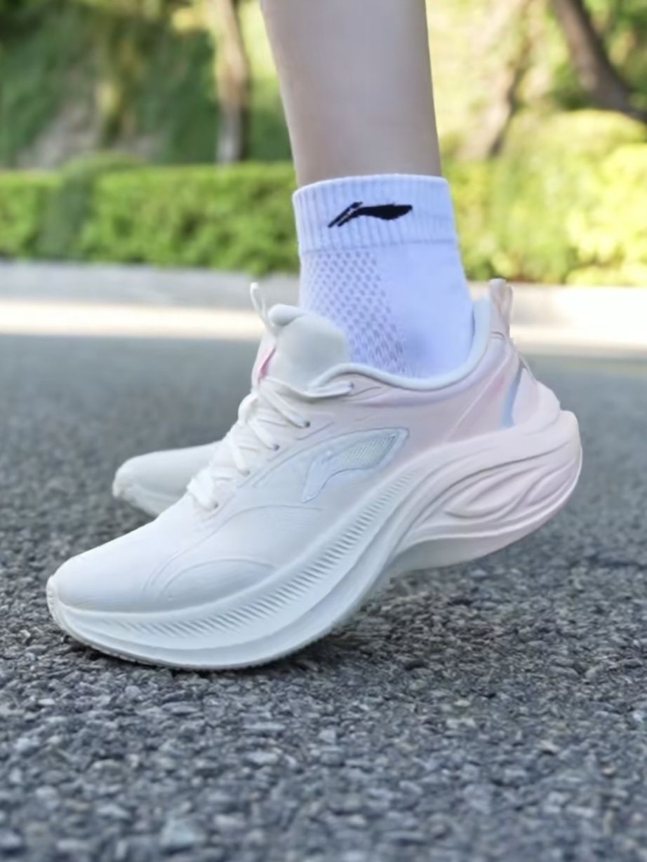 安踏飞驰象牙白配淡蓝色的配色,颜值这块真的太清爽了 穿上后最绝的是它的透气性,穿上完全不闷脚,通勤走一天脚都是干爽的,晨跑试了一下也很轻松,没有负担~ 对了,它还有3-4cm的厚底,悄悄增高对小个子女生真的太友好啦哈哈哈