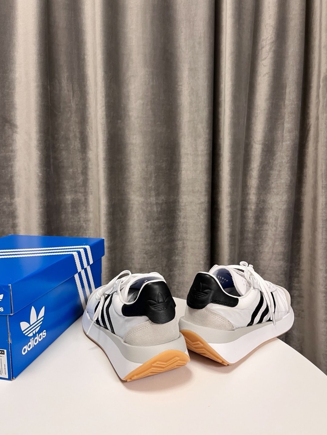 Adidas original country xlg 男女跑鞋 黑白灰 质感满满鞋跟处三叶草采用皮质面料 隐形增高4厘米 男高必备单品 拍照很出片