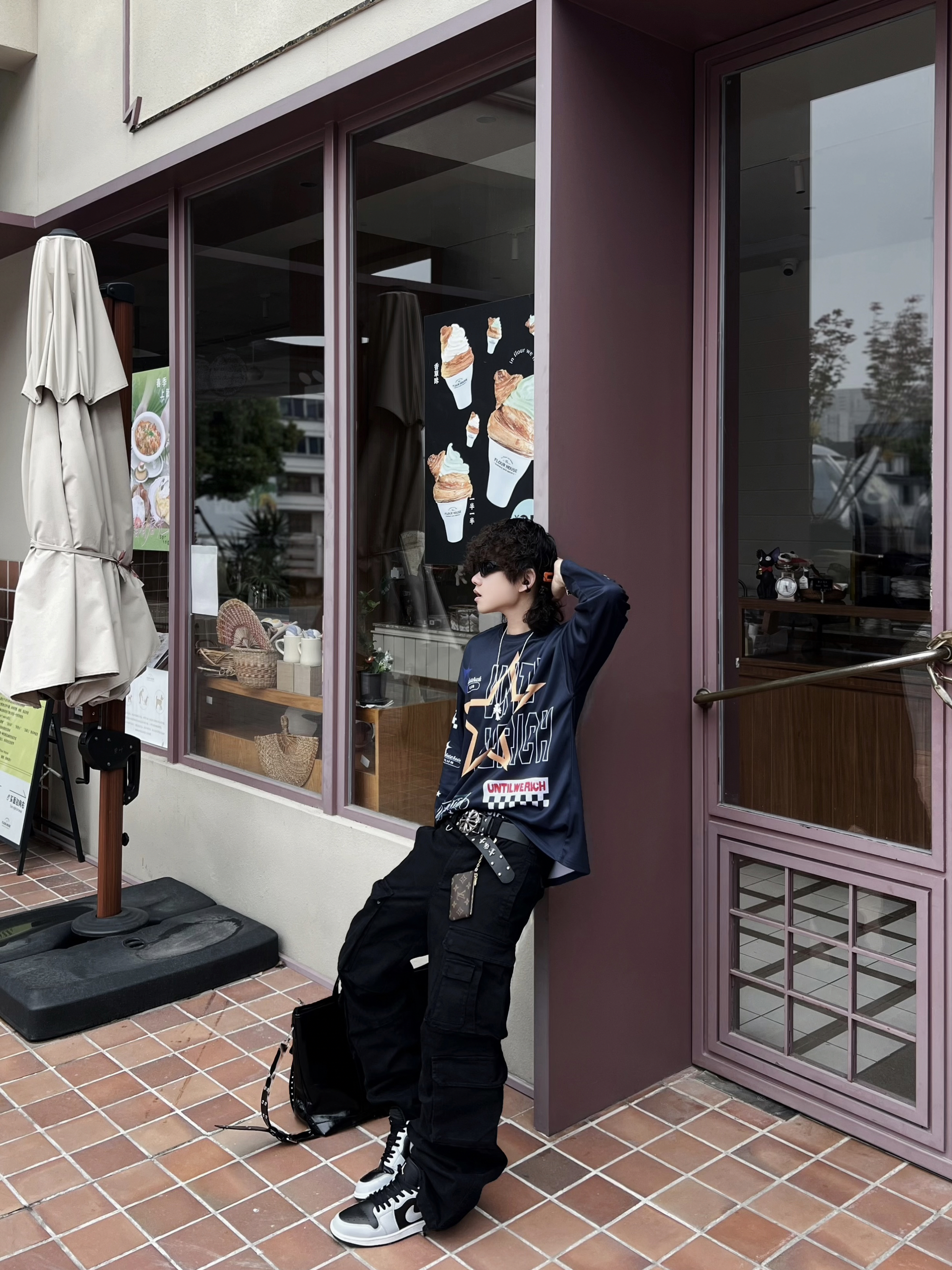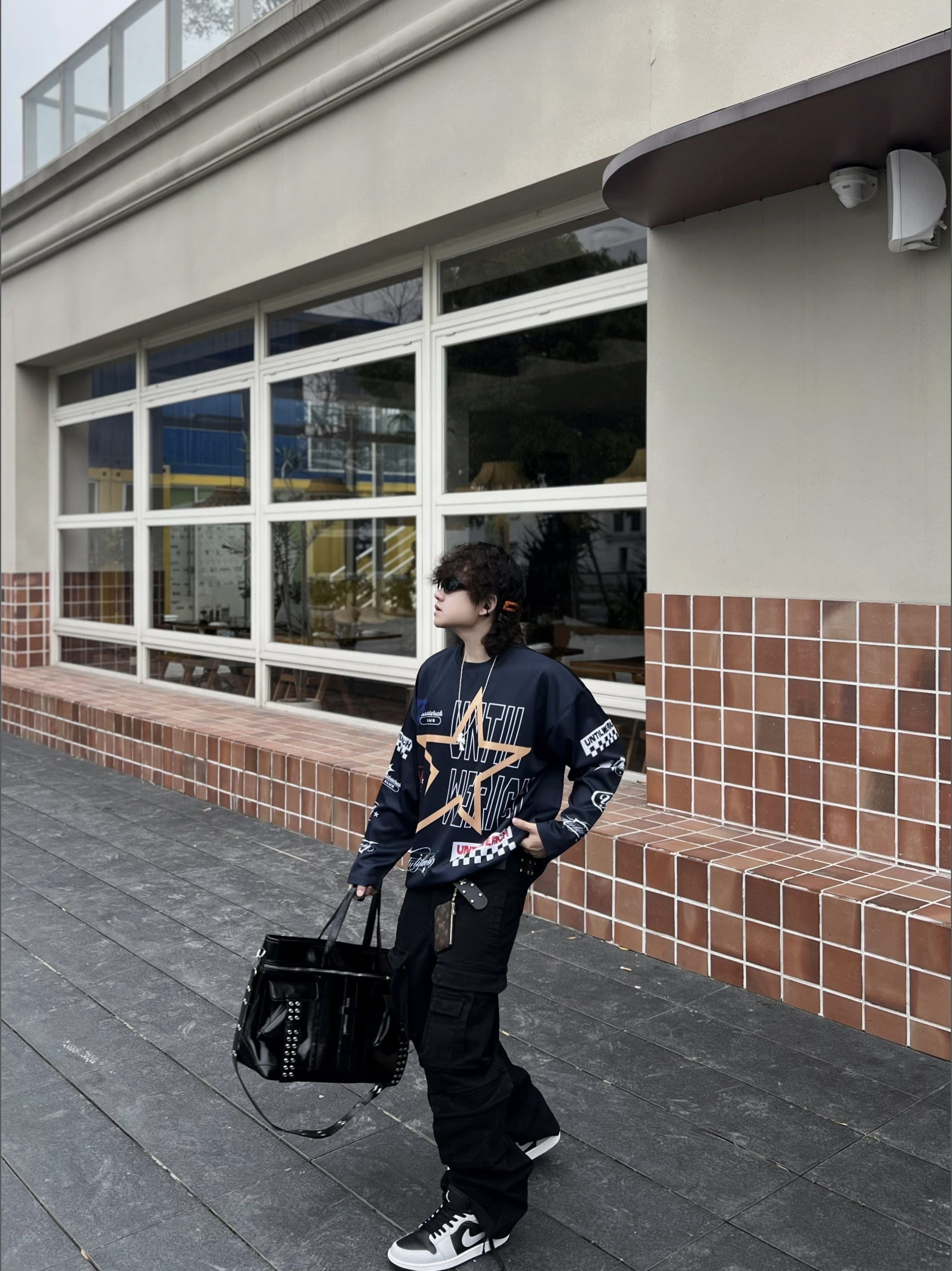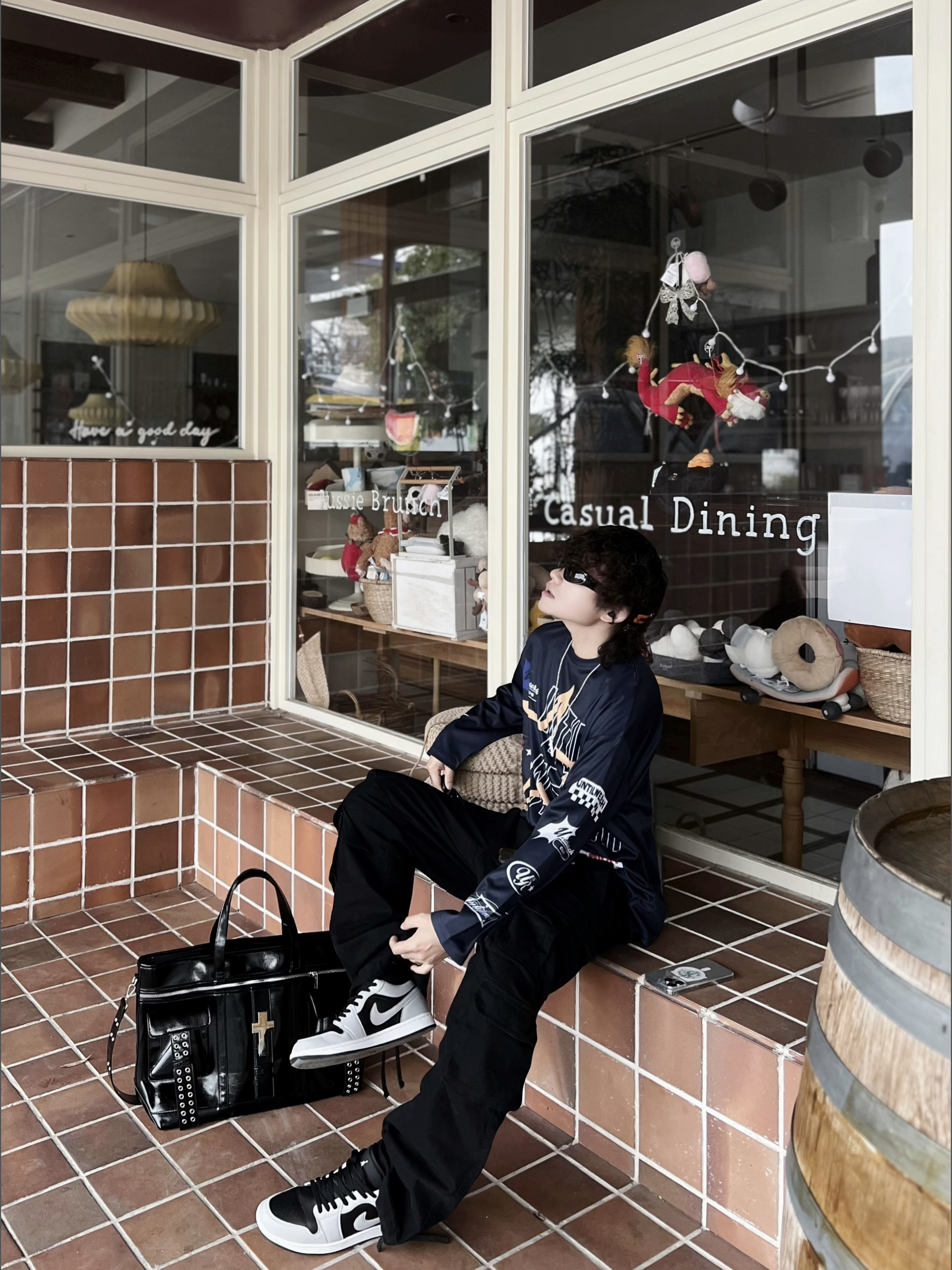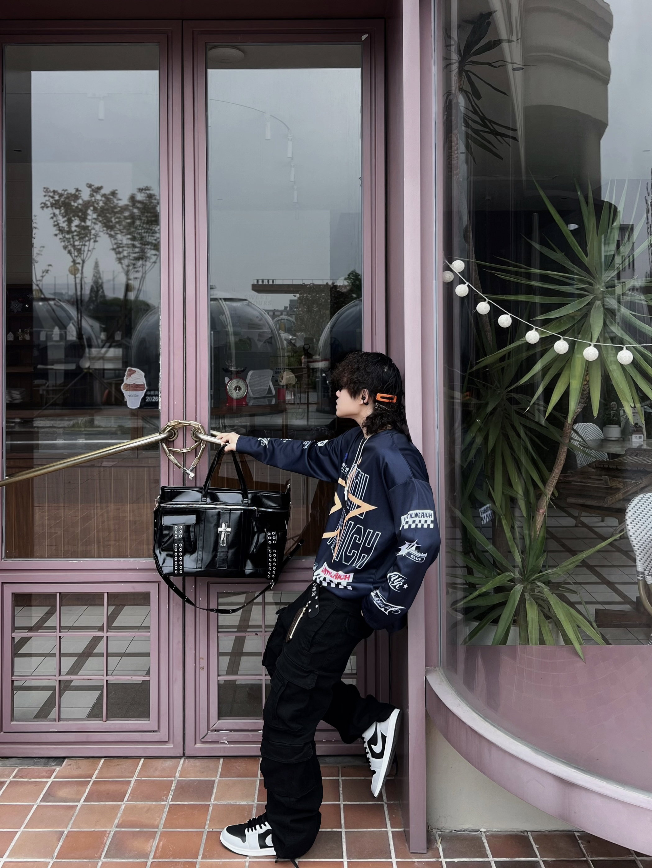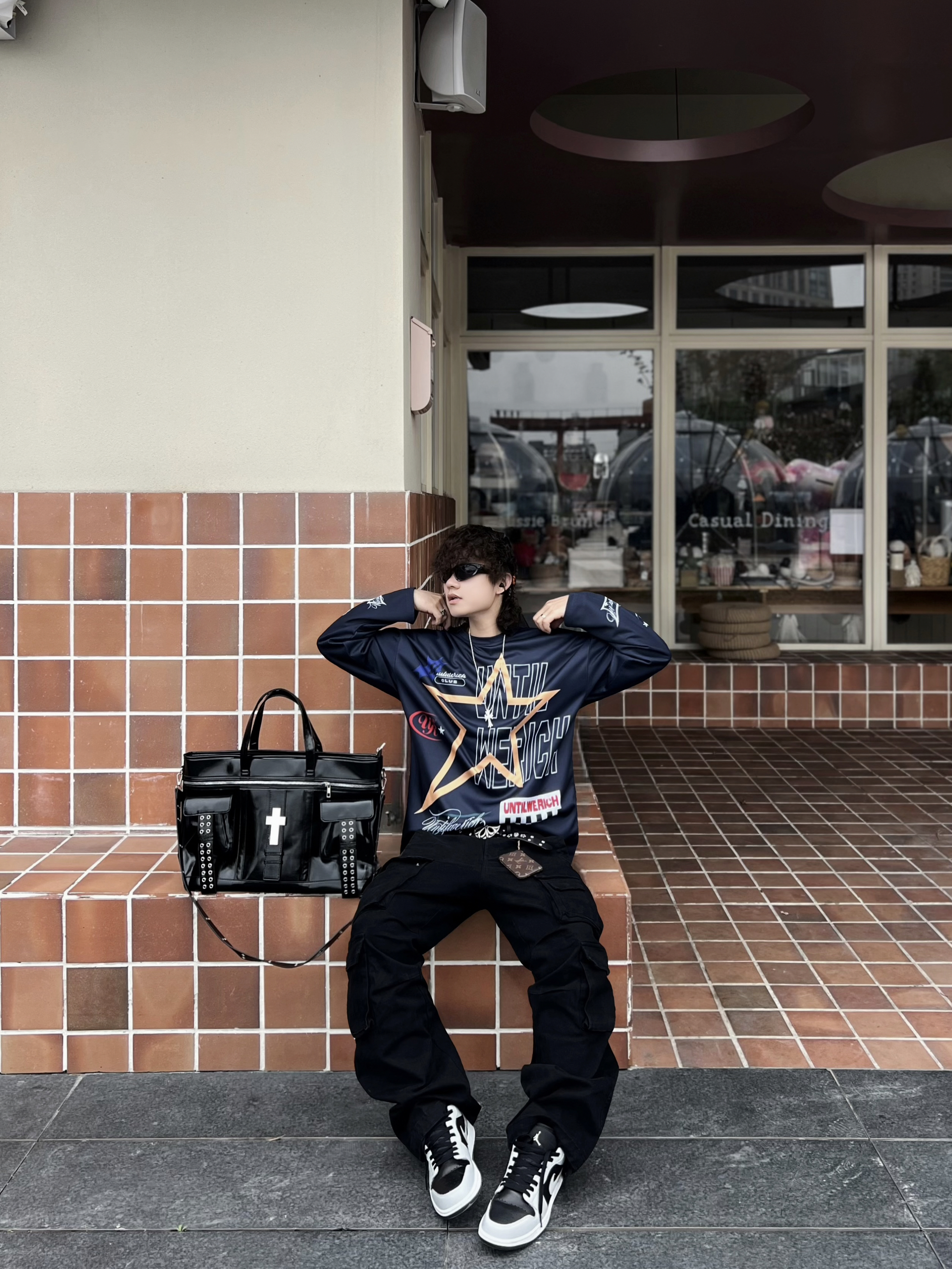 Hi、这里是有点懒的薯条🍟~ ☑️谁懂啊家人们!🧩 这套美式穿搭直接焊在身上了🥊 藏青做旧印花长袖+炮弹工装裤,把松弛感和酷拽感焊死! 定制款Jordan1👟CNY鸳鸯上脚,潮流感直接拉满✨ 低帮款真的很适合日常去穿着🔦 🔘铆钉十字托特包+LV挂包做点缀,细节感拉满,美式选手的穿搭层次感狠狠拿捏! 早春出街这么穿,回头率直接爆表,妥妥的得物顶男既视感!