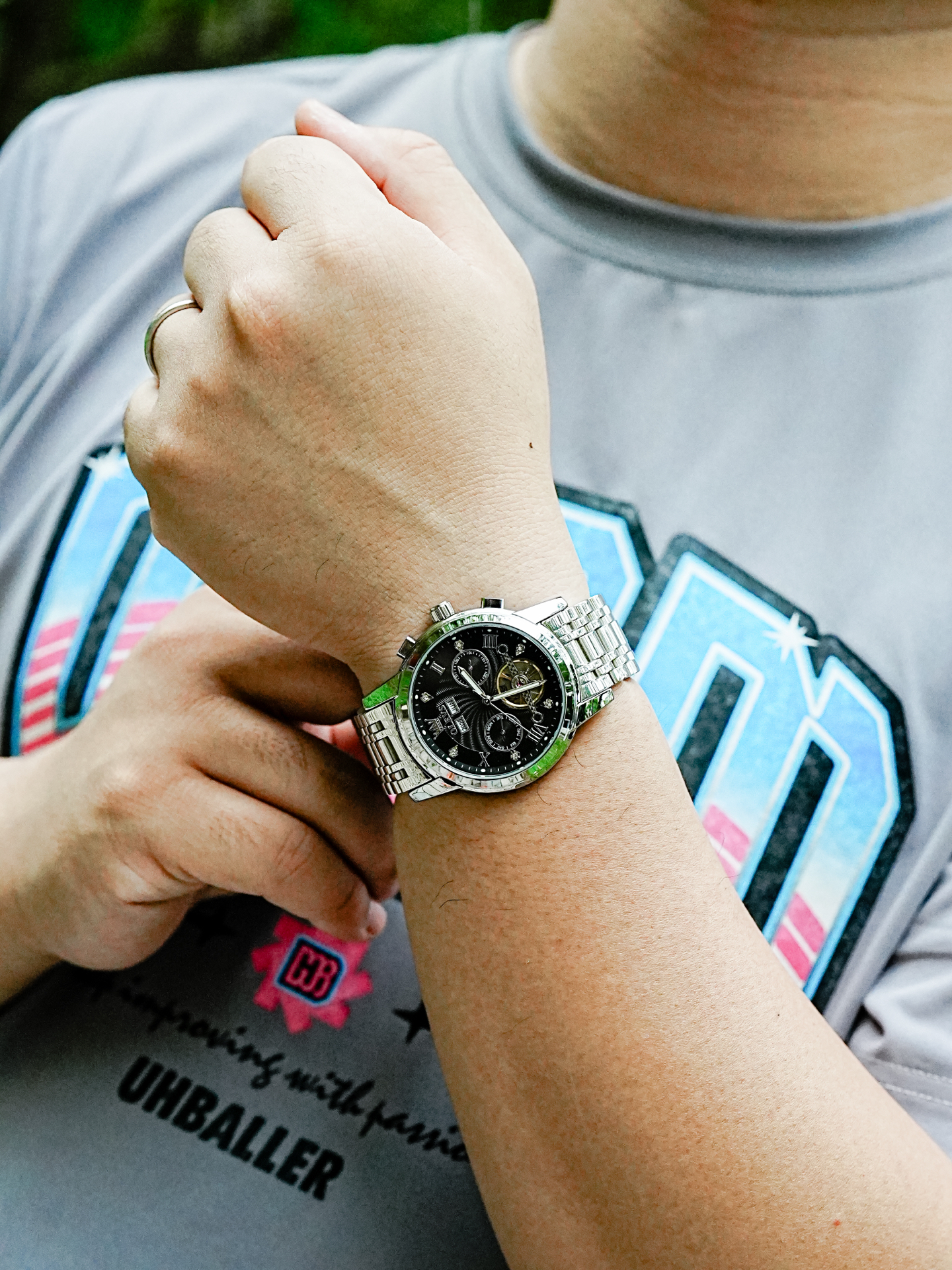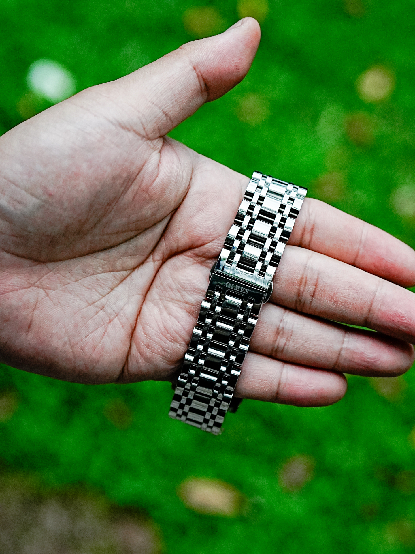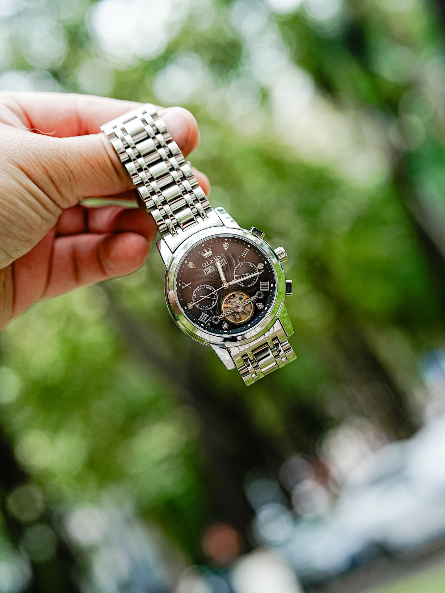 虽然男生不像女生 出门要带一整套饰品 但是手表还是必不可少的 最近入手了 OLEVS 玩酷系列手表 精钢表带的设计 夏天佩戴不会闷热 我特别喜欢黑色表盘 飞轮的设计很精致 无论是个休闲的还是商务的穿搭 配这个手表都没有问题 喜欢的赶紧拿下哦 @欧利时OLEVS分享官