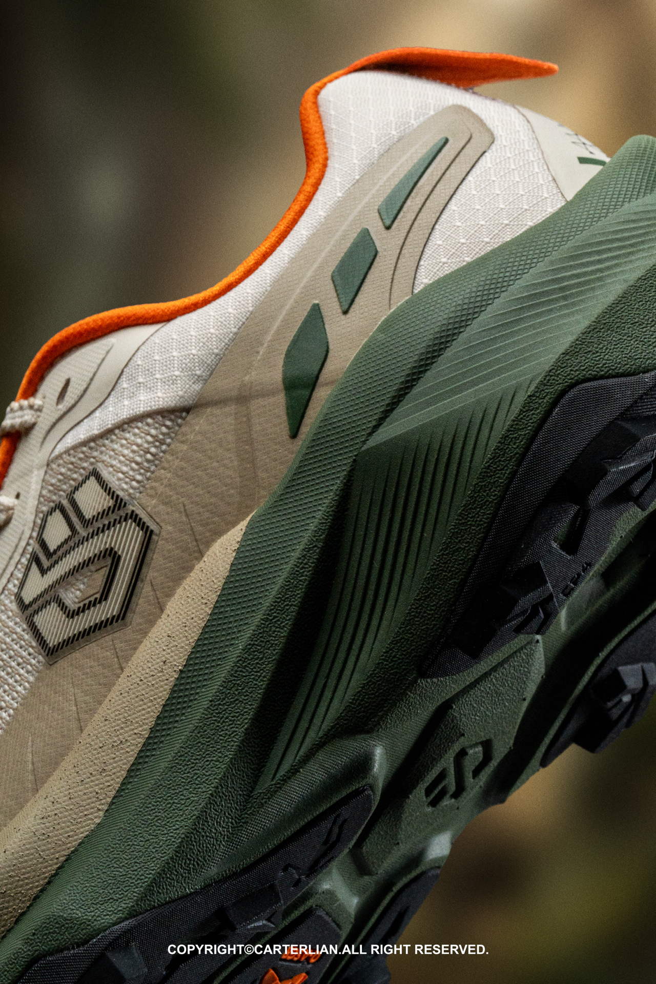 之前分享过一双银色为主的山神3.0这次再分享 这双偏卡其色整体的卡其橙色墨绿色的搭配 配色上更加丰富,也属于百搭的配色了。 上脚来说软弹有支撑 外底齿钉血槽很厚 爬山的时候的抓地力也是比较好的 基本上搭配卡其色或者迷彩的裤子还是很不错的。 @精选情报官