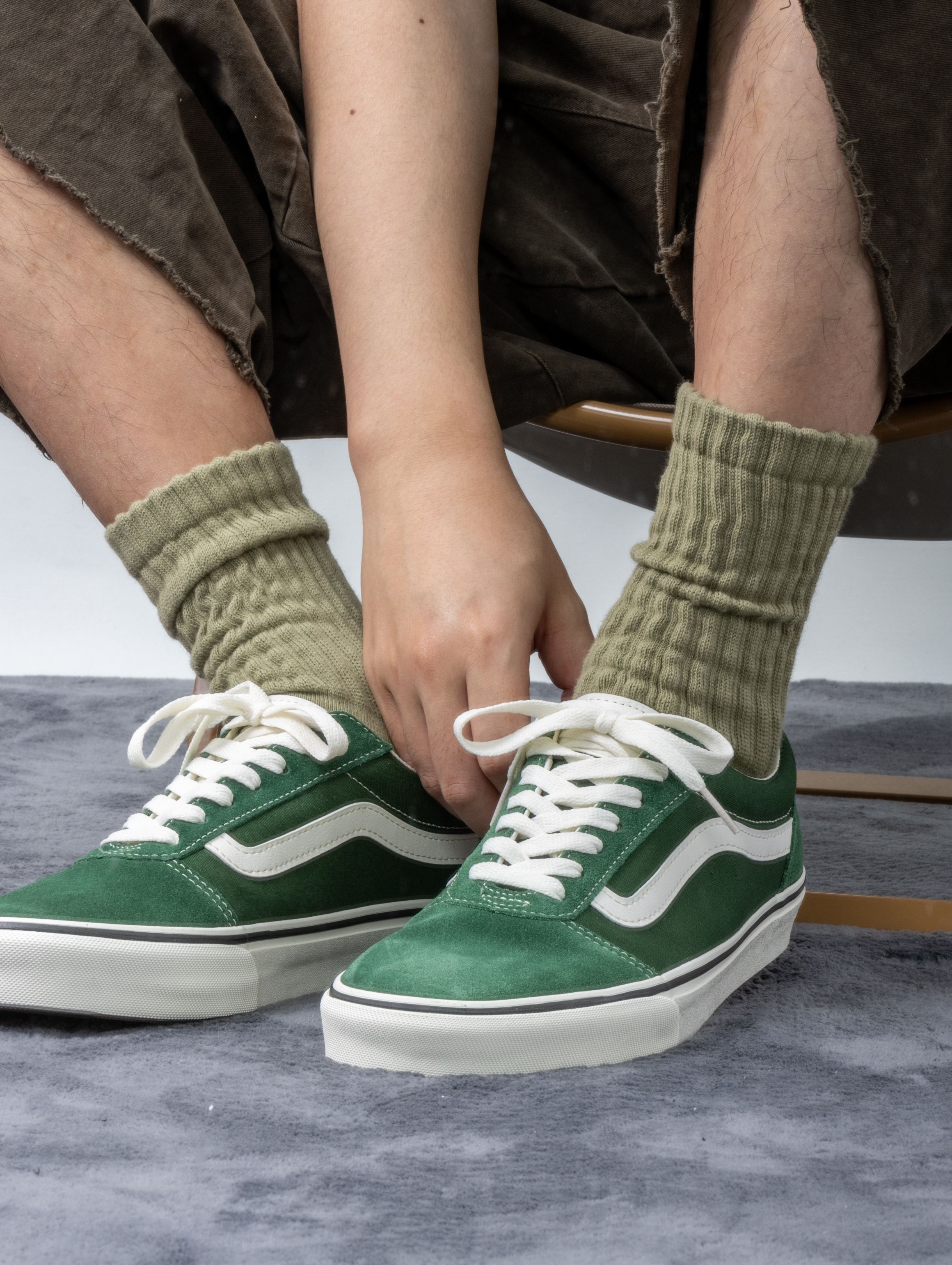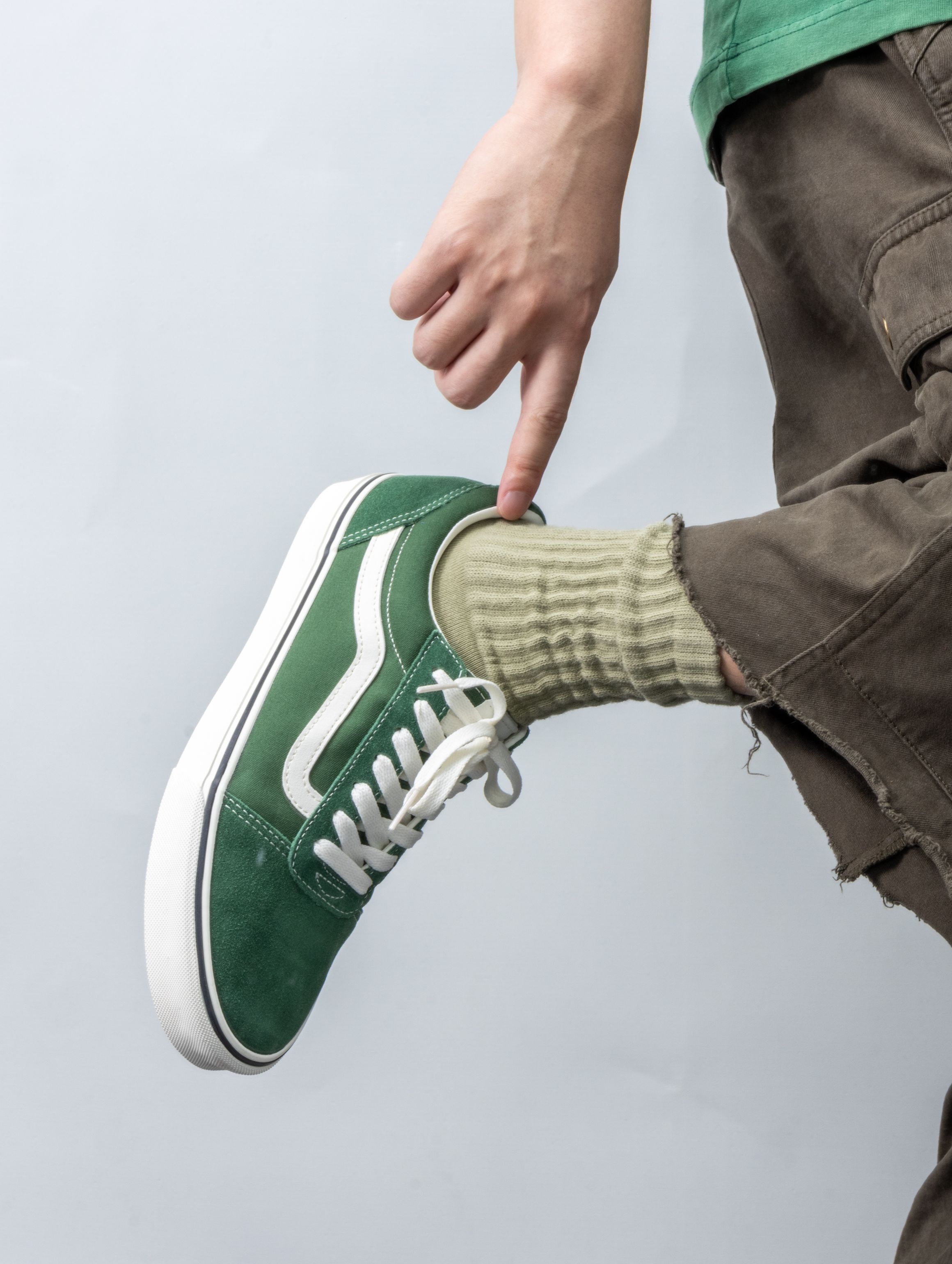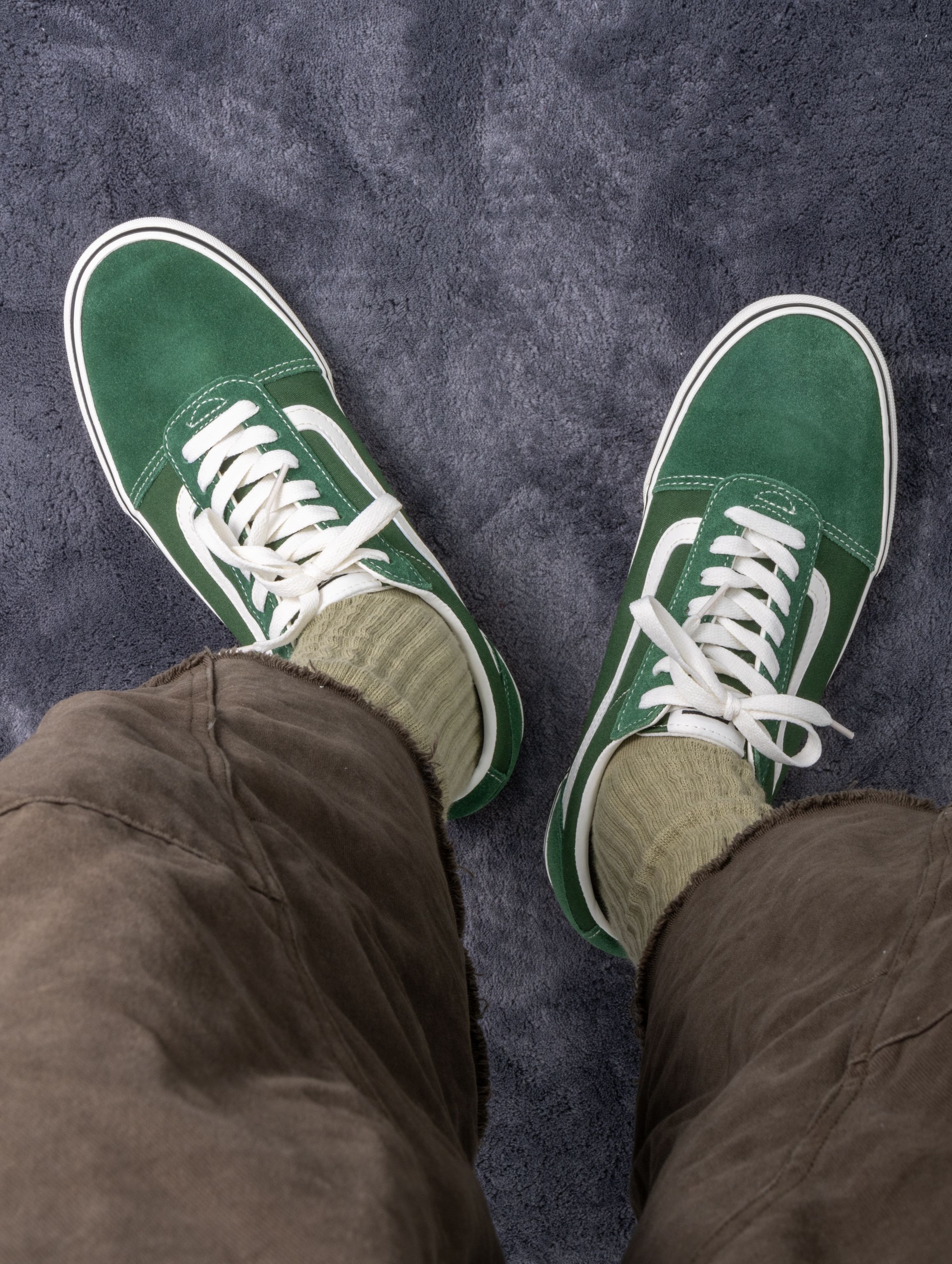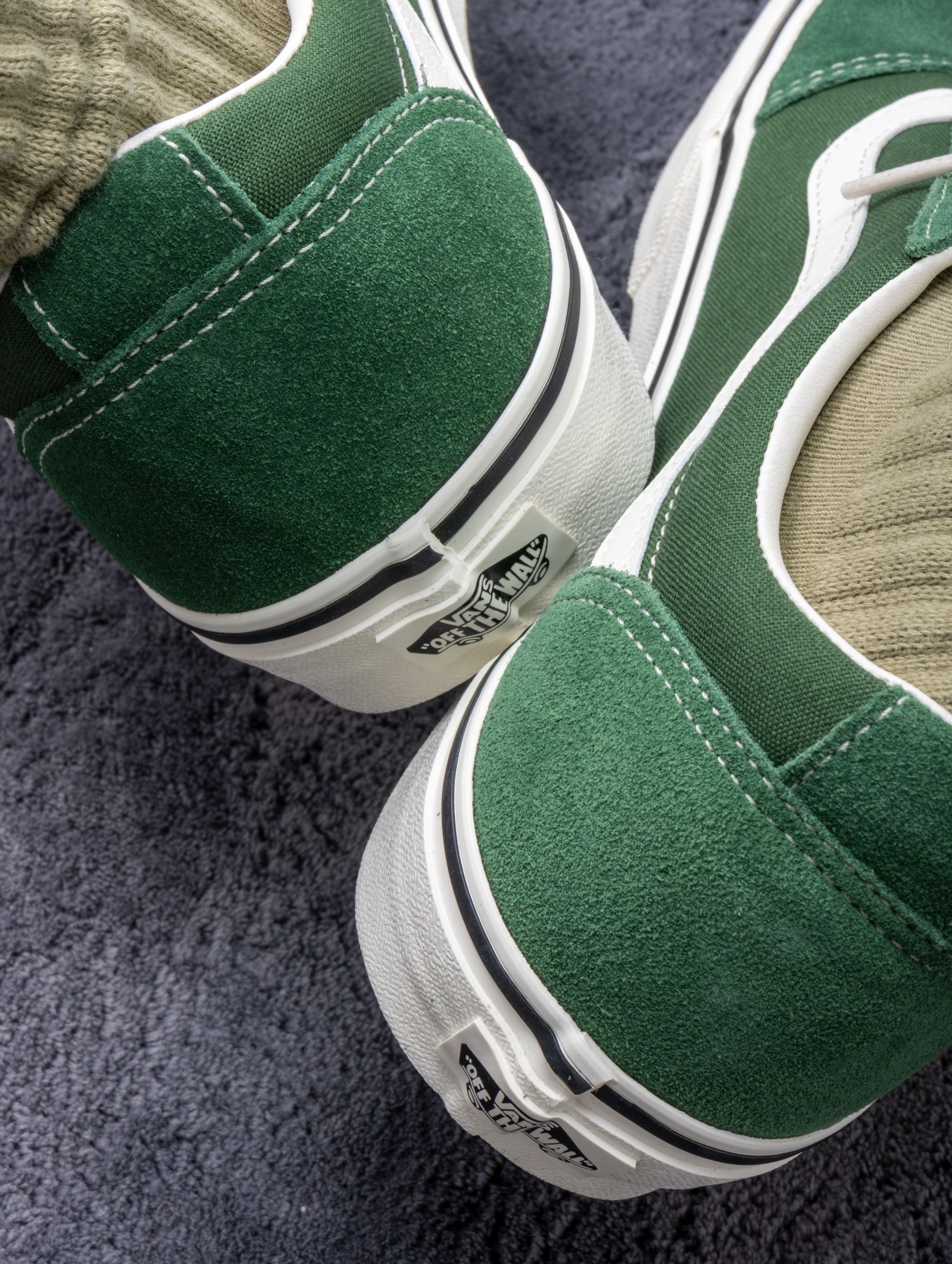 清新到能掐出水,上脚瞬间显白一个度。鞋身比Old Skool厚实,鞋头偏细长,拼接麂皮帆布反而多了几分质感。 鞋底EVA+橡胶复合结构,走路韧劲足,暴走两万步脚掌依旧轻松。搭条白色短裤或卡其色工装裤,清爽值直接拉满。