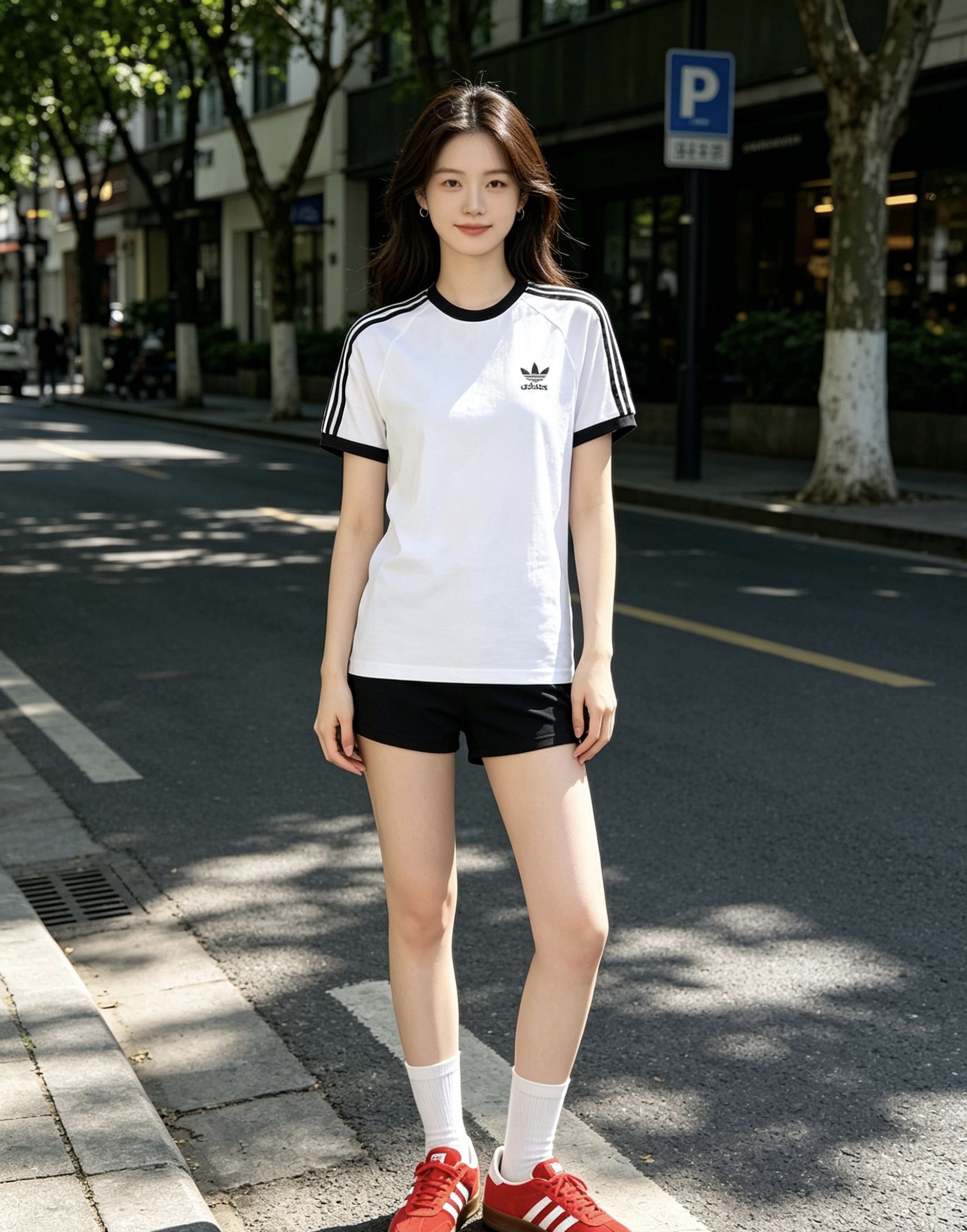 上衣的设计是灵魂所在,半高领的克制与泡泡袖的浪漫形成张力,而收腰与微张的下摆,则巧妙地勾勒出女性的身体曲线,如同建筑中的拱门,既有力量感,又不失柔美。 下身搭配的深色阔腿裤,垂坠感极佳,与上衣的“建筑感”形成呼应,拉长了整体比例,营造出一种慵懒而有力的气场。