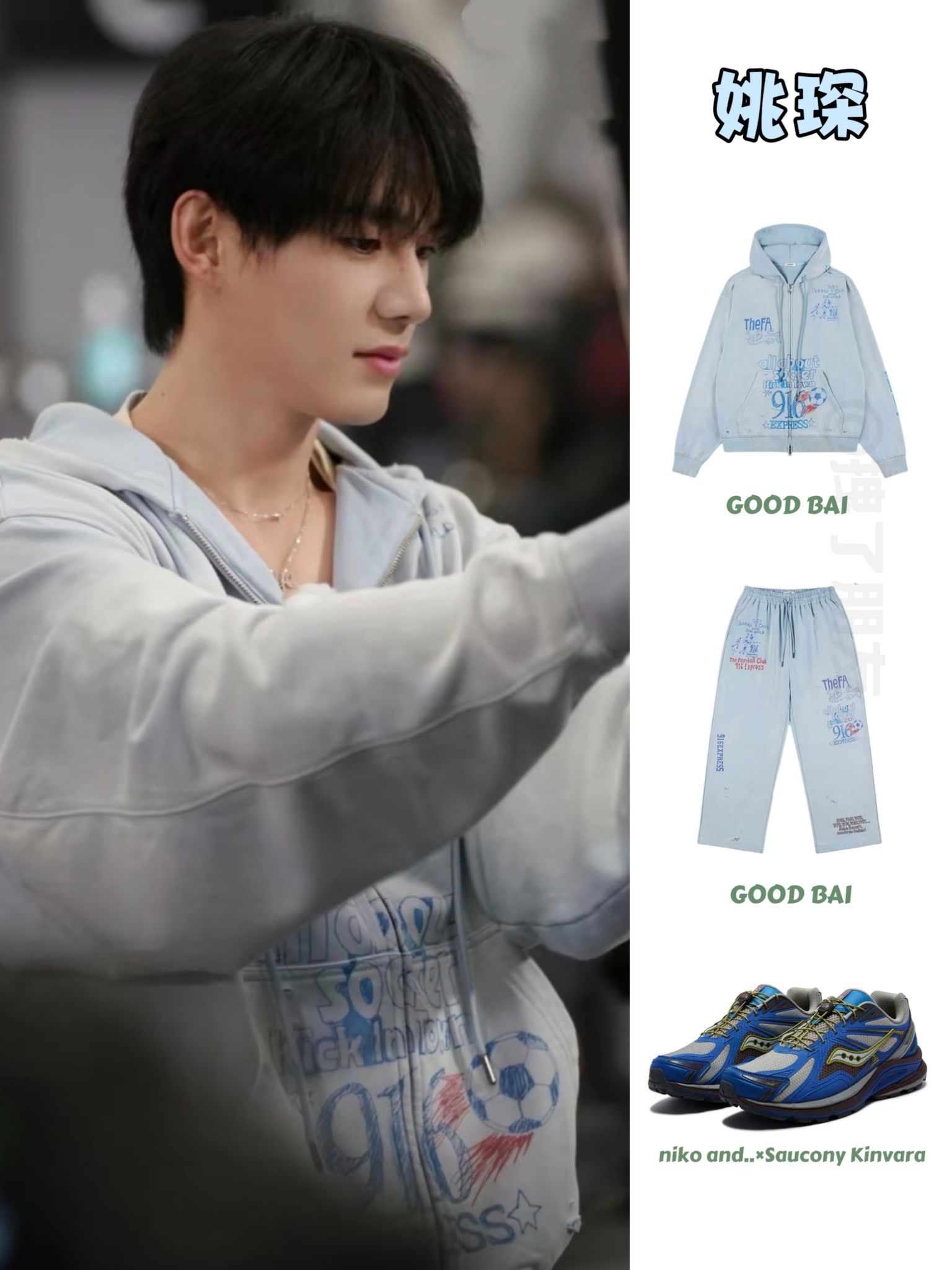 🧥GOODBAI足球元素涂鸦印花做旧连帽拉链卫衣 👖GOOD BAI足球元素涂鸦印花做旧直筒休闲裤 👟niko and..×Saucony Kinvara菁华4RE 复古耐磨透气低帮休闲城市通勤跑步鞋