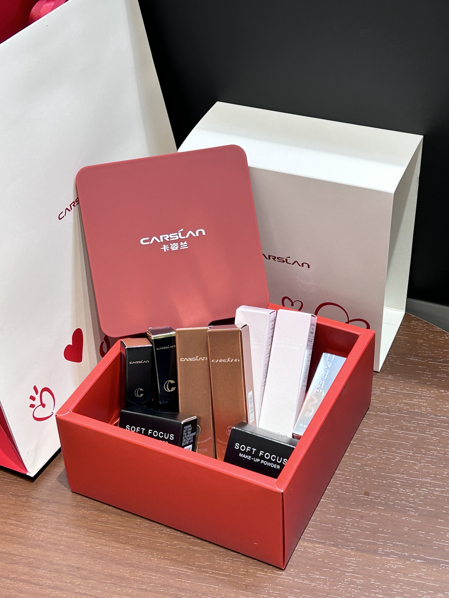 卡姿兰我承认你是懂女孩子的 红白配色的包装 满满的少女心 里面彩妆底妆唇妆都有 质地都还蛮好上手的 新手也能轻松驾驭 还送了同系列的手持镜 质感不错 日常化妆用一套就够啦 我的觉得拿来送crush也倍有面