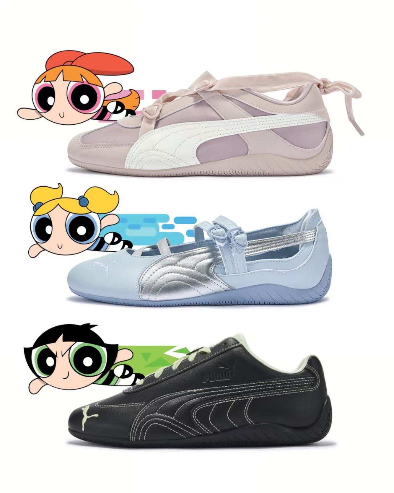 谁懂啊!PUMA直接把童年女神飞天小女警穿在脚上了😭 这次联名真的把甜酷感玩明白了!3款鞋对应3个小女警,每一双都细节拉满: ✅ 粉色花花款:绑带+爱心扣,芭蕾风拉满,甜妹本命 ✅ 黑色毛毛款:爱心鞋带+赛车鞋型,甜酷拽姐专属 ✅ 蓝色泡泡款:玛丽珍绑带,温柔又灵动,通勤约会都能穿 经典Speedcat赛车鞋型+飞天小女警专属设计,镭射鞋盒+毛绒挂件直接把仪式感拉满! 不管是搭百褶裙、牛仔裤还是运...