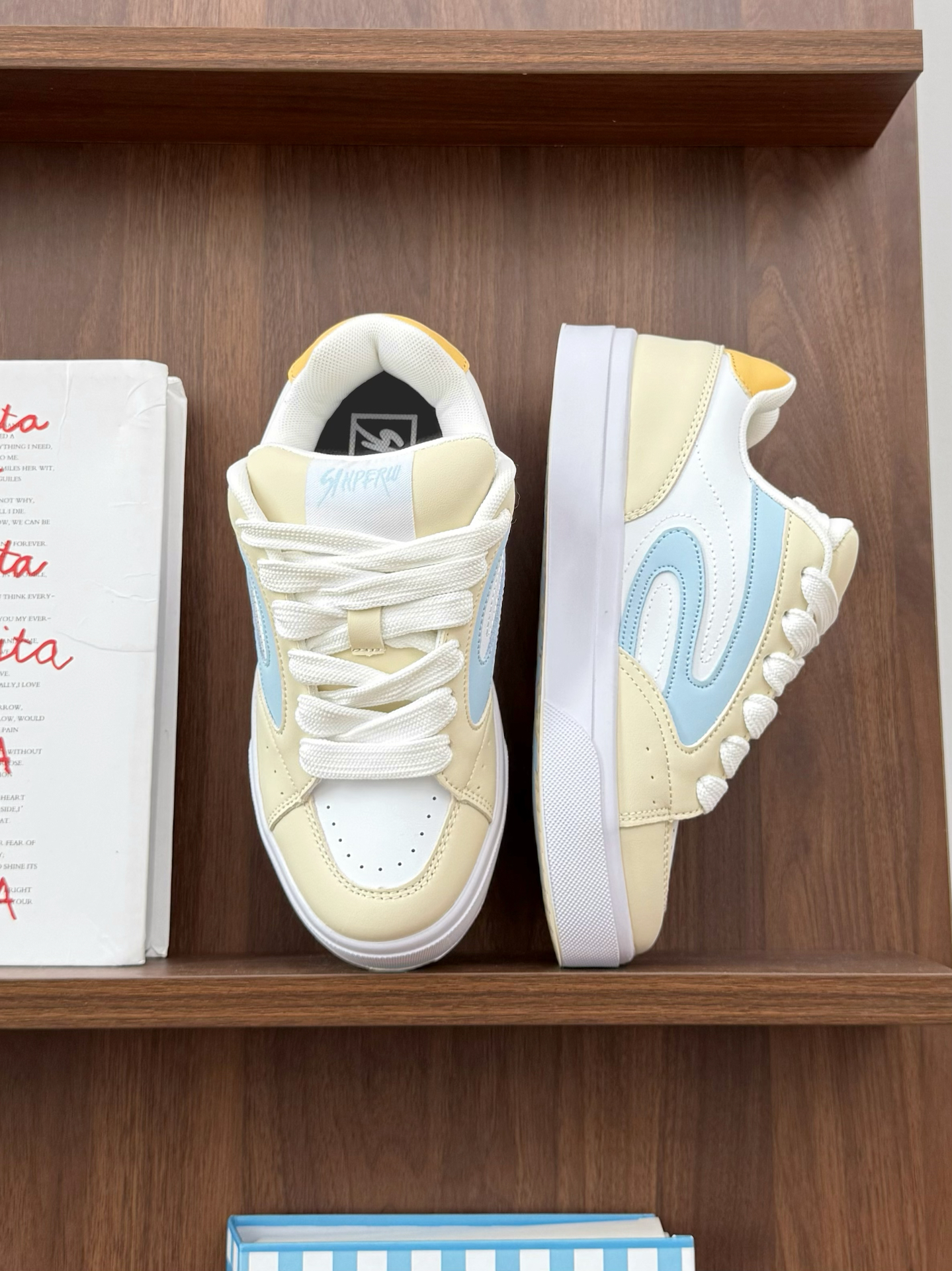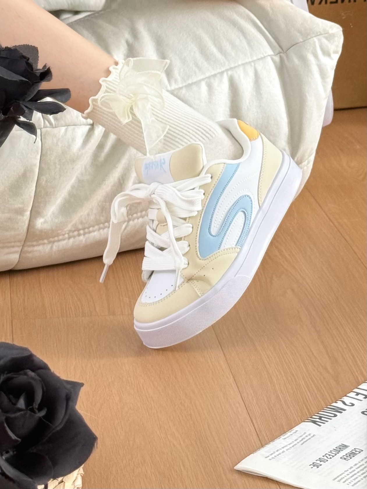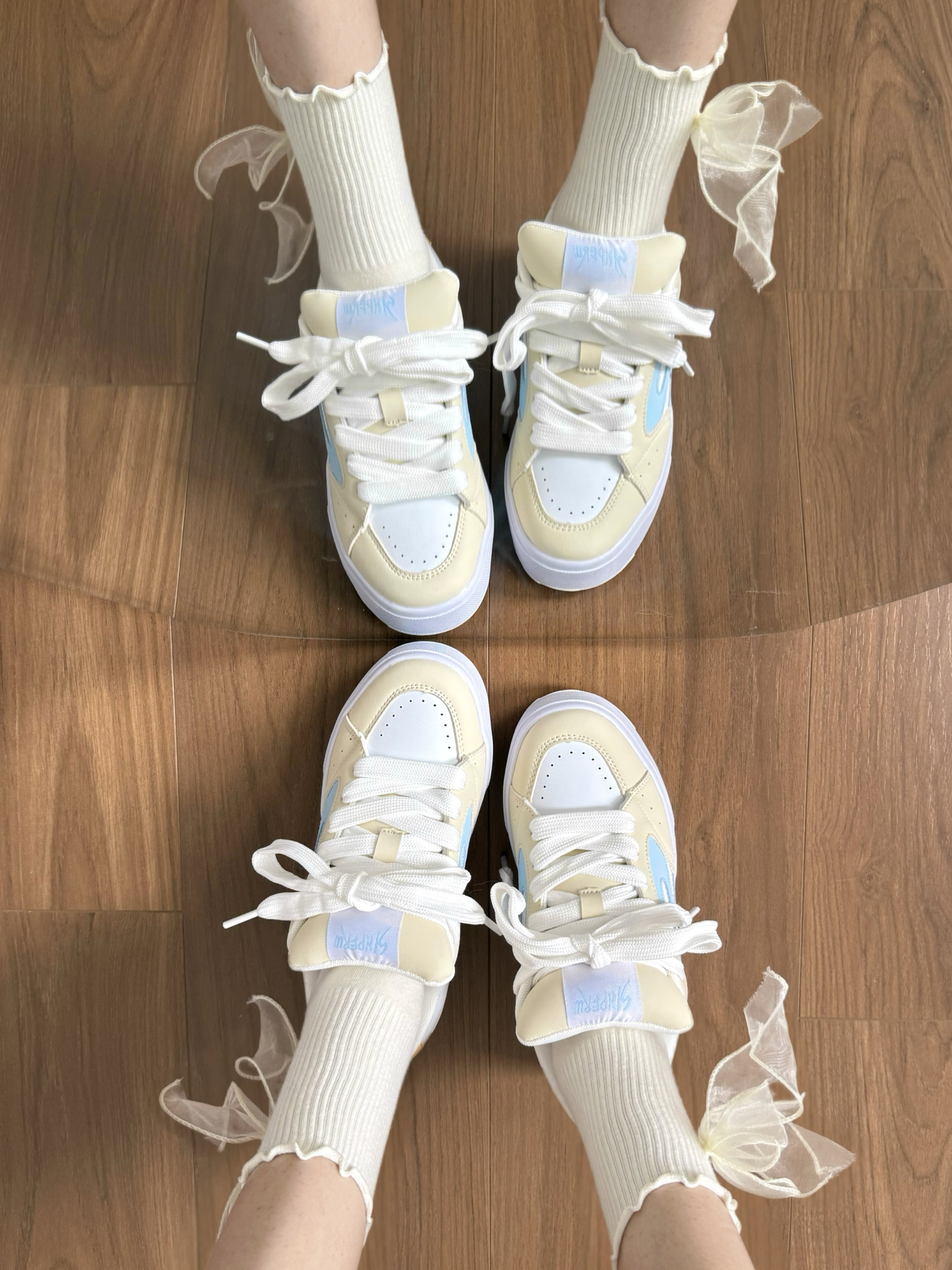 哎呀哎呀真给我迷住了 一整个面朝鞋鞋都奶fufu的 温柔又显嫩 浅蓝+奶黄的配色太懂少女心了 光是看见就会分泌多巴胺惹 真的是甜到我心坎上了啦!!