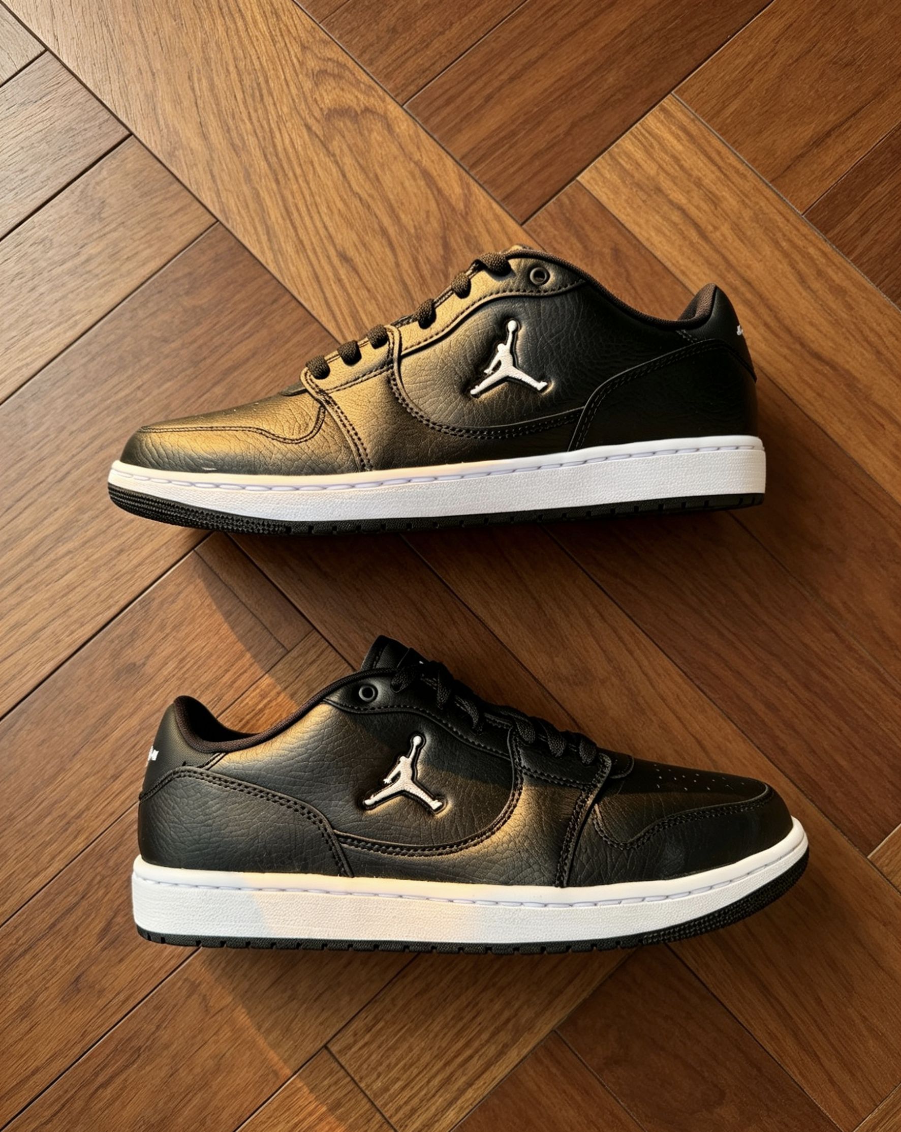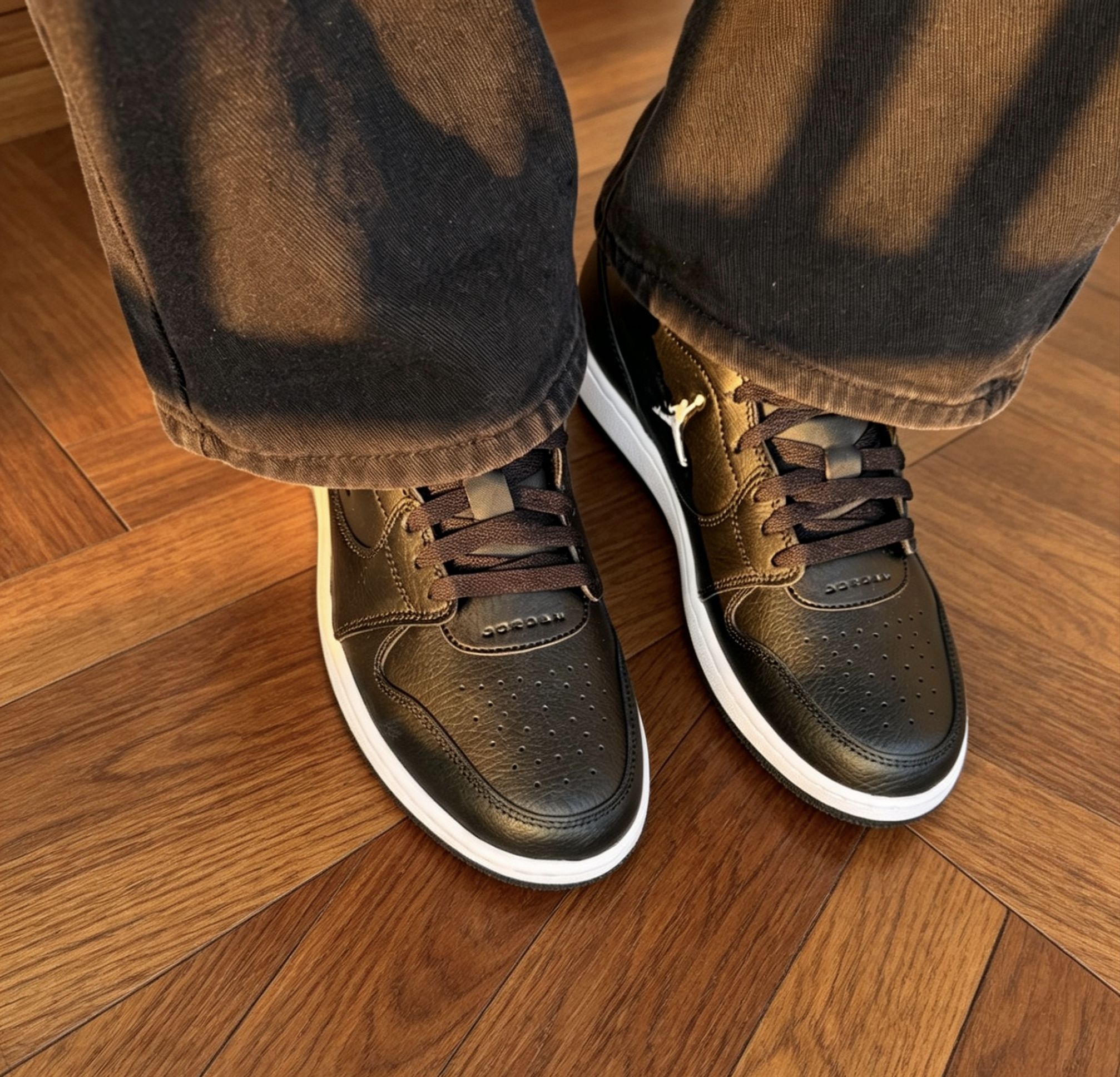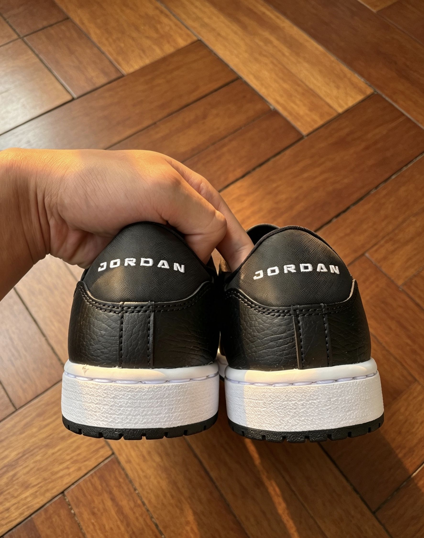 谁懂啊!这双AJ黑武士低帮真的是日常穿搭的万能钥匙✨ 全黑荔枝皮革鞋面自带高级哑光质感,鞋身的飞人logo做了立体压印,细节直接拉满;白色中底做了撞色过渡,不会全黑太沉闷,上脚显脚小又利落。 低帮设计不卡脚踝,日常通勤、上学、出街都能穿,配牛仔裤、运动裤、休闲裤零违和感,男生女生都能驾驭,情侣款直接拉满氛围感。 脚感软弹不磨脚,颜值和实用性双在线,鞋柜里永远缺一双这样的百搭黑AJ!