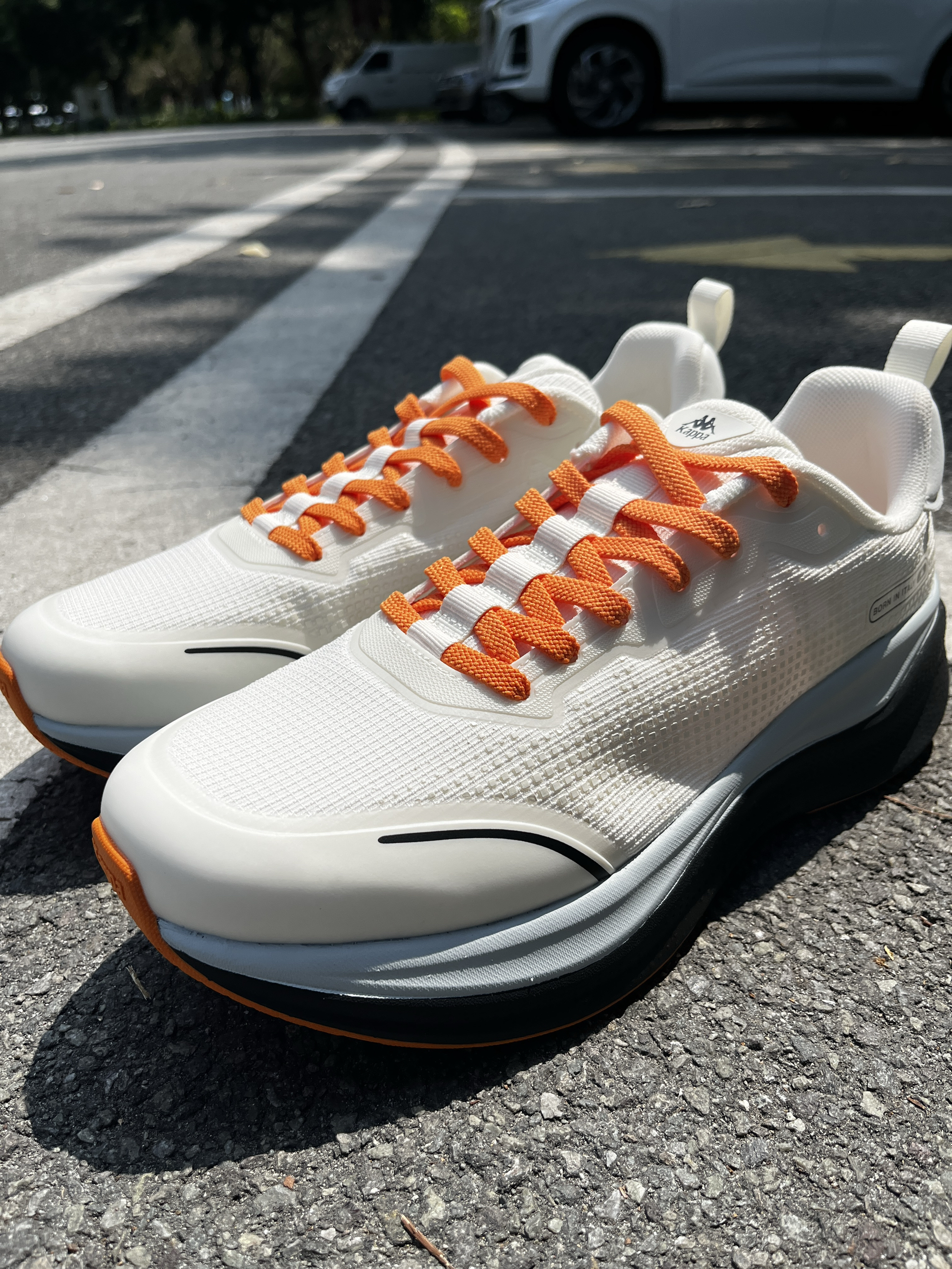 这双Kappa橙白运动鞋,夏天穿去散步、跑步都舒服。网眼面透气不闷脚💨,30度走草坪脚背也没汗;软弹底像踩棉花🦶,跑两步膝盖不震,碎石子路也不硌。 白鞋面配亮橙鞋带清爽,配运动裤、短裤或牛仔裤都行😊。鞋底纹深防滑,沾灰拍两下就干净,懒人福音。我脚面肉穿刚好,瘦脚可能觉前掌空点。 夏天想找双透气、好走、不娇气的鞋,它算个实在选择。你们夏天跑步更喜欢什么配色?评论区晒出你的夏日跑鞋吧~