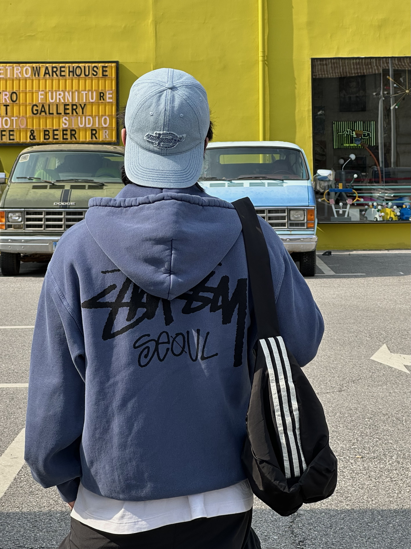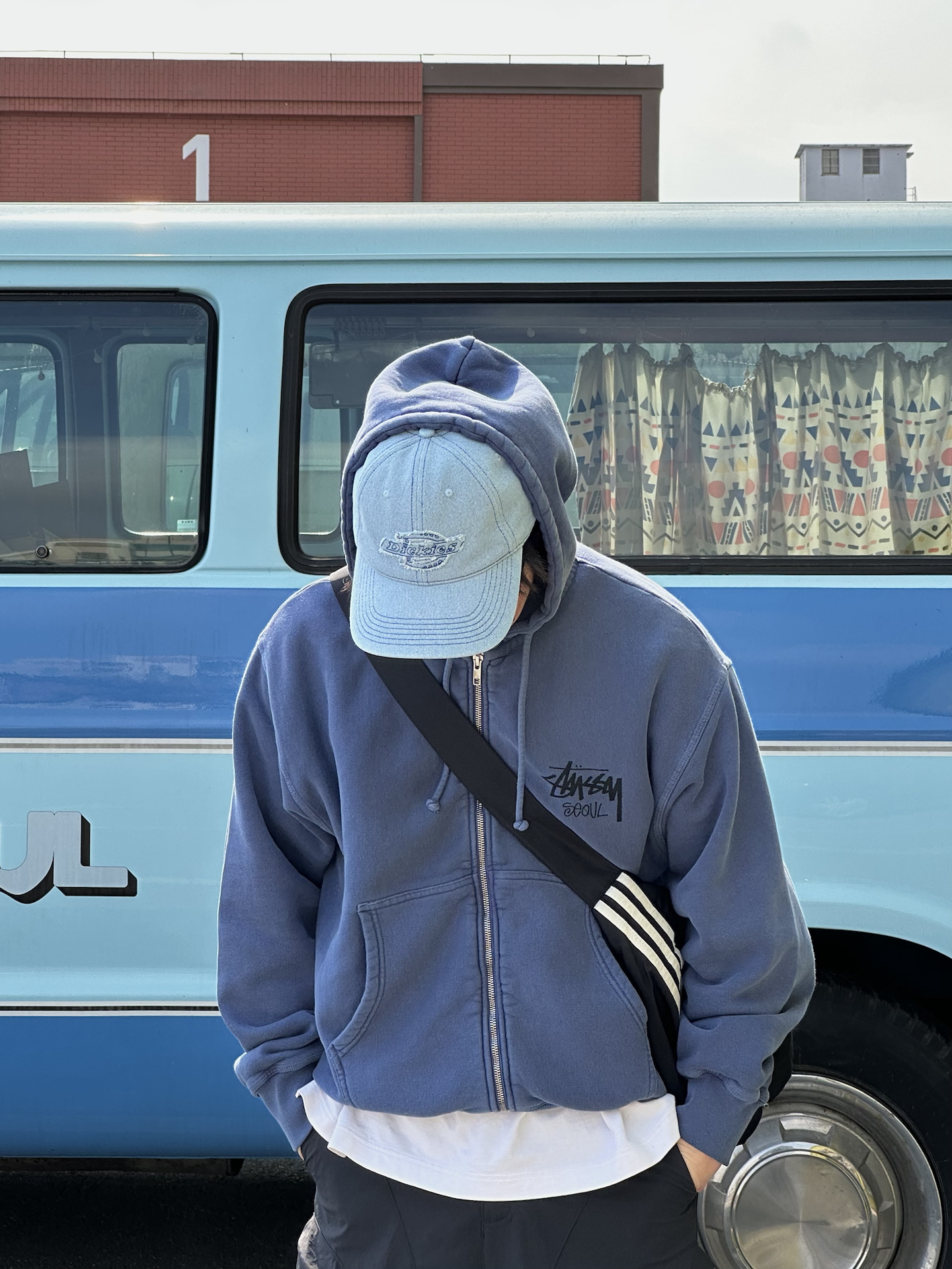 哈喽👋🏻大家好哇 这里是🪨石地夫的穿搭小日记📝 - 今天出门是蓝色的街头boy穿搭 鸭舌帽➕卫衣的低饱和同色系叠穿💙 视觉延伸显高显瘦☑️ 内搭白色T恤下摆露出一点边 层次感立马拉满✨ 🧢帽身是那种水洗做旧的复古牛仔布 自带街头松弛感🍃 soooo百搭就对了💡 懒人出门随手一戴就有型👏🏻 潮帽