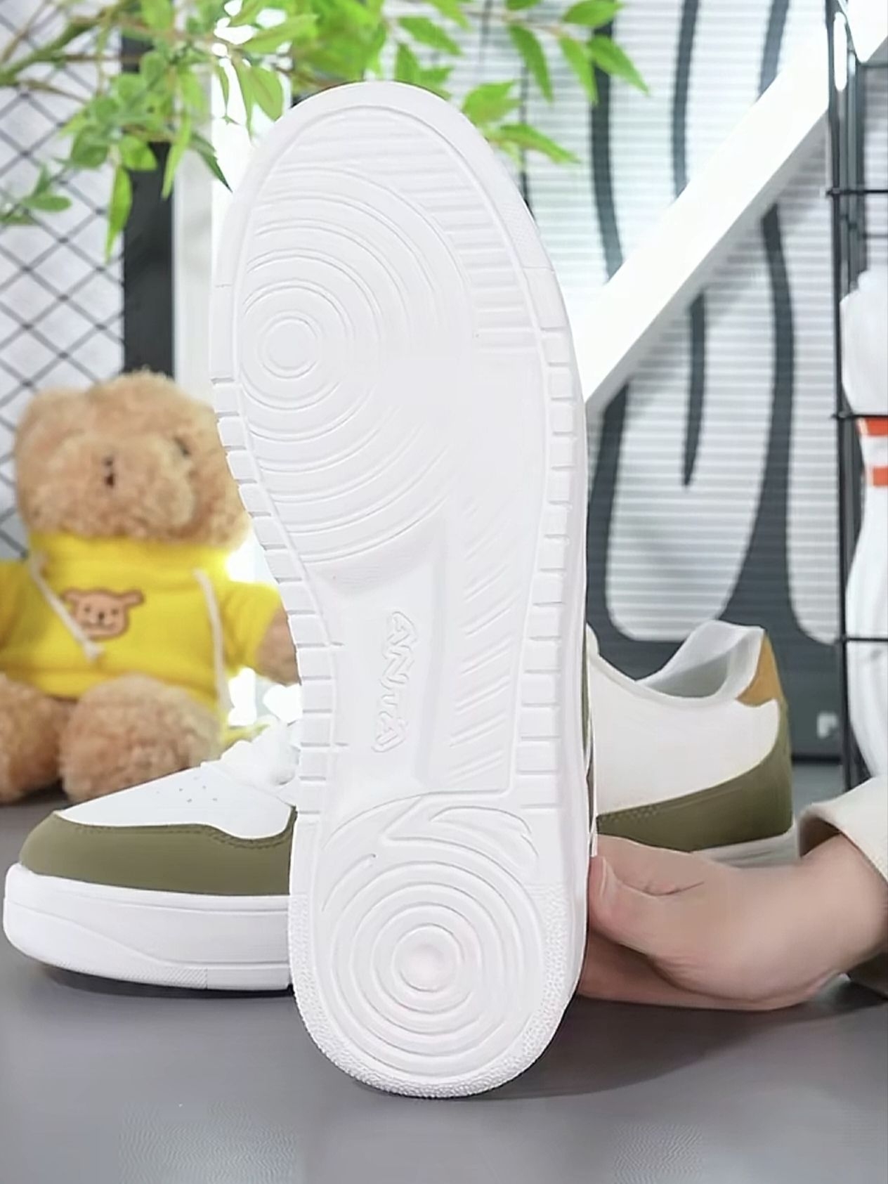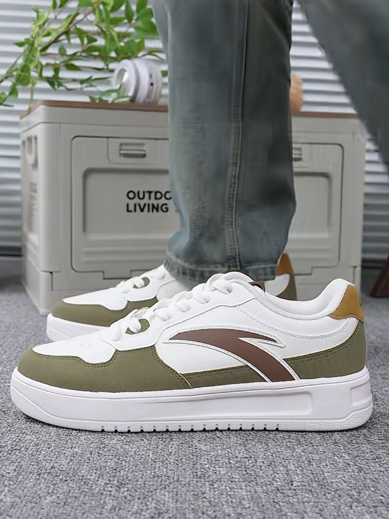 给男朋友选鞋真的要兼顾舒服和好看!这双安踏轻松1.5板鞋他上脚就说是他今年最爱的鞋! 配色是奶白+橄榄绿+棕,复古又不挑穿搭,他搭牛仔裤、西裤都能出门,重点是脚感!他平时要走很多路,之前的板鞋磨得他喊疼,这双暴走一天都不喊累,鞋底还增高,直接180的既视感~ 皮面也好打理,脏了拿湿巾一擦就干净,通勤买这双绝对不会踩雷哈哈哈