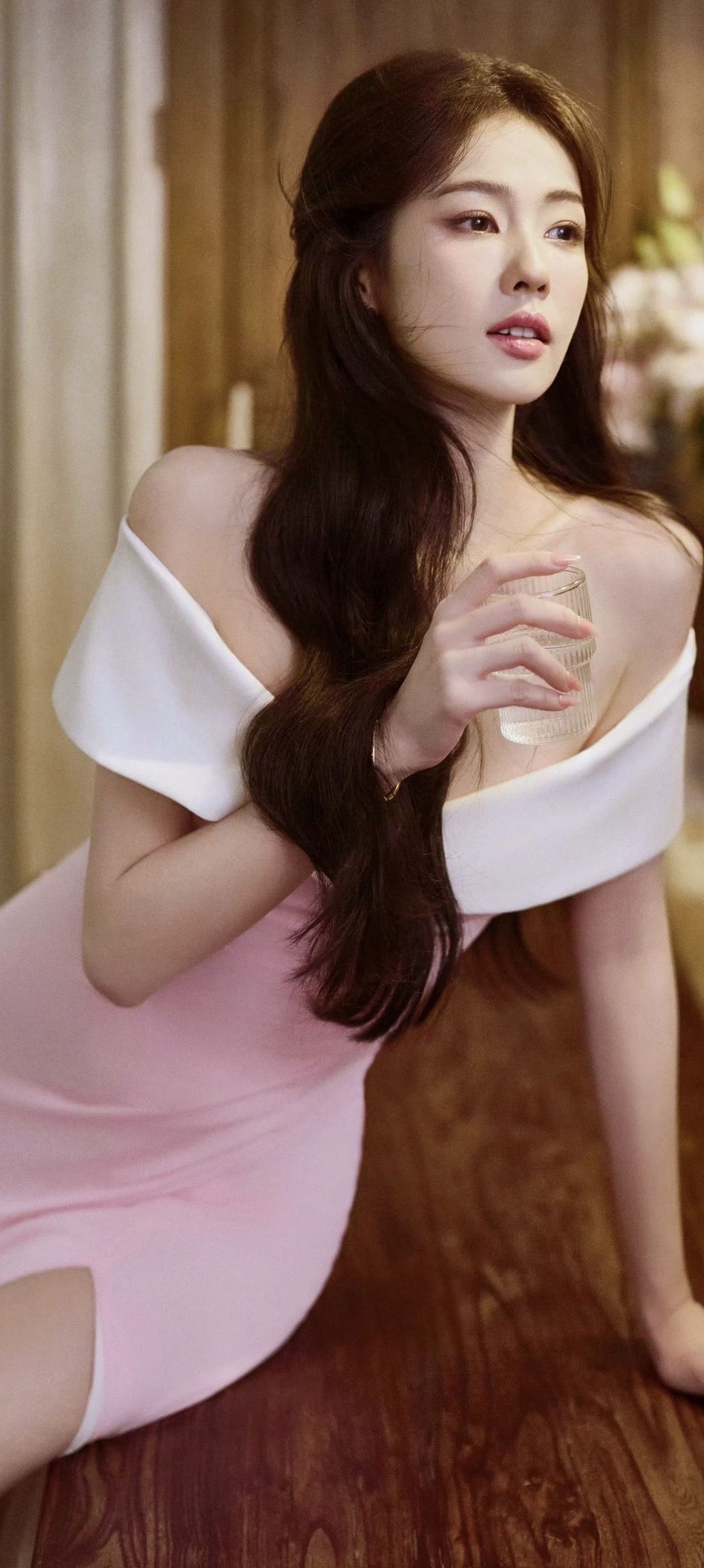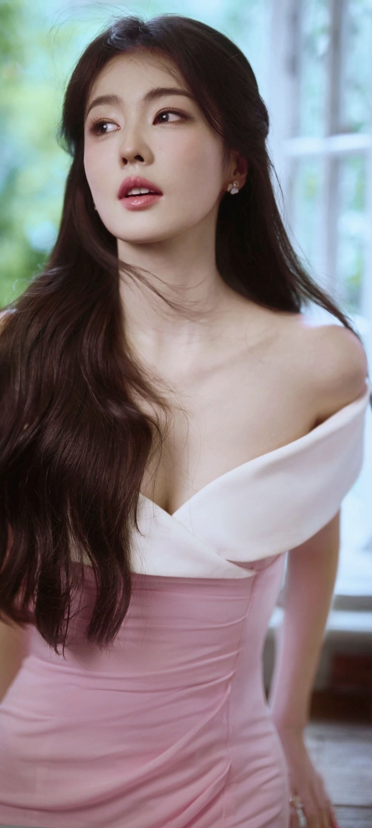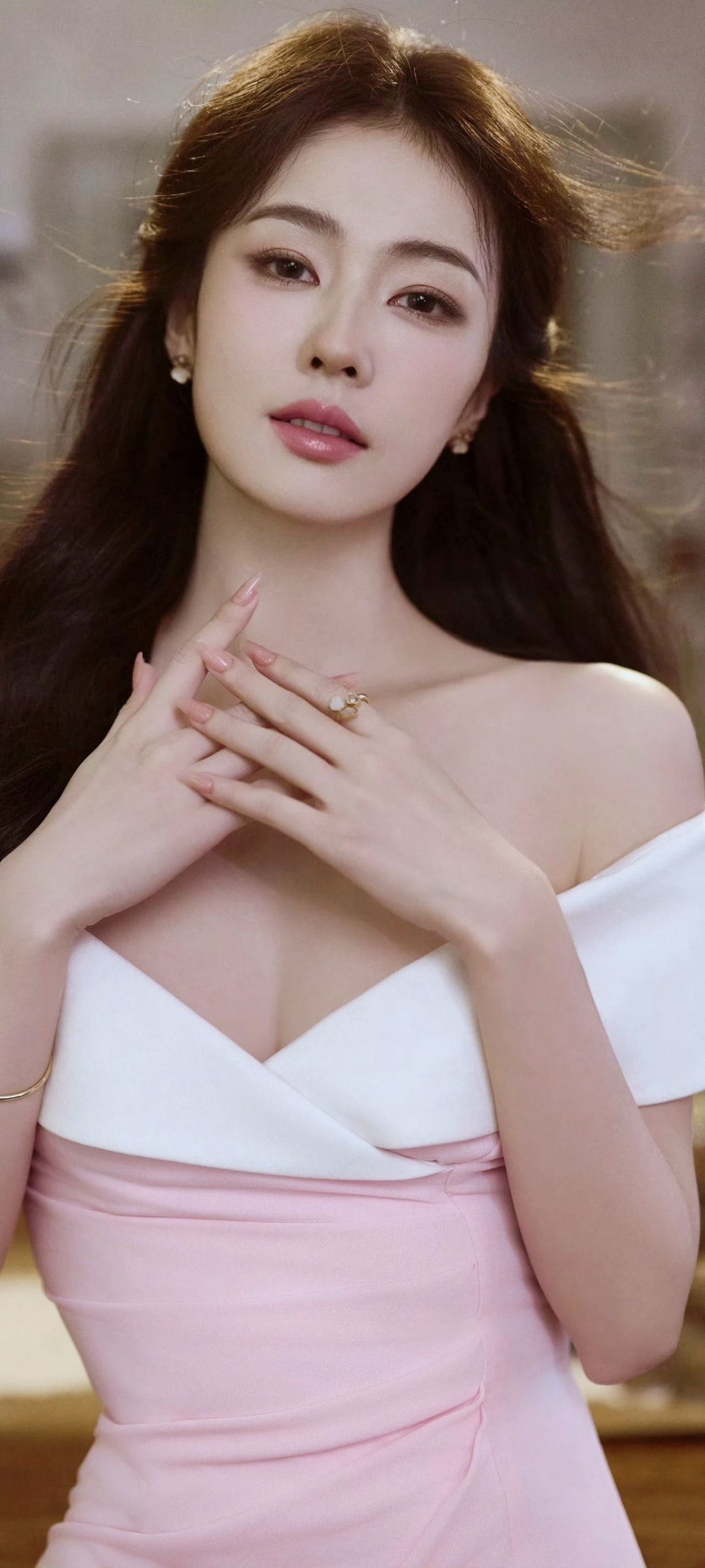 白鹿的这身粉白露肩长裙真的很惊艳!✨ 明明是同一套衣服,却在不同的瞬间,诠释出截然不同的美感。 一面是优雅女神:侧身轻倚,修身剪裁与高开叉设计,将优雅身线与灵动气质完美结合。粉与白的温柔拼接,在深V和露肩的细节下,显得既大方又迷人。 一面是静谧时光:斜坐窗边,任裙摆自然垂落。同样的长裙,在光影与花瓶的衬托下,氛围变得恬静慵懒。脚上那双独特的金色缠绕高跟,成了整体造型的点睛之笔,让温柔中透出恰到...